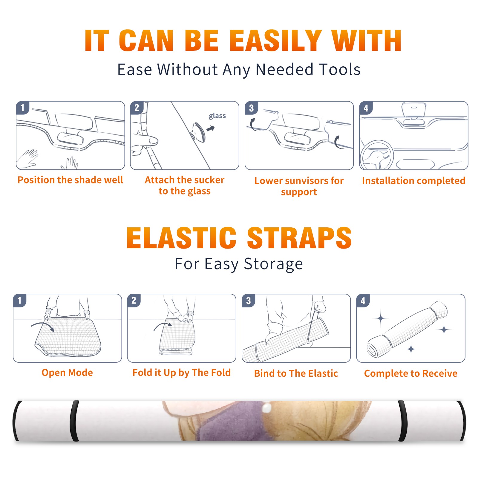 • Diameter /Size 63"L x 33.5"W Made from excellent materials which makes it sturdy and protects the car from the sun. Easy to use and pack. Makes the interior of the car cooler.You can easily stash the sunshade in the storage bag or store long term.It open and closes easy. Also the leather storage bag is durable and easy to put the umbrella back into.This windshield sunshade provides complete coverage and keeps your car interior cool under direct sun. It is easy to open and position under the windshield and around the rear-view mirror. Makes Your Car Easy To Identify, Perfect For Finding Your Car In Crowded Parking Lots And Garages.Great Choice: It Is A Great Gift For Dad, Boyfriend, Brother, Brother And Uncle, Friends, Classmates, Family And So On. Notice: Due To Difference Computer Monitors, The Color Maybe Slightly Different From Picture. As Different Measurement Methods, Measurement Data Will Float Within 2%.I Hope You Understand. If You Have Any Question About The Item Please Do Not Hesitate To Contact Us Immediately And We Will Give You A Satisfactory Reply Within 24 Hours.