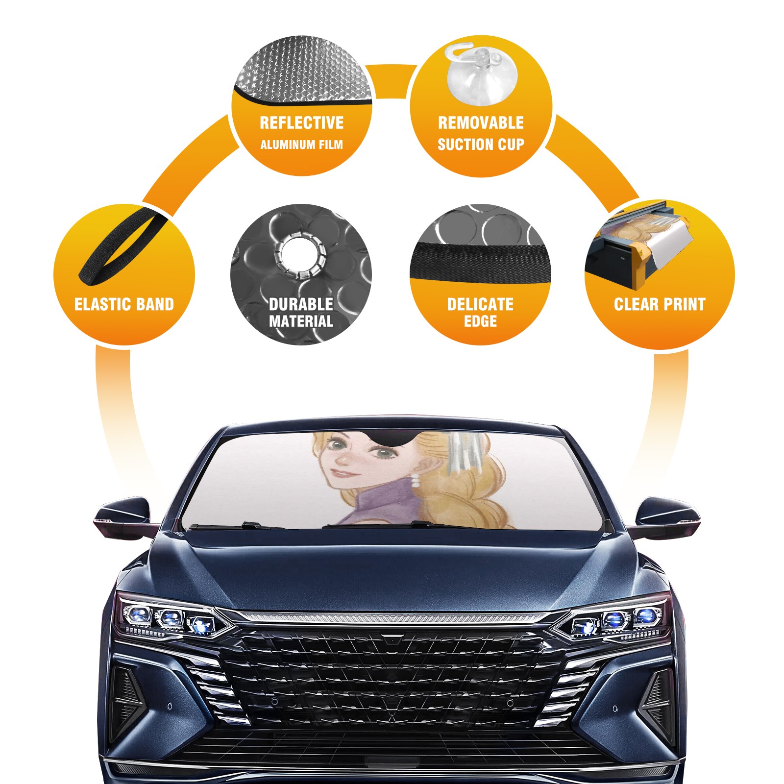 Car Windshield Sun Shade For Front Window Chinese Cheongsam Princess Pattern Foldable Vehicle Windshield Car Sun Visor Covers Automotive Window Protector Car Camping Privacy Sun Blocker