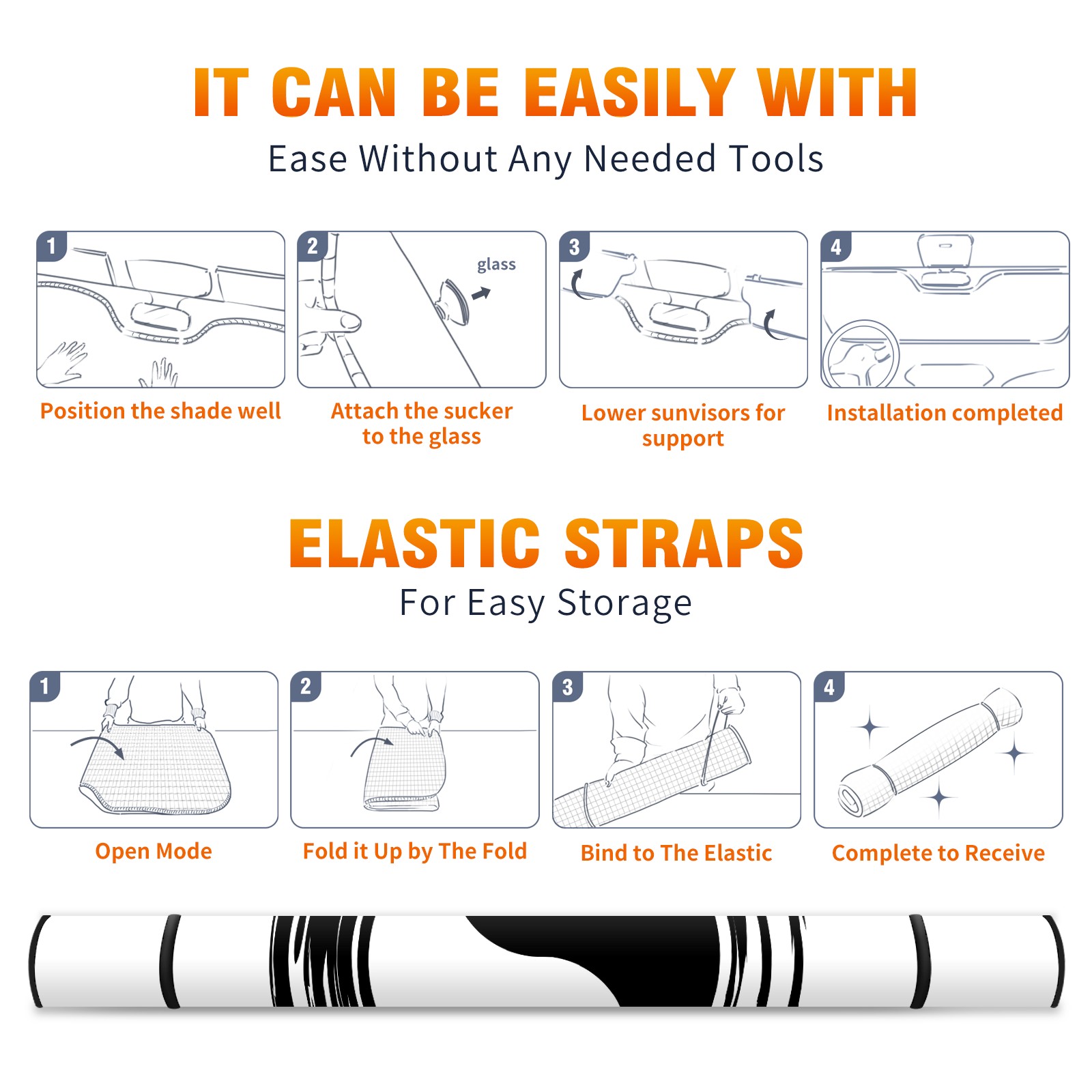 • Diameter /Size 63"L x 33.5"W Made from excellent materials which makes it sturdy and protects the car from the sun. Easy to use and pack. Makes the interior of the car cooler.You can easily stash the sunshade in the storage bag or store long term.It open and closes easy. Also the leather storage bag is durable and easy to put the umbrella back into.This windshield sunshade provides complete coverage and keeps your car interior cool under direct sun. It is easy to open and position under the windshield and around the rear-view mirror. Makes Your Car Easy To Identify, Perfect For Finding Your Car In Crowded Parking Lots And Garages.Great Choice: It Is A Great Gift For Dad, Boyfriend, Brother, Brother And Uncle, Friends, Classmates, Family And So On. Notice: Due To Difference Computer Monitors, The Color Maybe Slightly Different From Picture. As Different Measurement Methods, Measurement Data Will Float Within 2%.I Hope You Understand. If You Have Any Question About The Item Please Do Not Hesitate To Contact Us Immediately And We Will Give You A Satisfactory Reply Within 24 Hours.