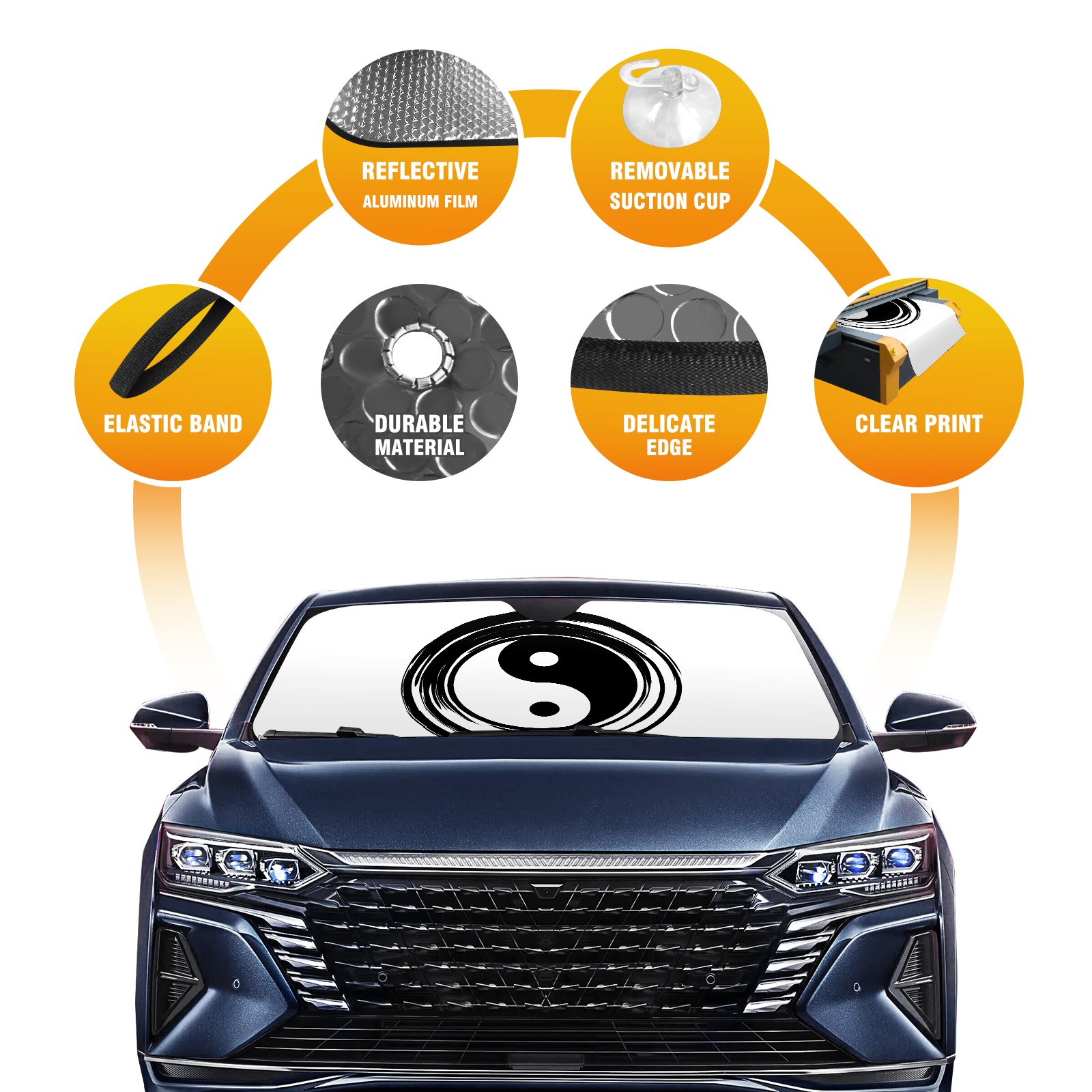 Car Windshield Sun Shade For Front Window Yin Yang Chinese Tai Bagua Foldable Vehicle Windshield Car Sun Visor Covers Automotive Window Protector Car Camping Privacy Sun Blocker