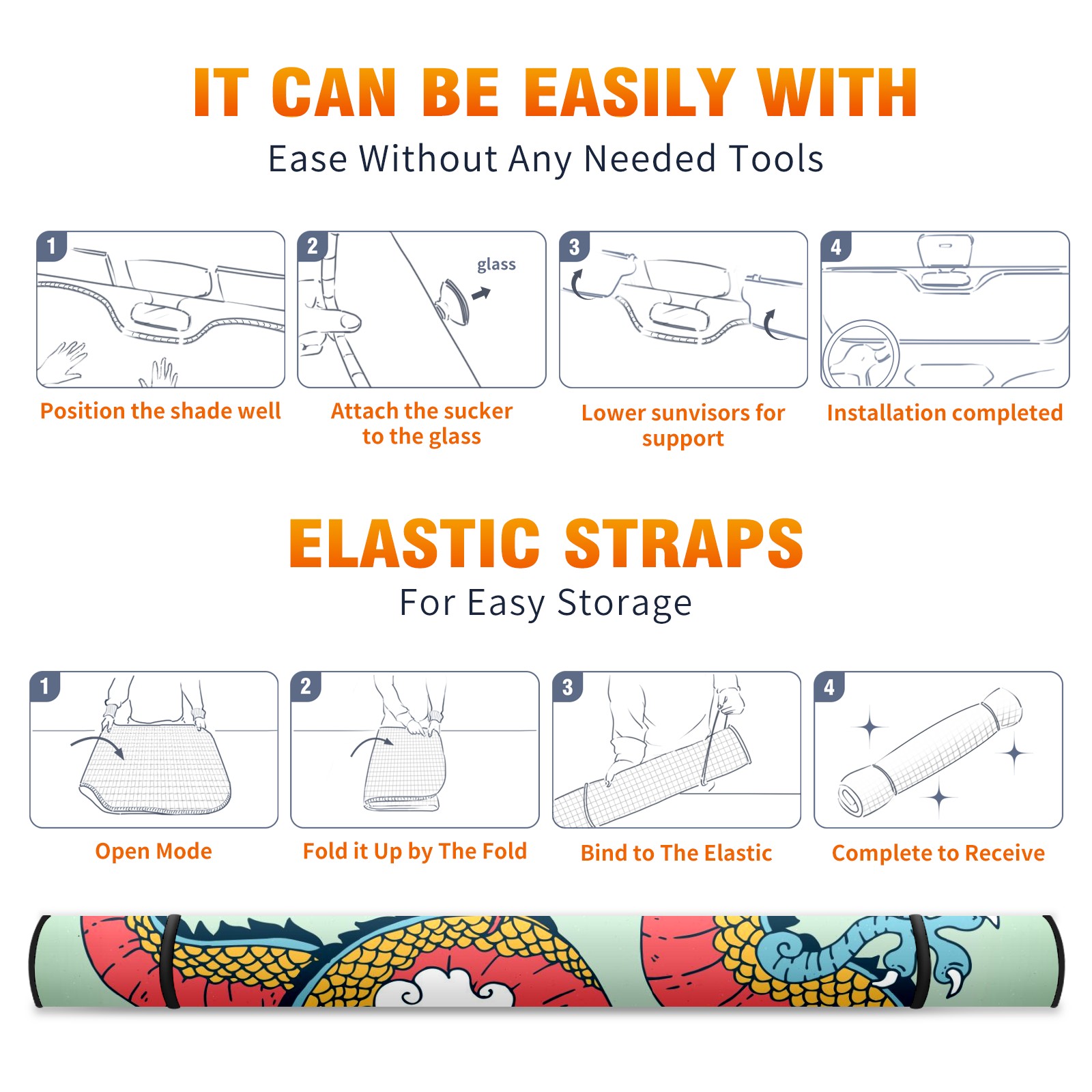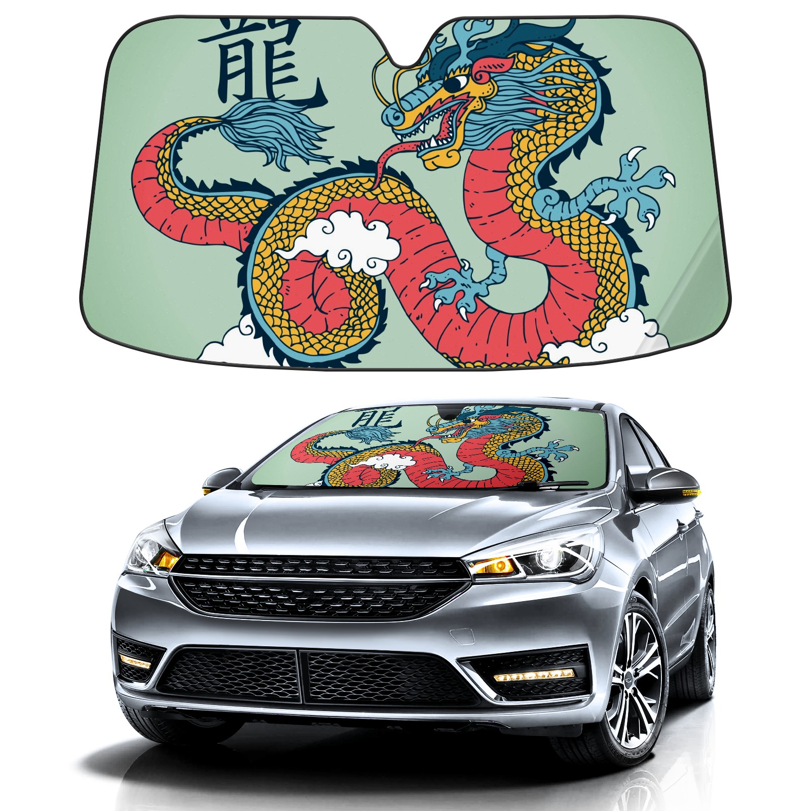 Car Windshield Sun Shade For Front Window Colorful Chinese Dragon Foldable Vehicle Windshield Car Sun Visor Covers Automotive Window Protector Car Camping Privacy Sun Blocker