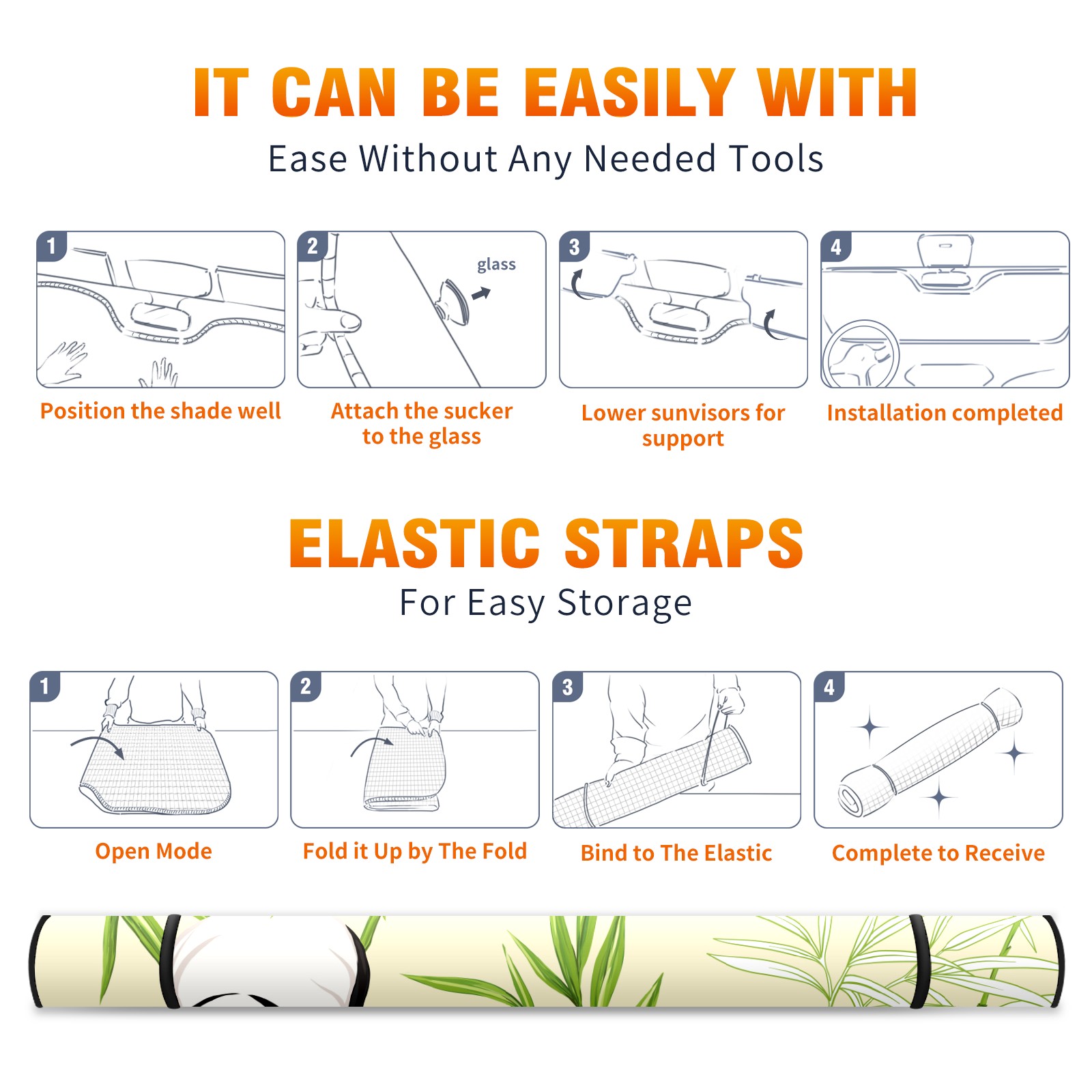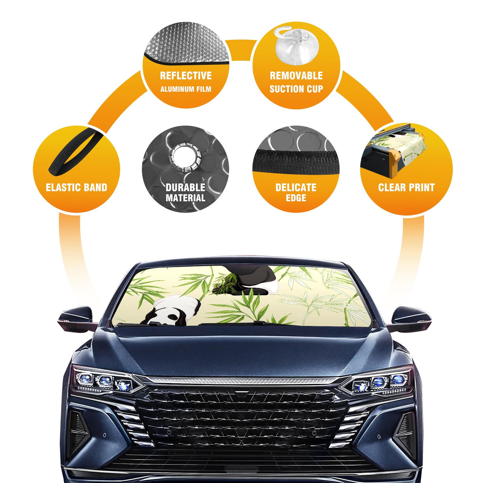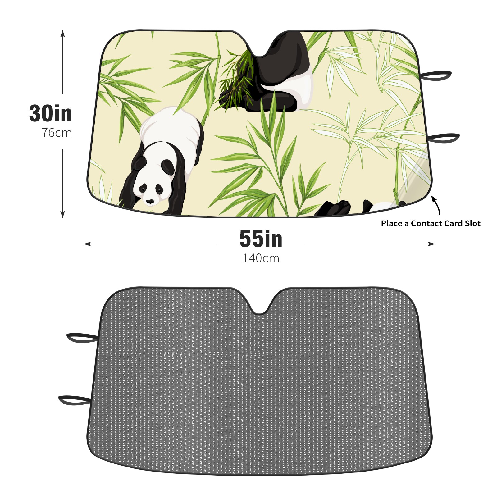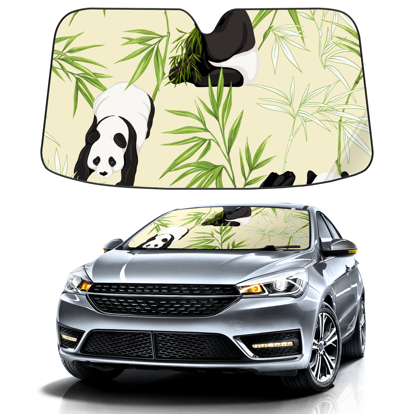 Car Windshield Sun Shade For Front Window Retro Chinese Panda Bamboo Pattern Foldable Vehicle Windshield Car Sun Visor Covers Automotive Window Protector Car Camping Privacy Sun Blocker