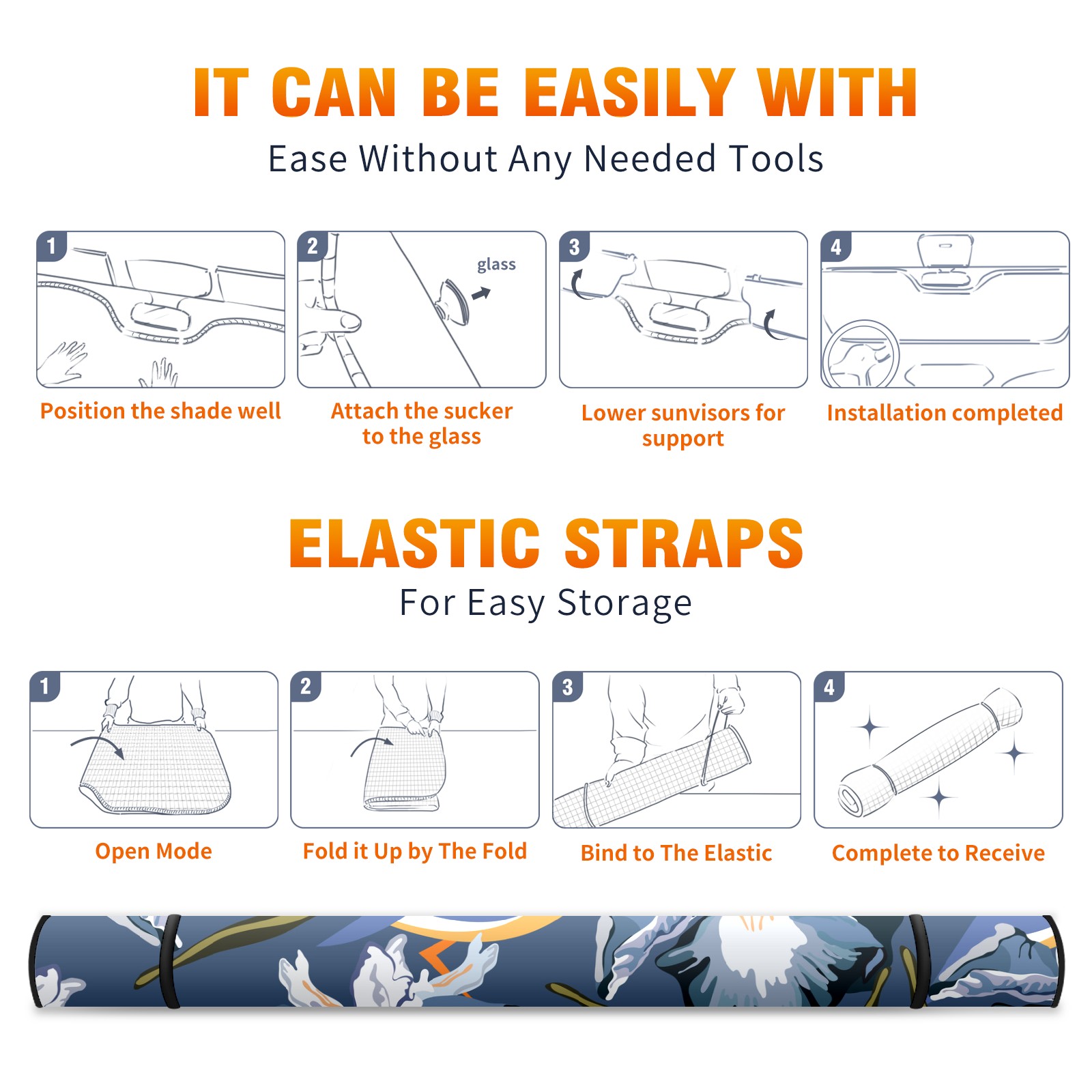 • Diameter /Size 63"L x 33.5"W Made from excellent materials which makes it sturdy and protects the car from the sun. Easy to use and pack. Makes the interior of the car cooler.You can easily stash the sunshade in the storage bag or store long term.It open and closes easy. Also the leather storage bag is durable and easy to put the umbrella back into.This windshield sunshade provides complete coverage and keeps your car interior cool under direct sun. It is easy to open and position under the windshield and around the rear-view mirror. Makes Your Car Easy To Identify, Perfect For Finding Your Car In Crowded Parking Lots And Garages.Great Choice: It Is A Great Gift For Dad, Boyfriend, Brother, Brother And Uncle, Friends, Classmates, Family And So On. Notice: Due To Difference Computer Monitors, The Color Maybe Slightly Different From Picture. As Different Measurement Methods, Measurement Data Will Float Within 2%.I Hope You Understand. If You Have Any Question About The Item Please Do Not Hesitate To Contact Us Immediately And We Will Give You A Satisfactory Reply Within 24 Hours.