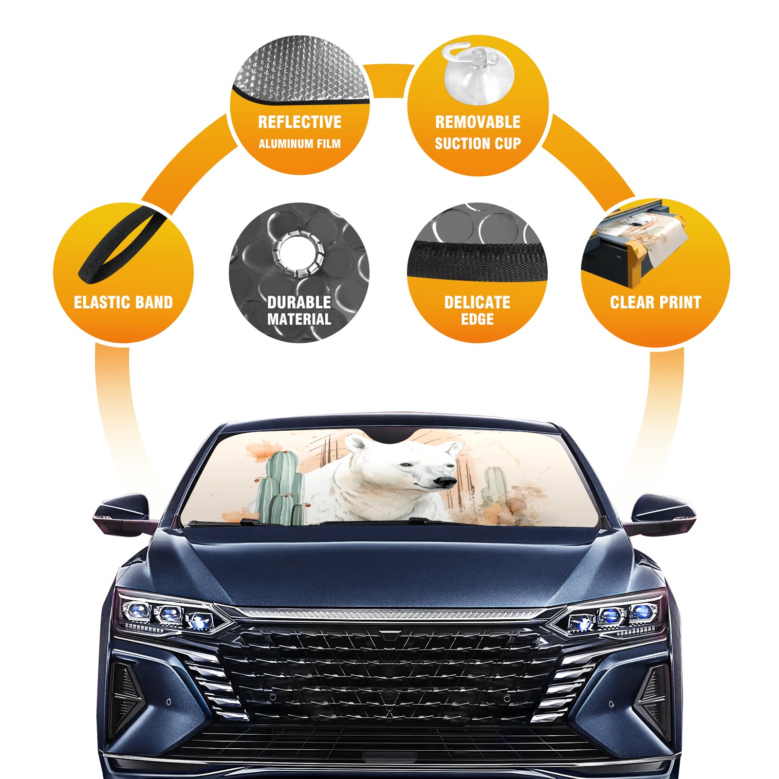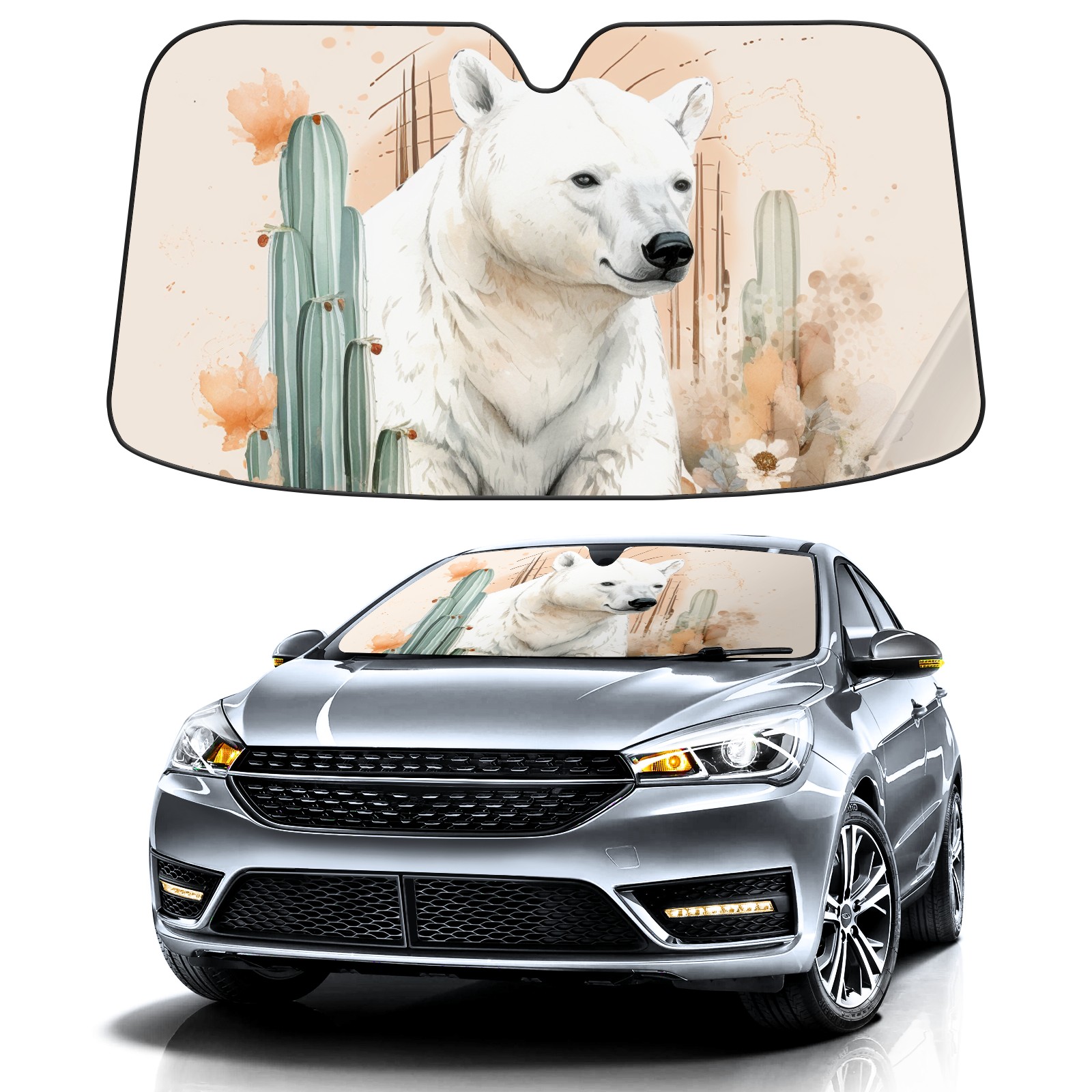 Car Windshield Sun Shade For Front Window Gouache Bear (2) Foldable Vehicle Windshield Car Sun Visor Covers Automotive Window Protector Car Camping Privacy Sun Blocker