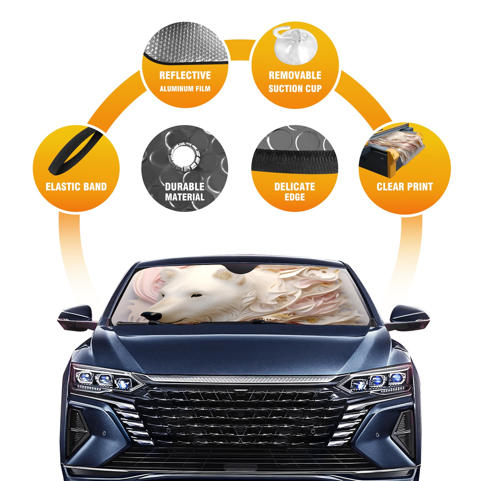 Car Windshield Sun Shade For Front Window Gold Rose Flower Bear (4) Foldable Vehicle Windshield Car Sun Visor Covers Automotive Window Protector Car Camping Privacy Sun Blocker