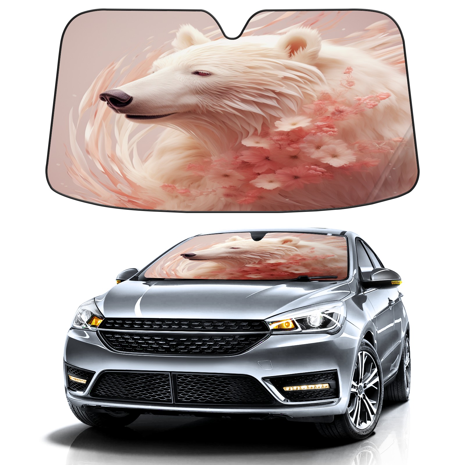 Car Windshield Sun Shade For Front Window Gold Rose Flower Bear (2) Foldable Vehicle Windshield Car Sun Visor Covers Automotive Window Protector Car Camping Privacy Sun Blocker