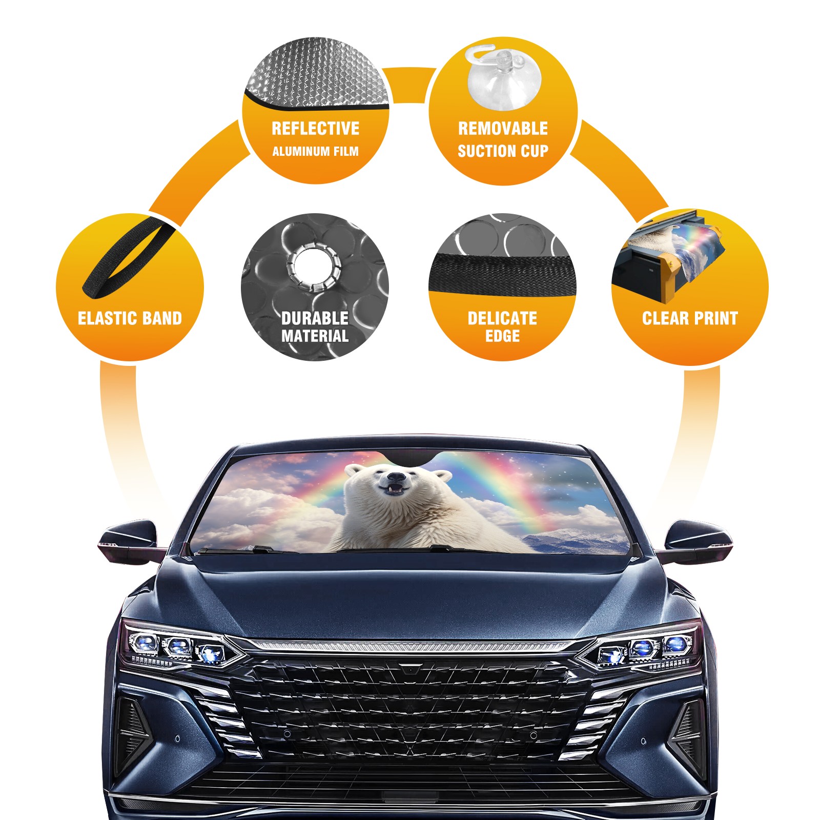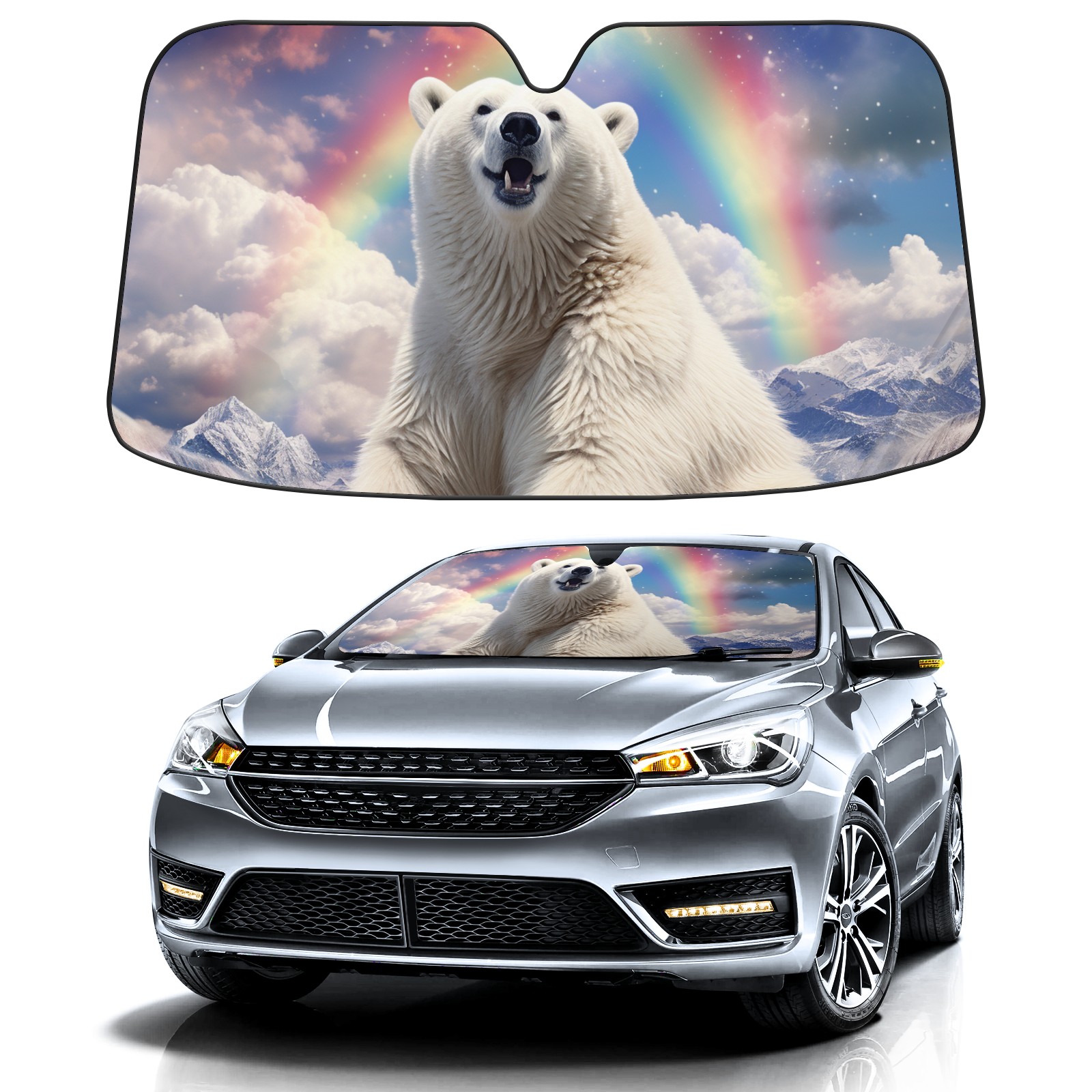 Car Windshield Sun Shade For Front Window Bear Cloud Rainbow (1) Foldable Vehicle Windshield Car Sun Visor Covers Automotive Window Protector Car Camping Privacy Sun Blocker