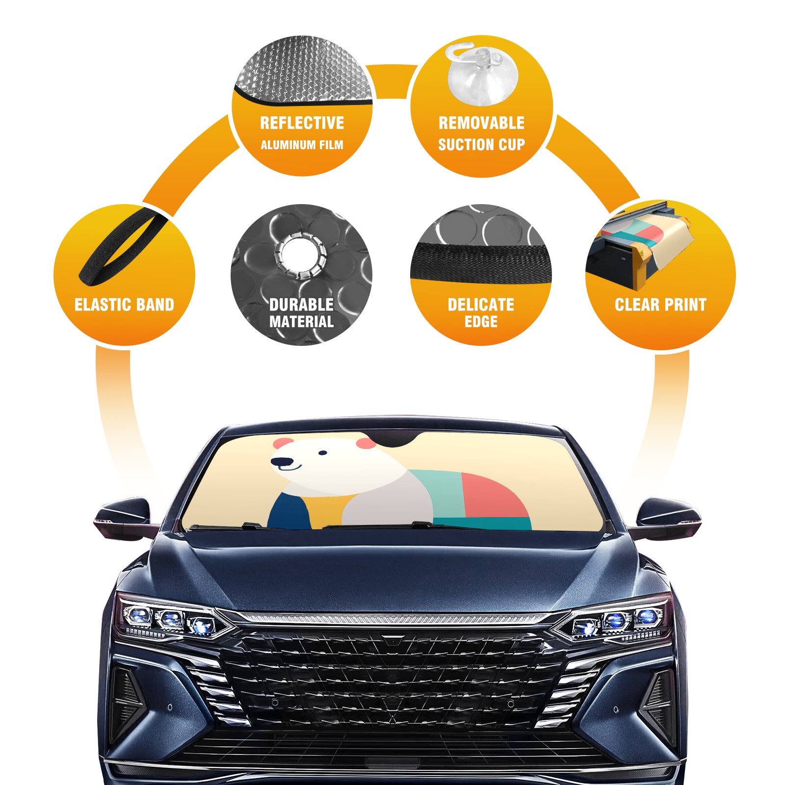 Car Windshield Sun Shade For Front Window Cute Bear (3) Foldable Vehicle Windshield Car Sun Visor Covers Automotive Window Protector Car Camping Privacy Sun Blocker