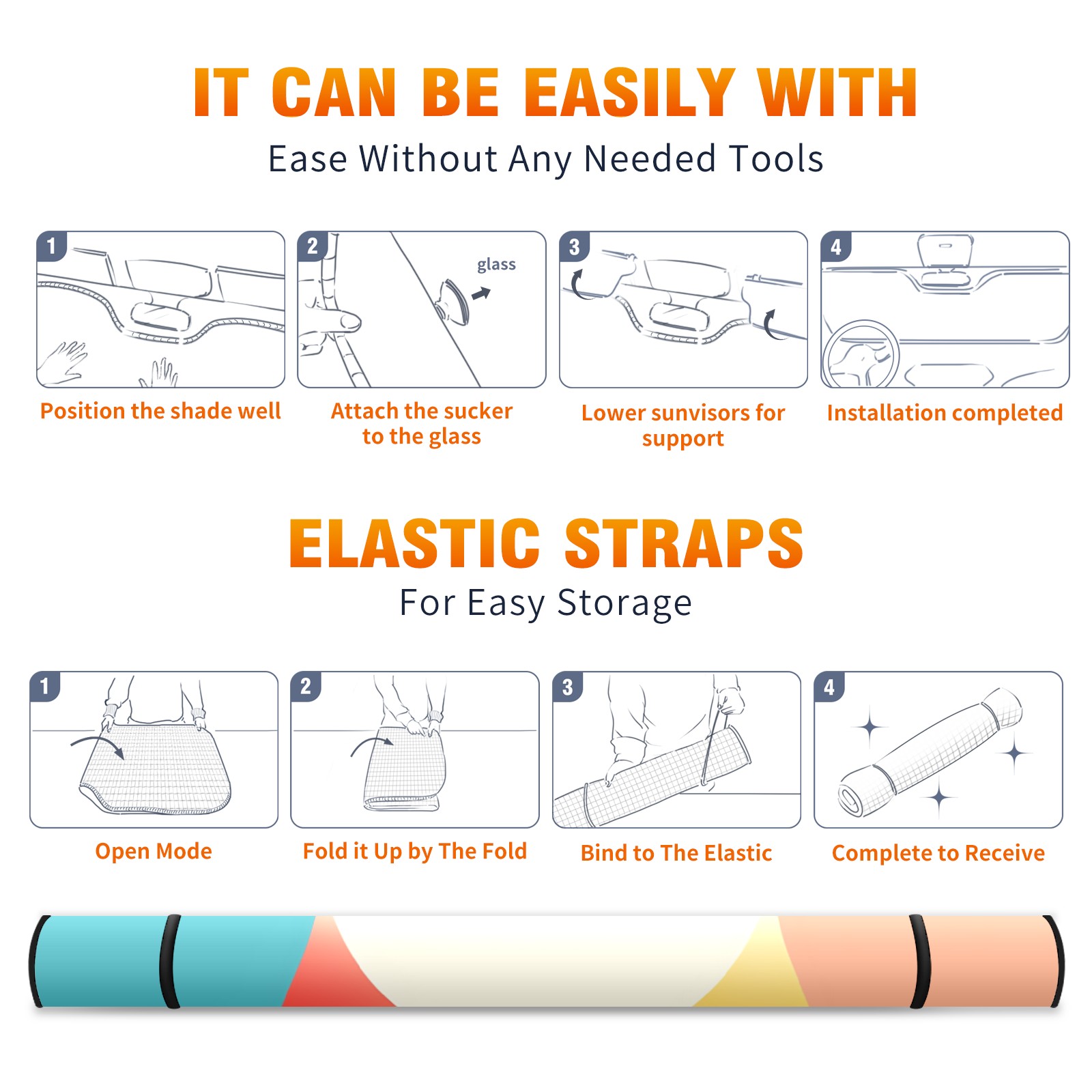 • Diameter /Size 63"L x 33.5"W Made from excellent materials which makes it sturdy and protects the car from the sun. Easy to use and pack. Makes the interior of the car cooler.You can easily stash the sunshade in the storage bag or store long term.It open and closes easy. Also the leather storage bag is durable and easy to put the umbrella back into.This windshield sunshade provides complete coverage and keeps your car interior cool under direct sun. It is easy to open and position under the windshield and around the rear-view mirror. Makes Your Car Easy To Identify, Perfect For Finding Your Car In Crowded Parking Lots And Garages.Great Choice: It Is A Great Gift For Dad, Boyfriend, Brother, Brother And Uncle, Friends, Classmates, Family And So On. Notice: Due To Difference Computer Monitors, The Color Maybe Slightly Different From Picture. As Different Measurement Methods, Measurement Data Will Float Within 2%.I Hope You Understand. If You Have Any Question About The Item Please Do Not Hesitate To Contact Us Immediately And We Will Give You A Satisfactory Reply Within 24 Hours.