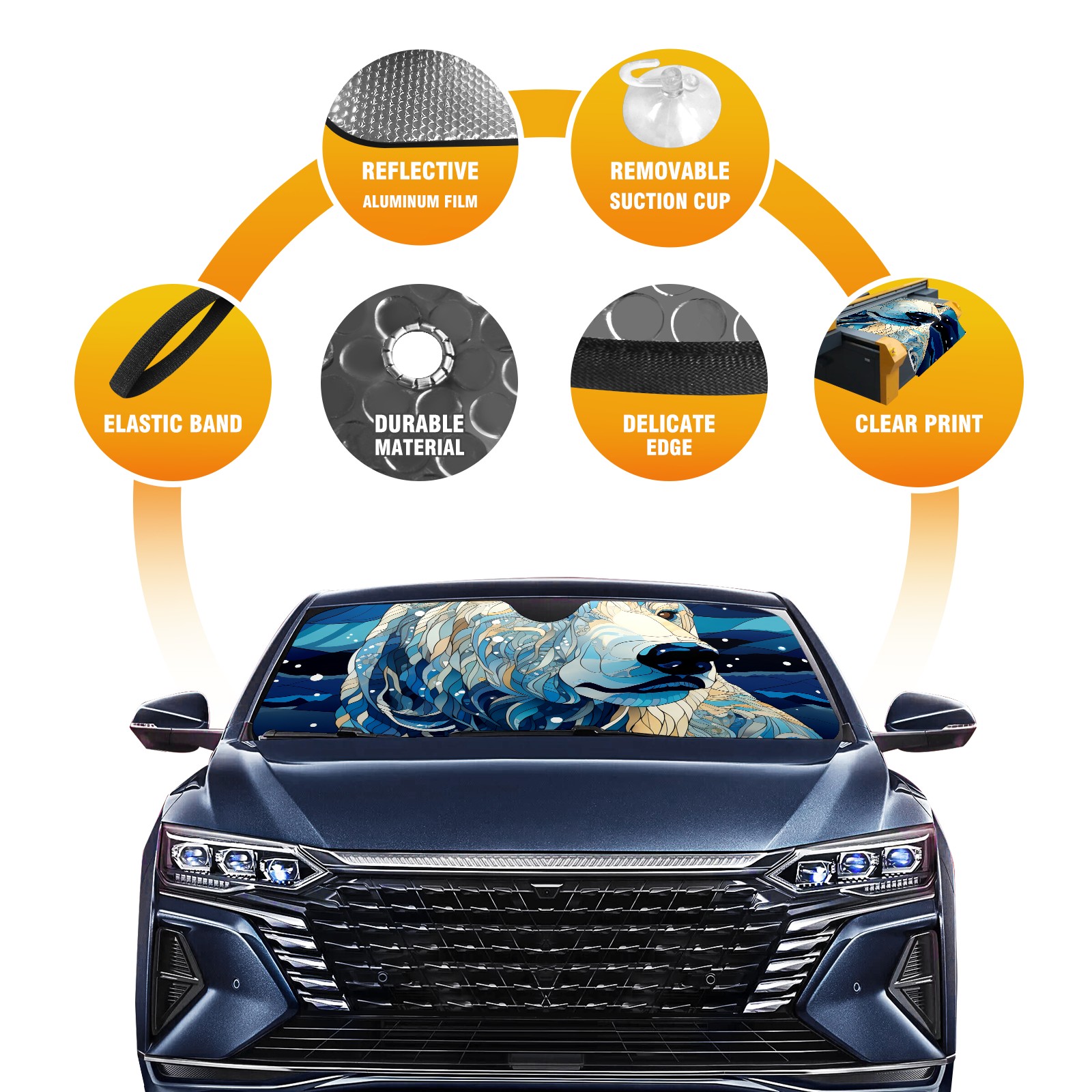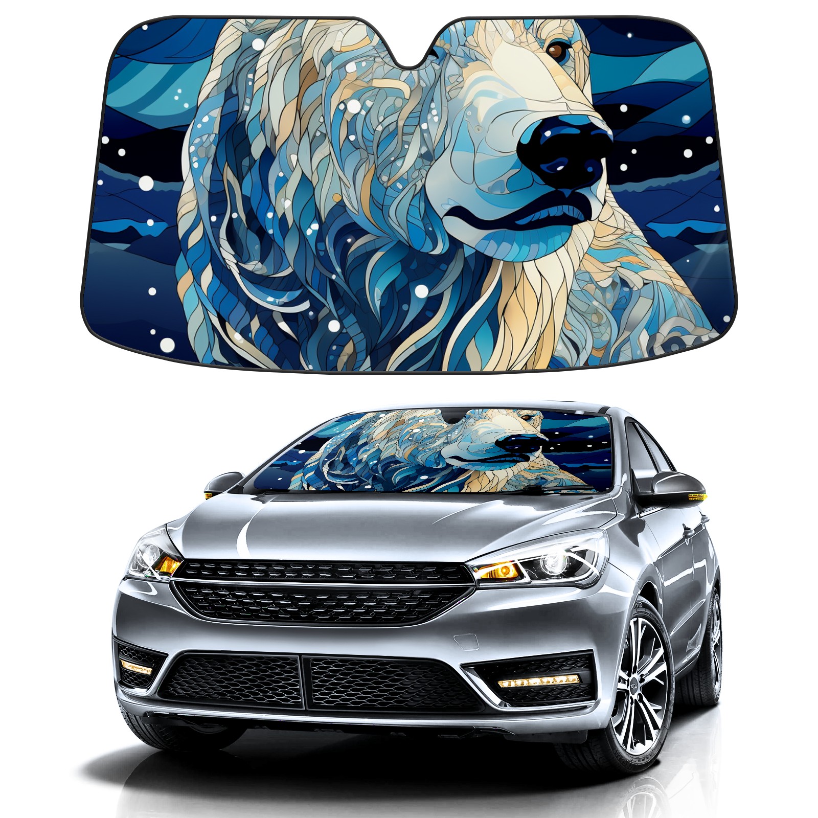 Car Windshield Sun Shade For Front Window Illustration Bear (7) Foldable Vehicle Windshield Car Sun Visor Covers Automotive Window Protector Car Camping Privacy Sun Blocker