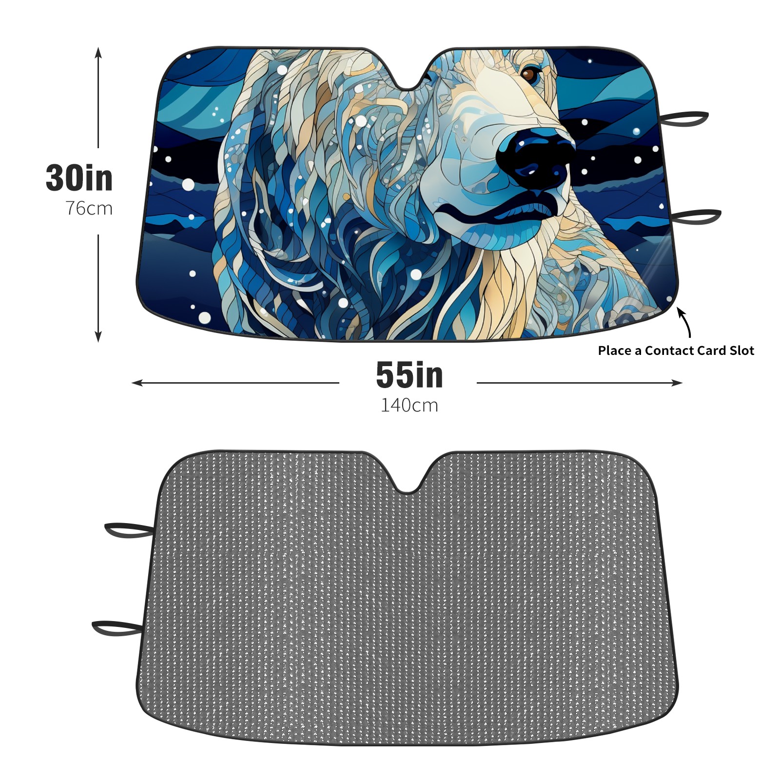 Diameter /Size 63"L x 33.5"W Made from excellent materials which makes it sturdy and protects the car from the sun. Easy to use and pack. Makes the interior of the car cooler.You can easily stash the sunshade in the storage bag or store long term.It open and closes easy. Also the leather storage bag is durable and easy to put the umbrella back into.This windshield sunshade provides complete coverage and keeps your car interior cool under direct sun. It is easy to open and position under the windshield and around the rear-view mirror. Makes Your Car Easy To Identify, Perfect For Finding Your Car In Crowded Parking Lots And Garages.Great Choice: It Is A Great Gift For Dad, Boyfriend, Brother, Brother And Uncle, Friends, Classmates, Family And So On. Notice: Due To Difference Computer Monitors, The Color Maybe Slightly Different From Picture. As Different Measurement Methods, Measurement Data Will Float Within 2%.I Hope You Understand. If You Have Any Question About The Item Please Do Not Hesitate To Contact Us Immediately And We Will Give You A Satisfactory Reply Within 24 Hours.