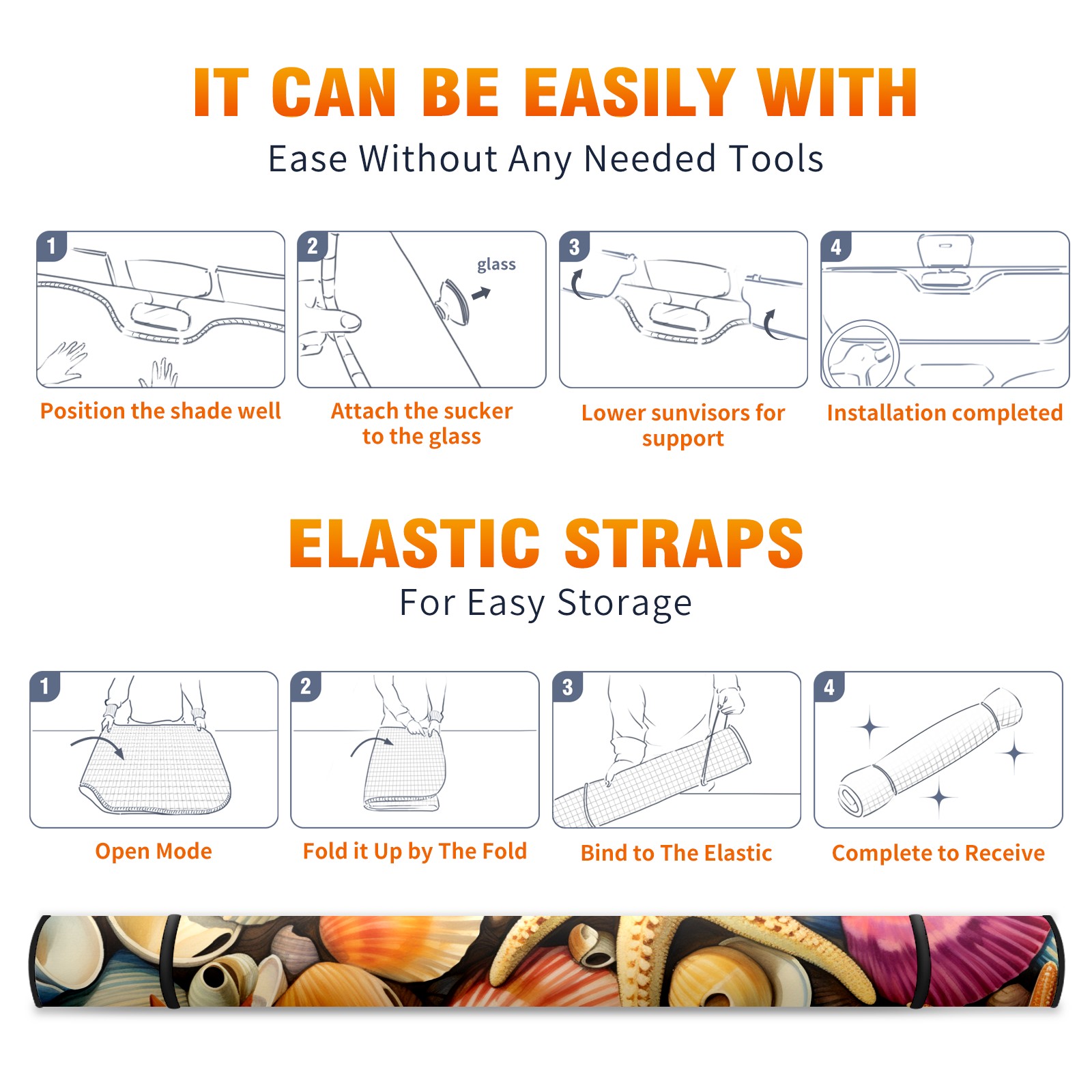 Car Windshield Sun Shade For Front Window Starfish Foldable Vehicle Windshield Car Sun Visor Covers Automotive Window Protector Car Camping Privacy Sun Blocker