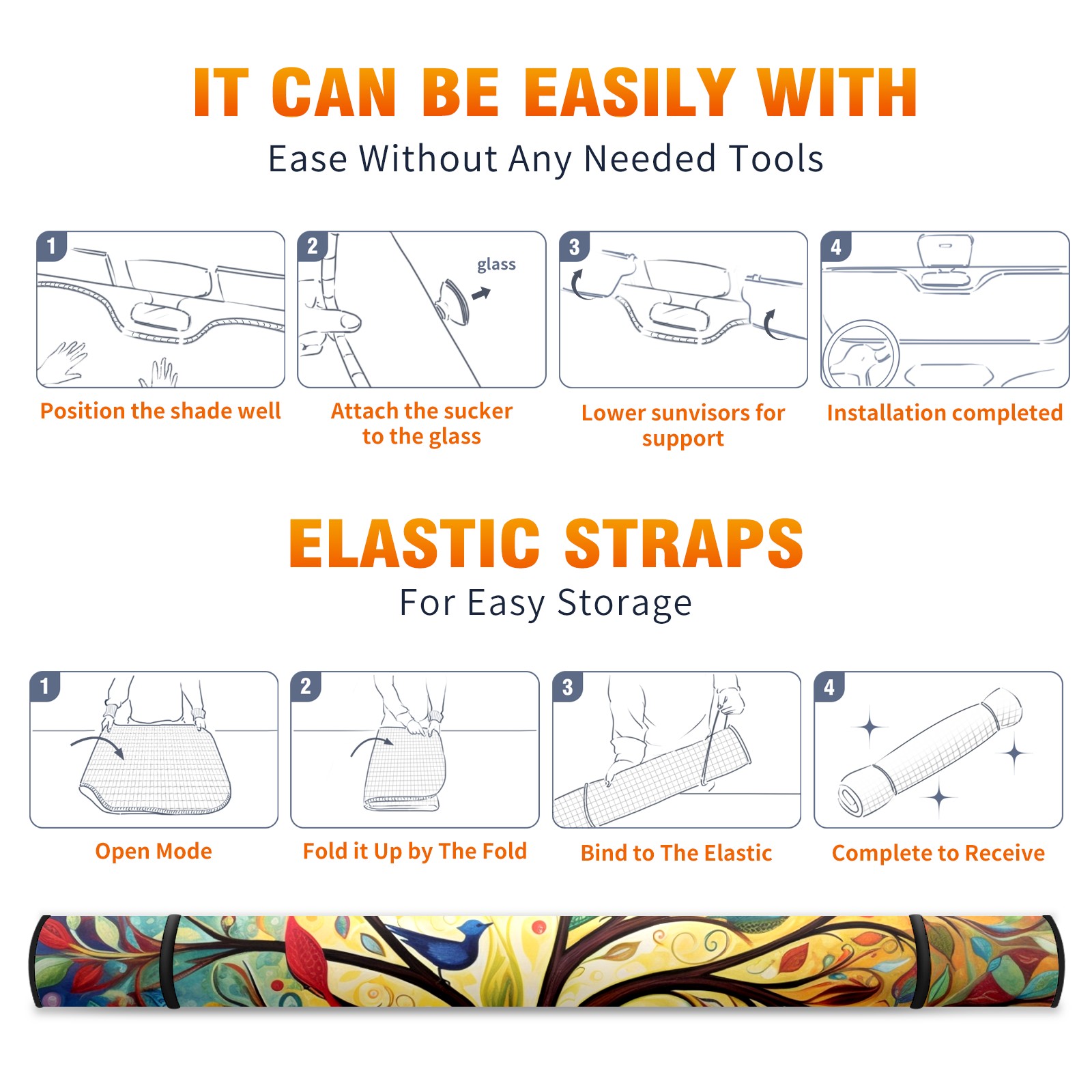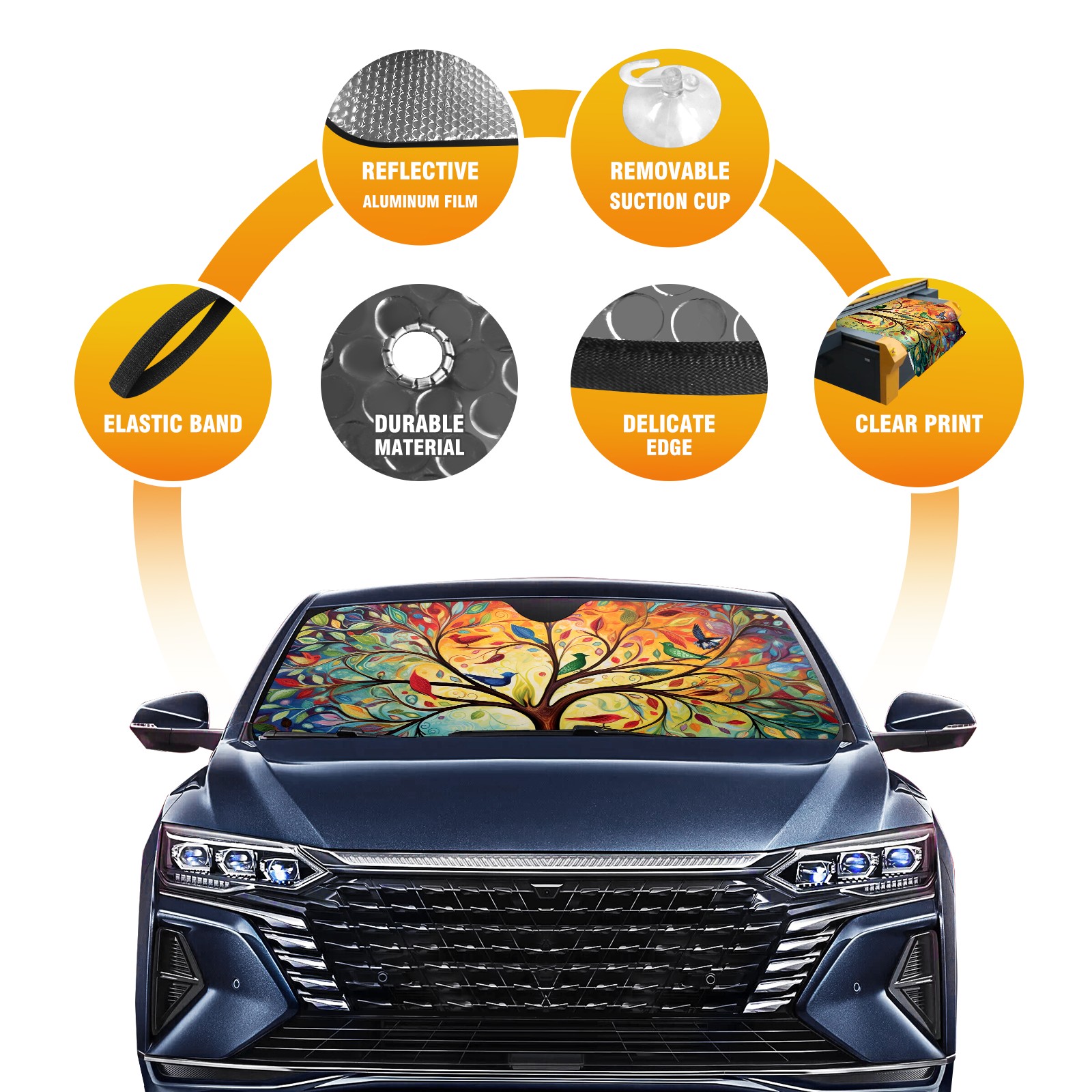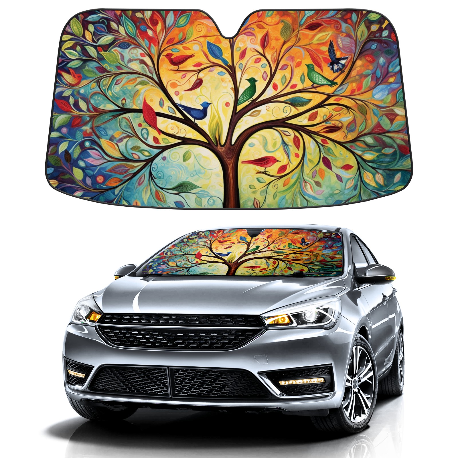 Car Windshield Sun Shade For Front Window Colorful Birds Foldable Vehicle Windshield Car Sun Visor Covers Automotive Window Protector Car Camping Privacy Sun Blocker