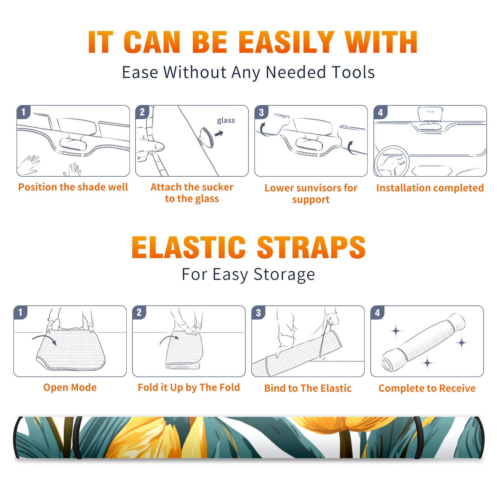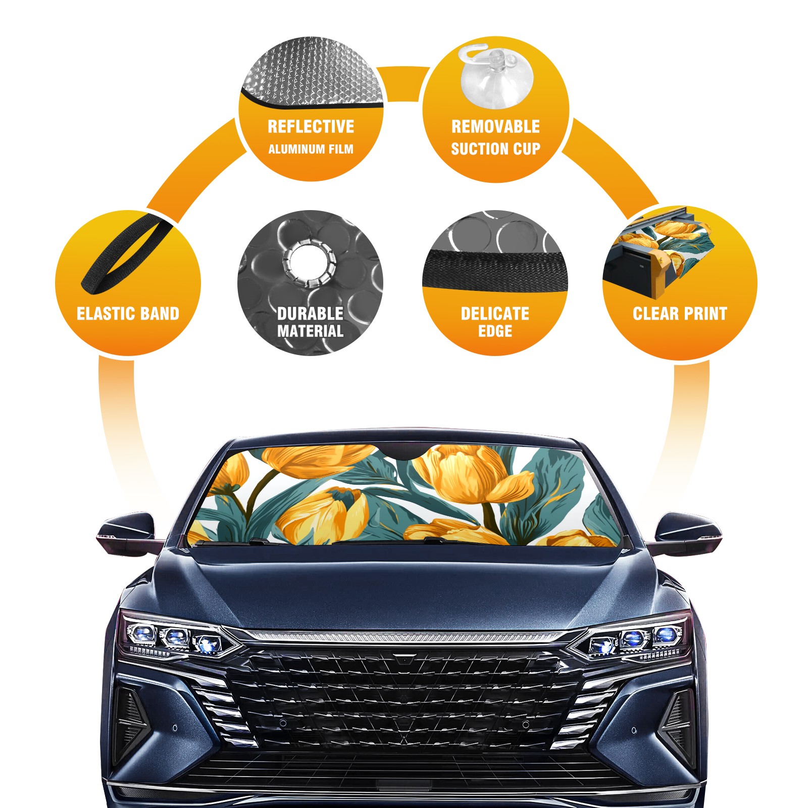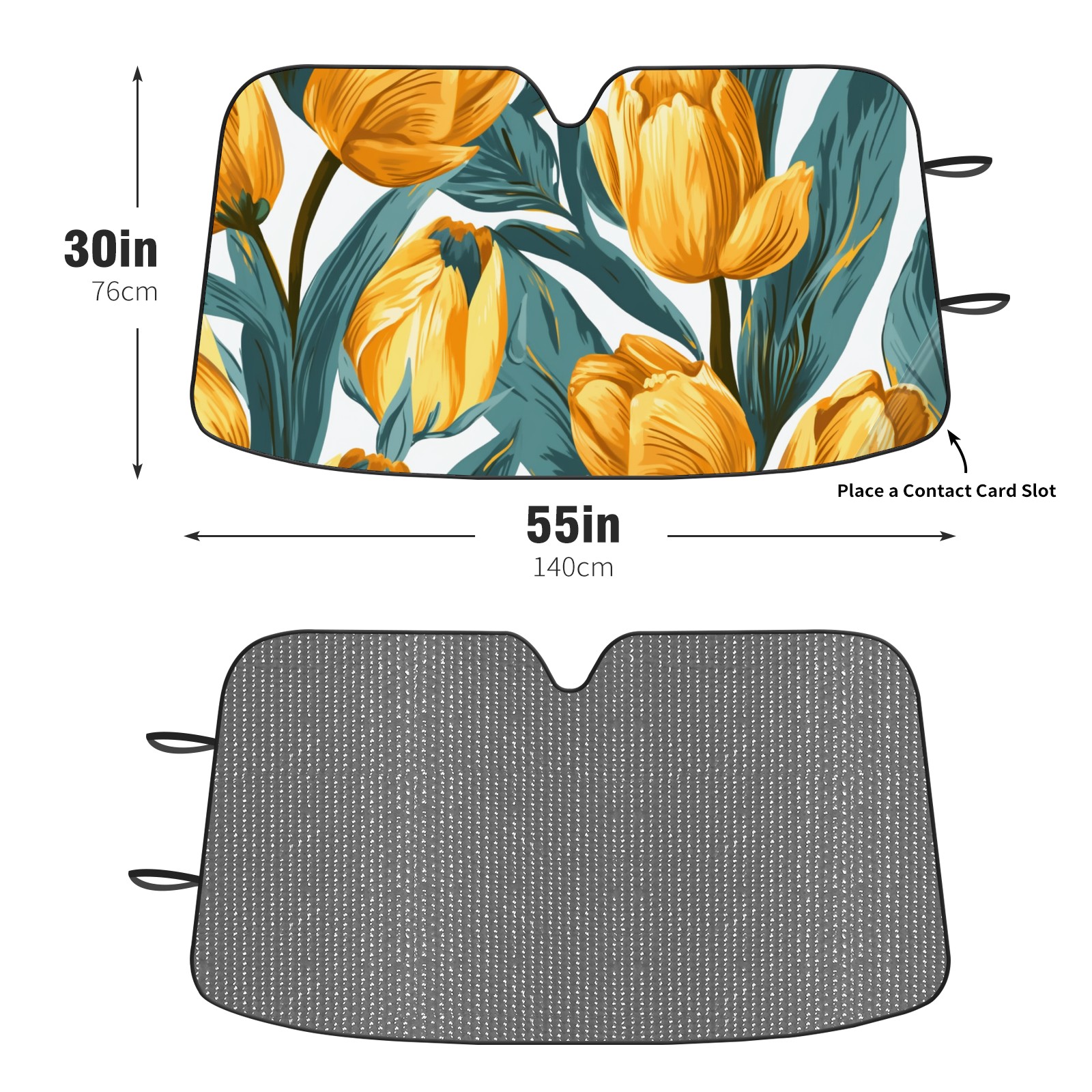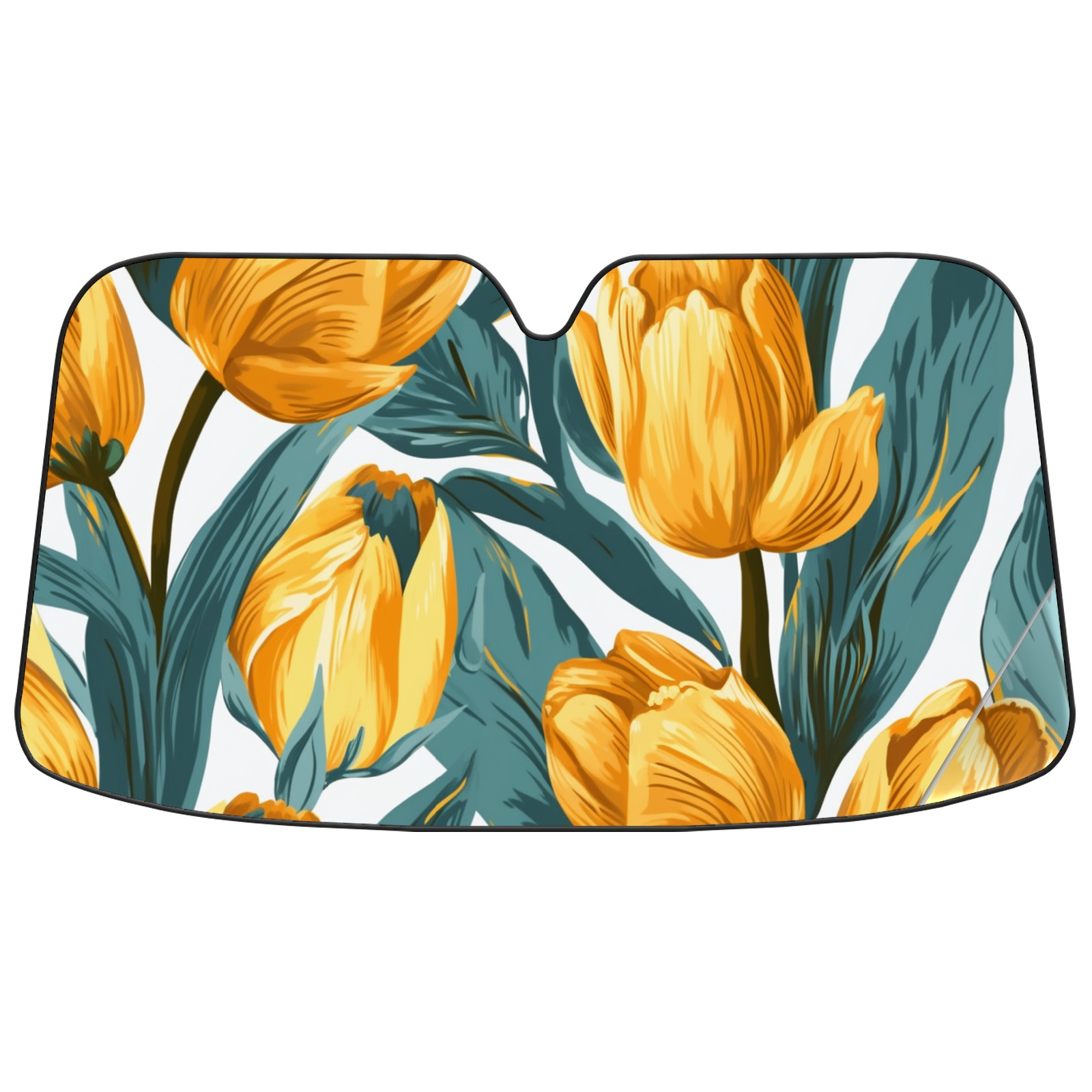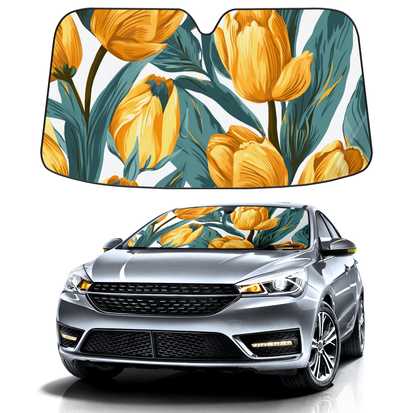 Car Windshield Sun Shade For Front Window Yellow And Green Tulips Foldable Vehicle Windshield Car Sun Visor Covers Automotive Window Protector Car Camping Privacy Sun Blocker