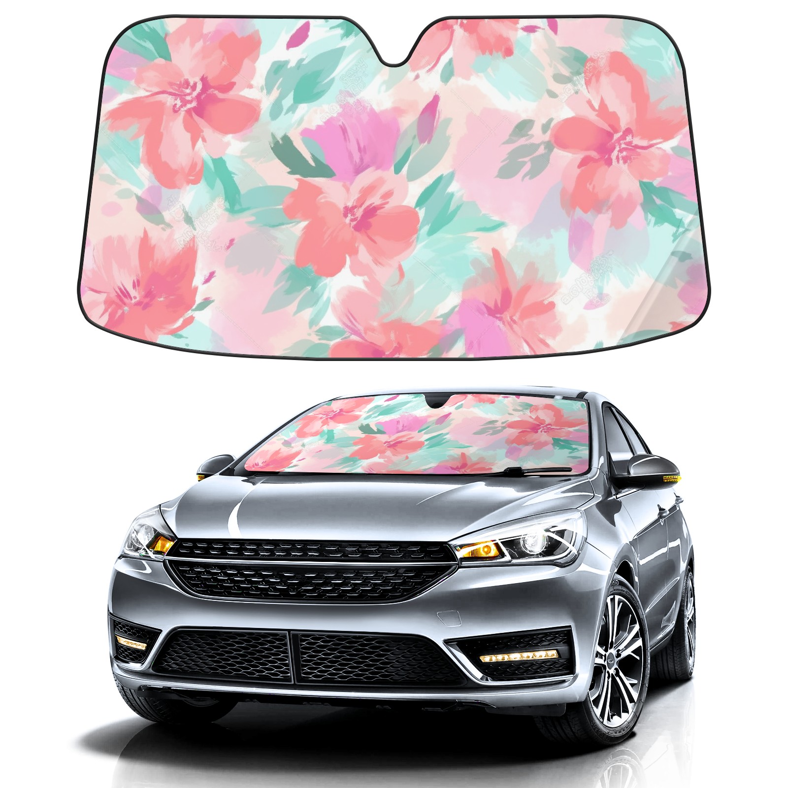 Car Windshield Sun Shade For Front Window Watercolor Floral Pink Foldable Vehicle Windshield Car Sun Visor Covers Automotive Window Protector Car Camping Privacy Sun Blocker