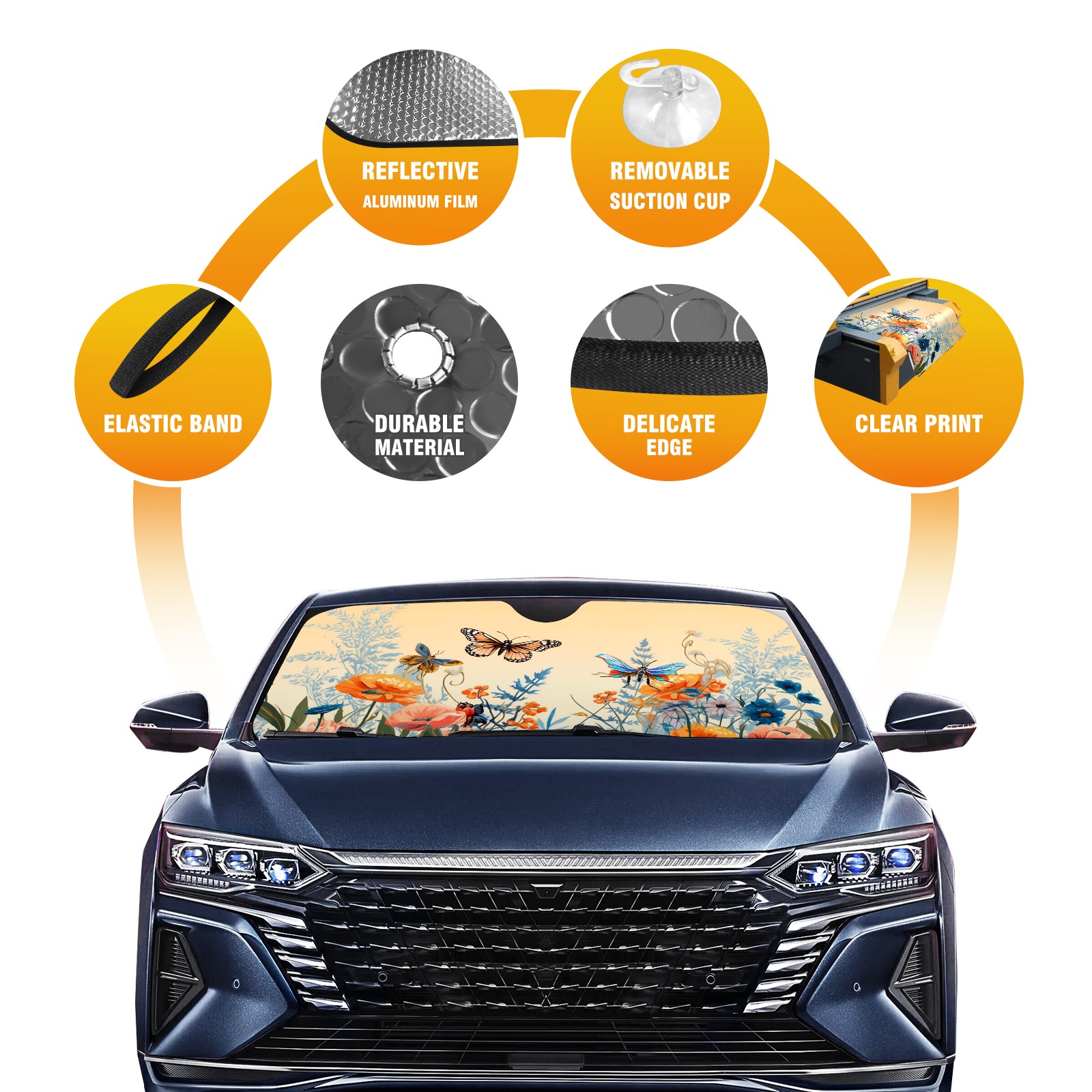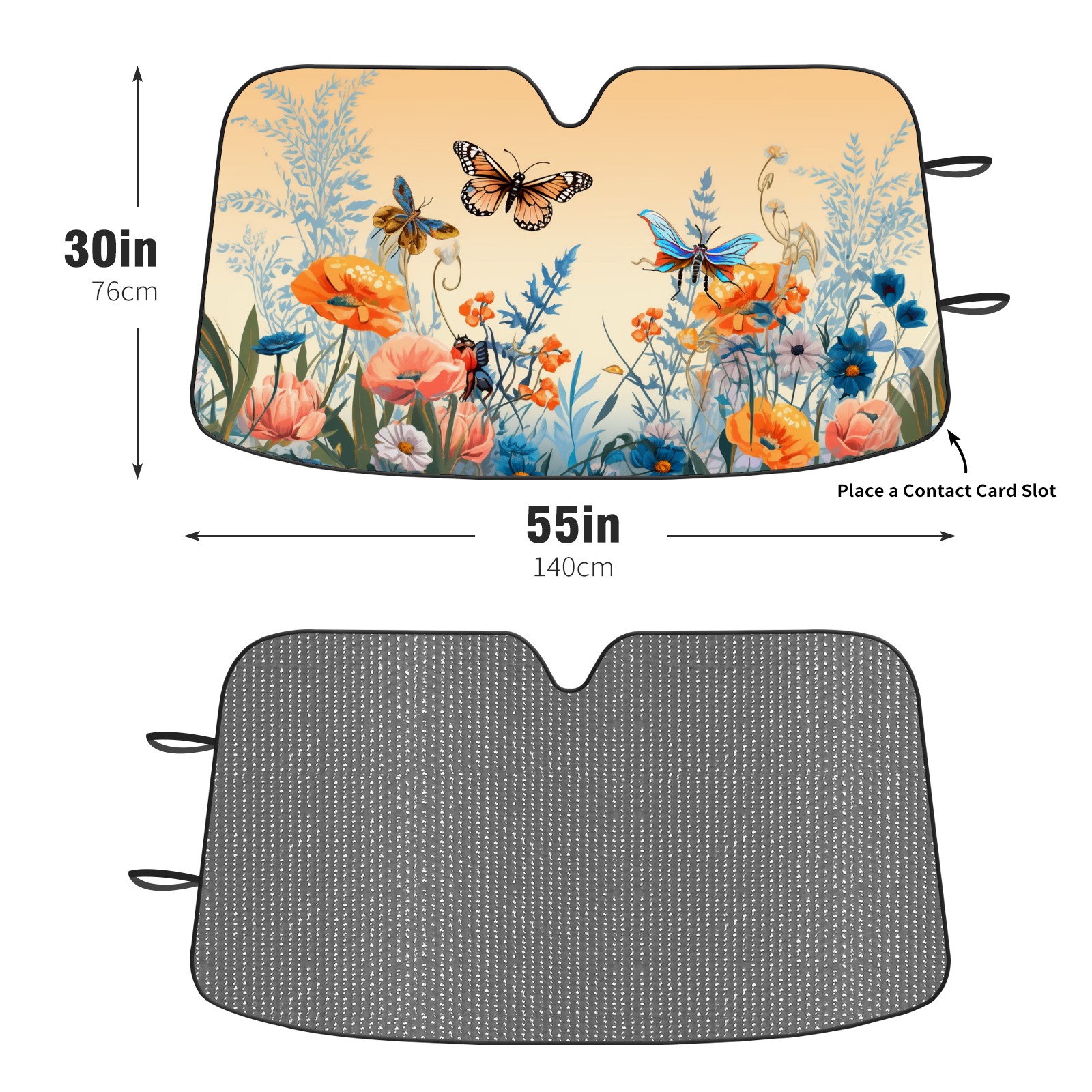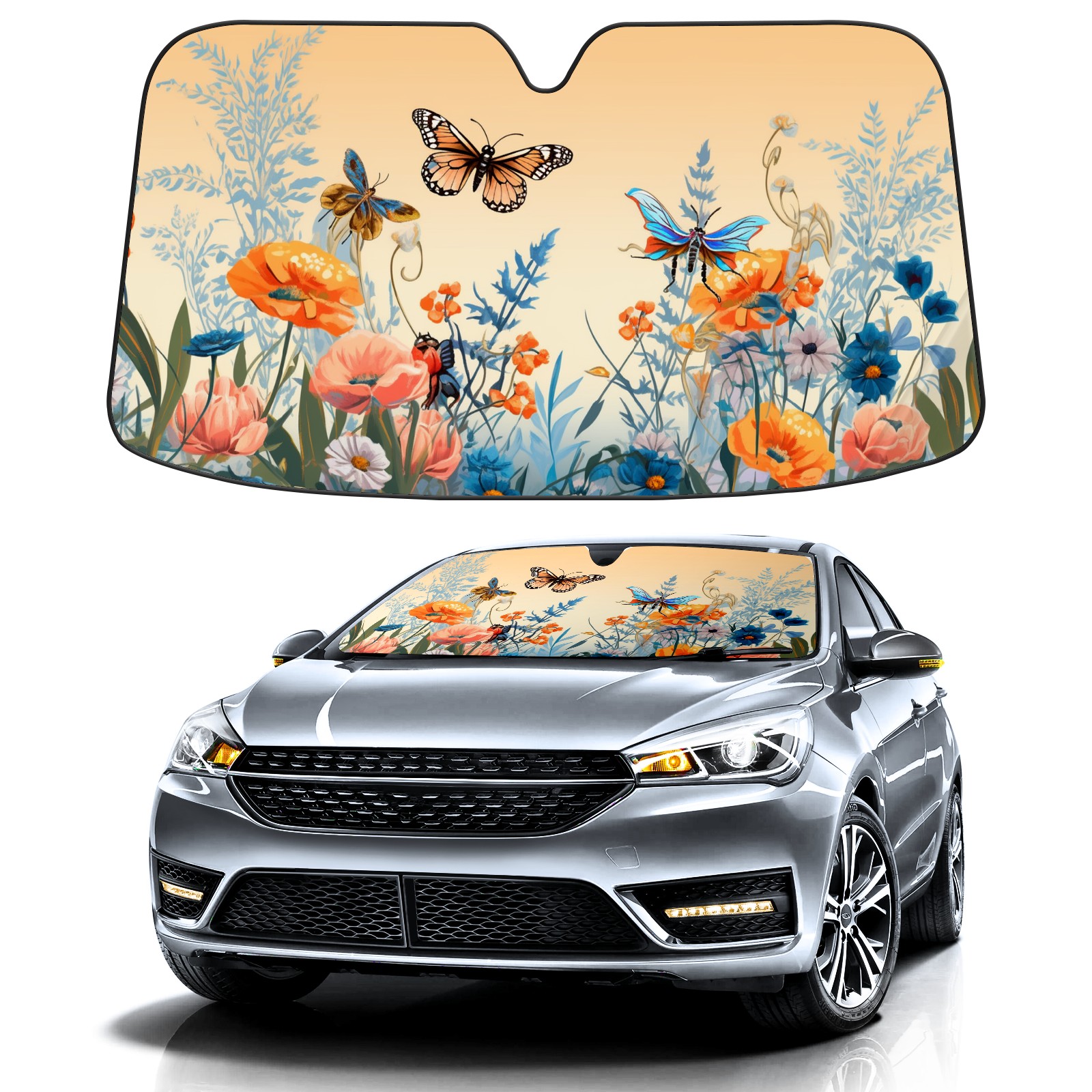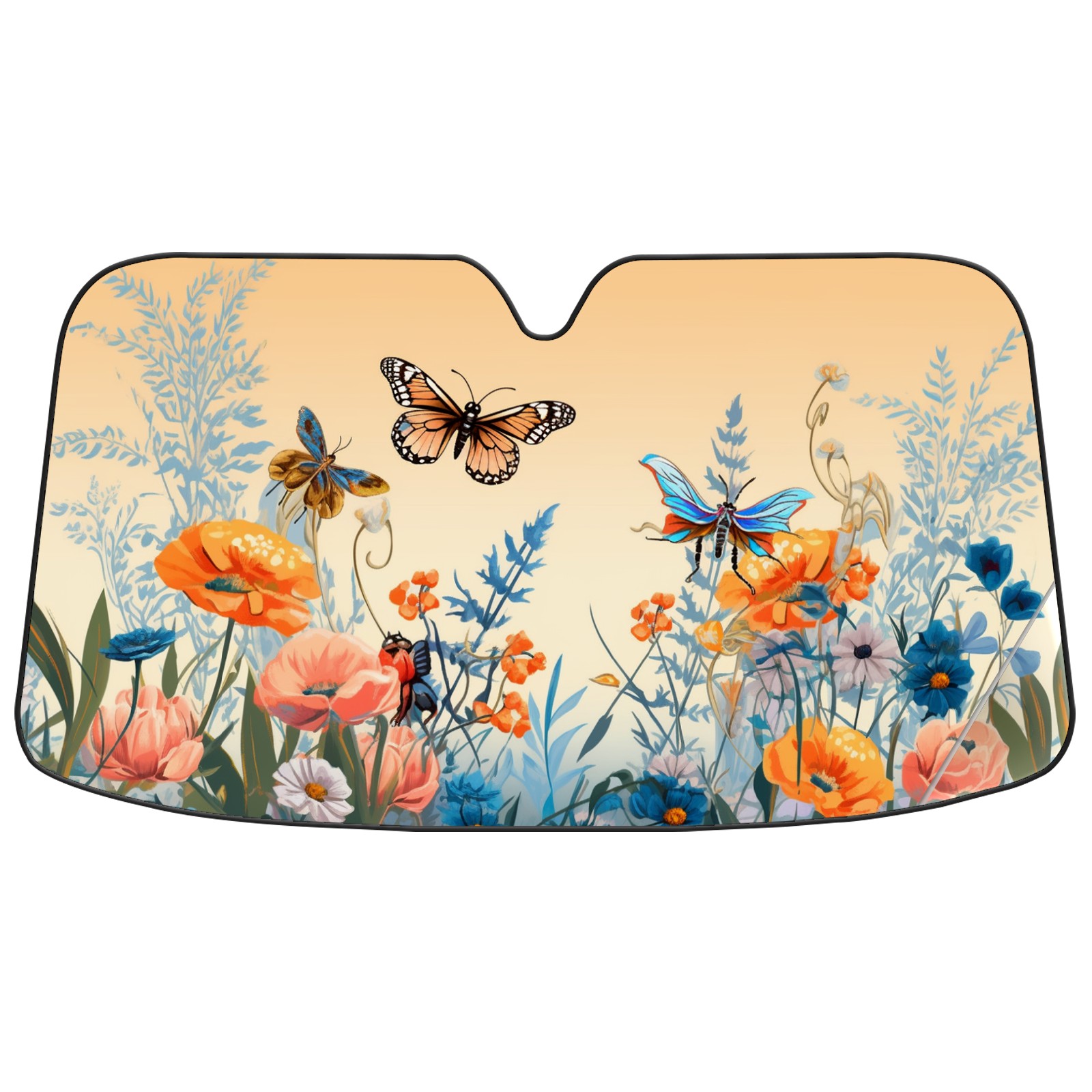 Car Windshield Sun Shade For Front Window Vintage Flower Butterfly Foldable Vehicle Windshield Car Sun Visor Covers Automotive Window Protector Car Camping Privacy Sun Blocker