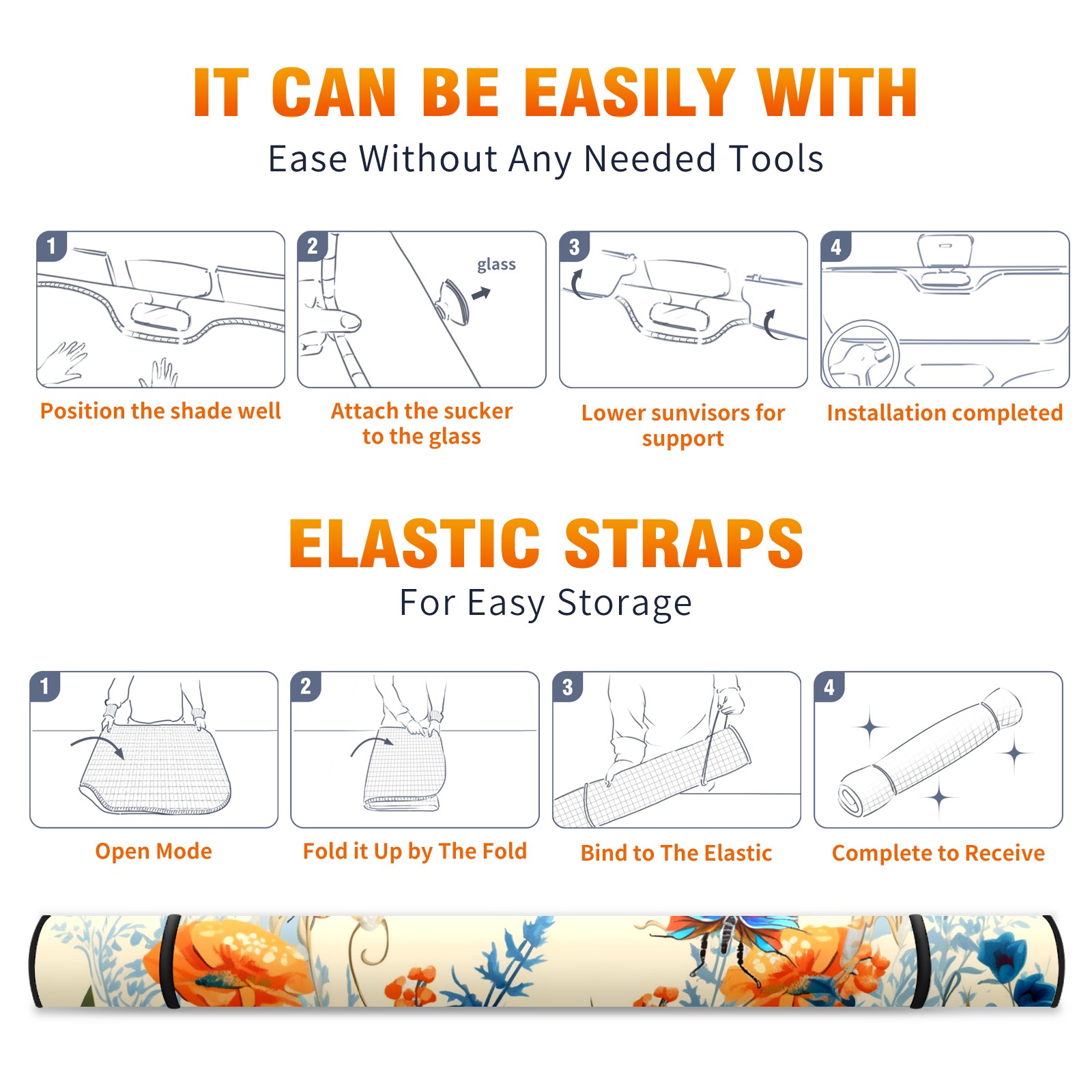• Diameter /Size 63"L x 33.5"W Made from excellent materials which makes it sturdy and protects the car from the sun. Easy to use and pack. Makes the interior of the car cooler.You can easily stash the sunshade in the storage bag or store long term.It open and closes easy. Also the leather storage bag is durable and easy to put the umbrella back into.This windshield sunshade provides complete coverage and keeps your car interior cool under direct sun. It is easy to open and position under the windshield and around the rear-view mirror. Makes Your Car Easy To Identify, Perfect For Finding Your Car In Crowded Parking Lots And Garages.Great Choice: It Is A Great Gift For Dad, Boyfriend, Brother, Brother And Uncle, Friends, Classmates, Family And So On. Notice: Due To Difference Computer Monitors, The Color Maybe Slightly Different From Picture. As Different Measurement Methods, Measurement Data Will Float Within 2%.I Hope You Understand. If You Have Any Question About The Item Please Do Not Hesitate To Contact Us Immediately And We Will Give You A Satisfactory Reply Within 24 Hours.