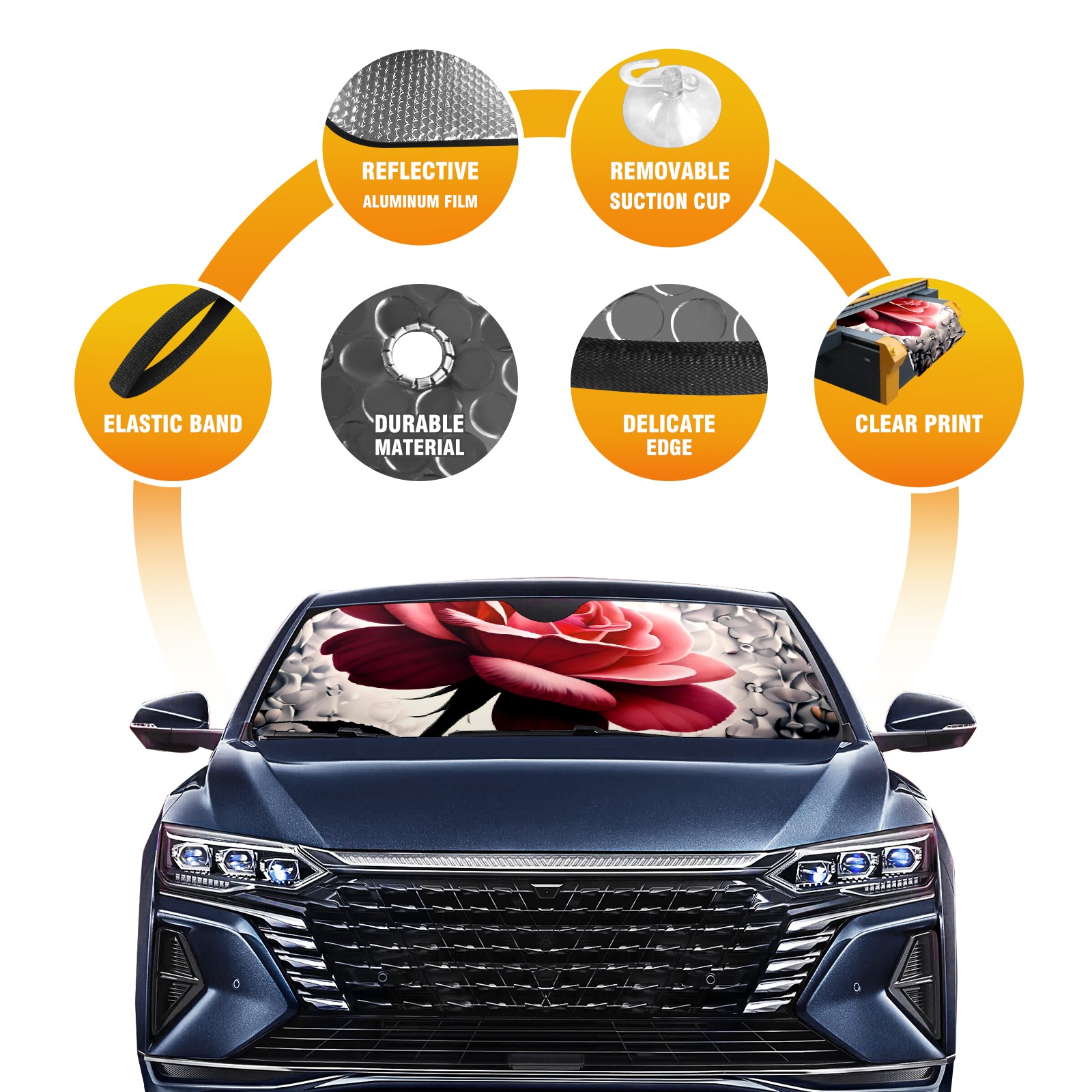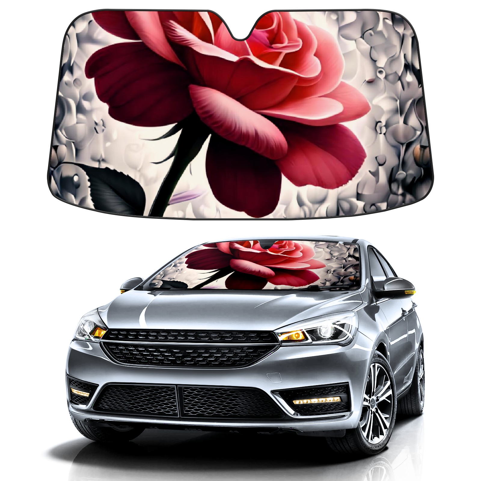 Car Windshield Sun Shade For Front Window Rose Foldable Vehicle Windshield Car Sun Visor Covers Automotive Window Protector Car Camping Privacy Sun Blocker