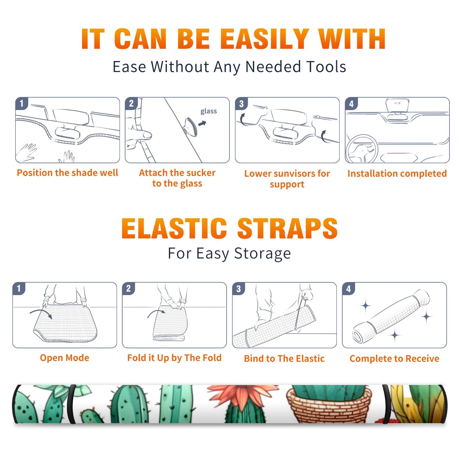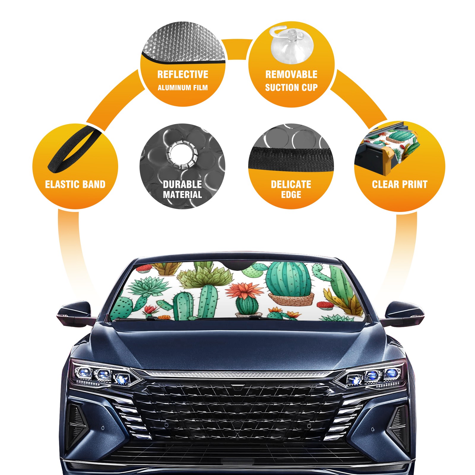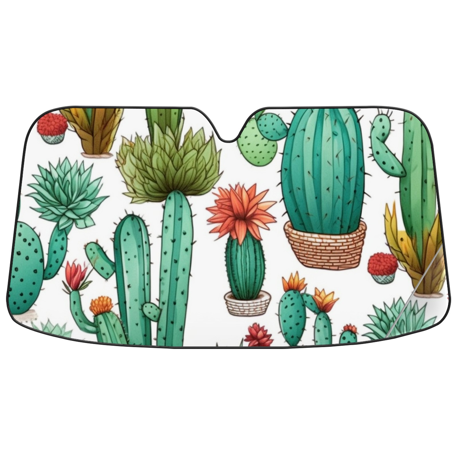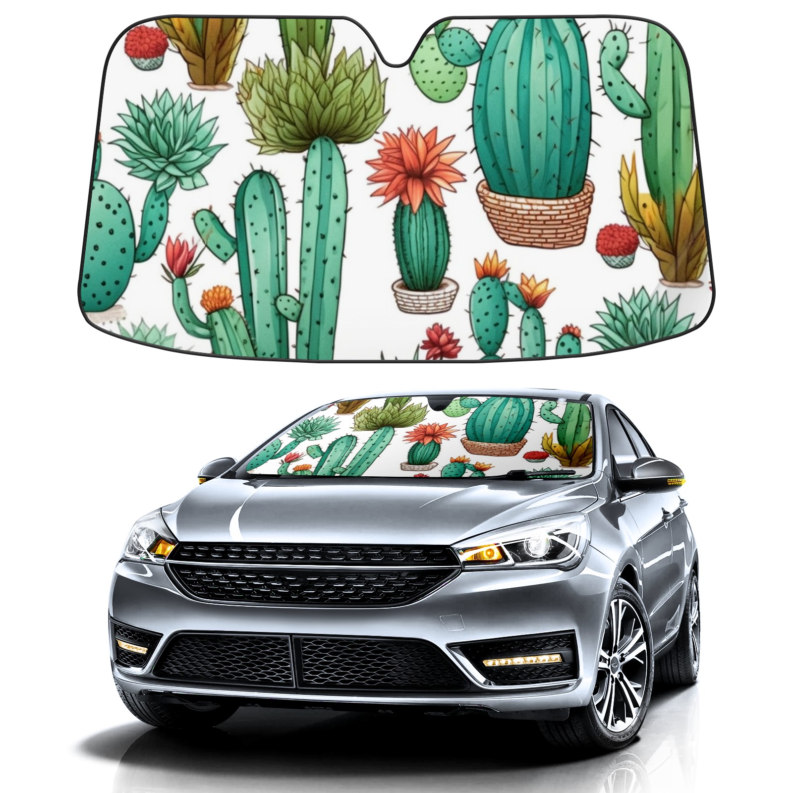 Car Windshield Sun Shade For Front Window Cactus Foldable Vehicle Windshield Car Sun Visor Covers Automotive Window Protector Car Camping Privacy Sun Blocker