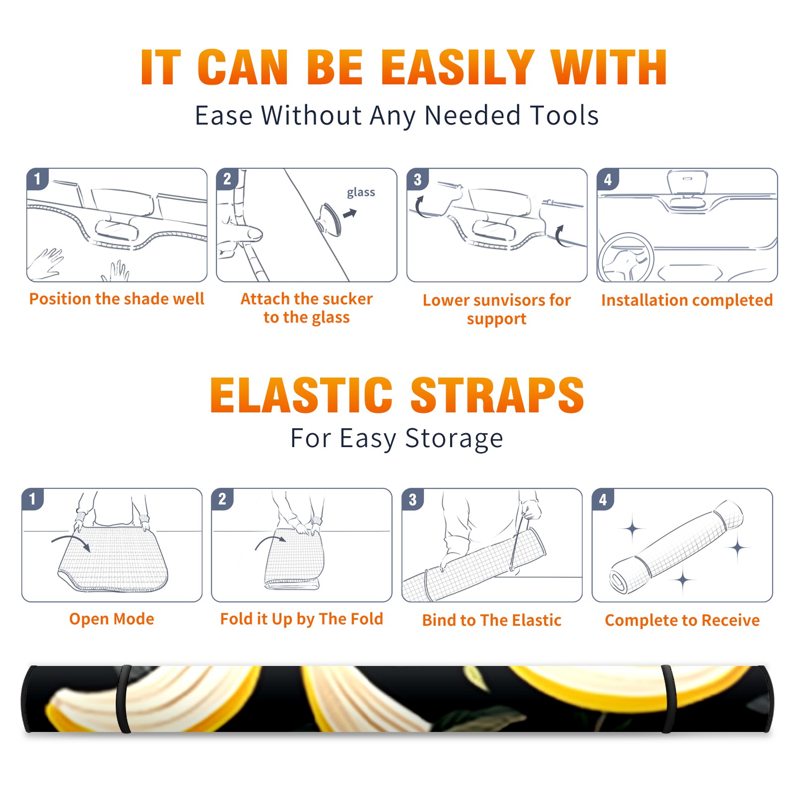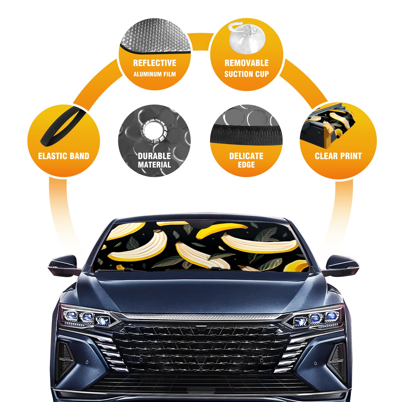 Car Windshield Sun Shade For Front Window Banana Foldable Vehicle Windshield Car Sun Visor Covers Automotive Window Protector Car Camping Privacy Sun Blocker
