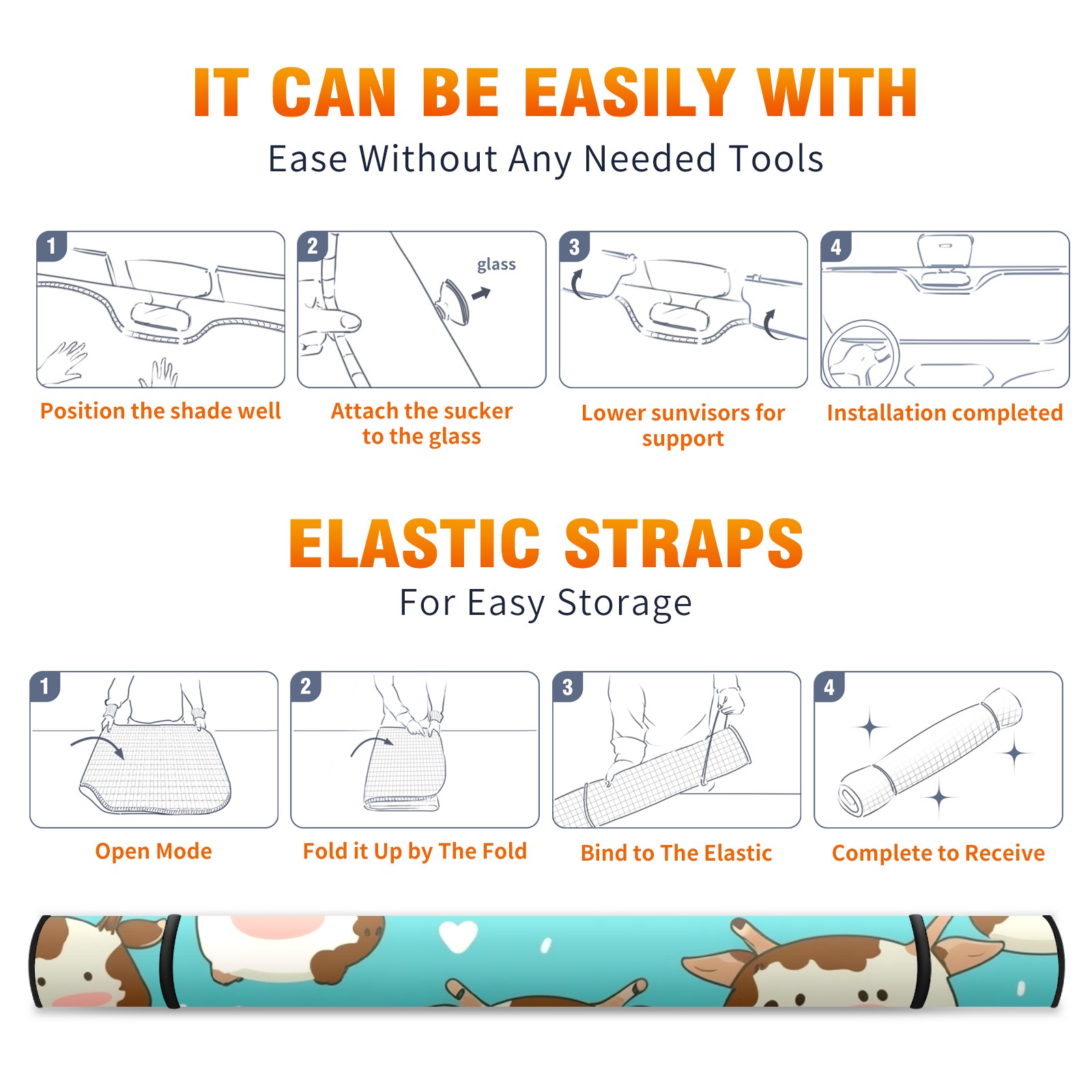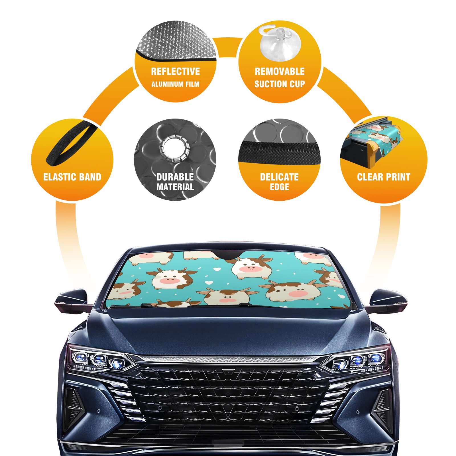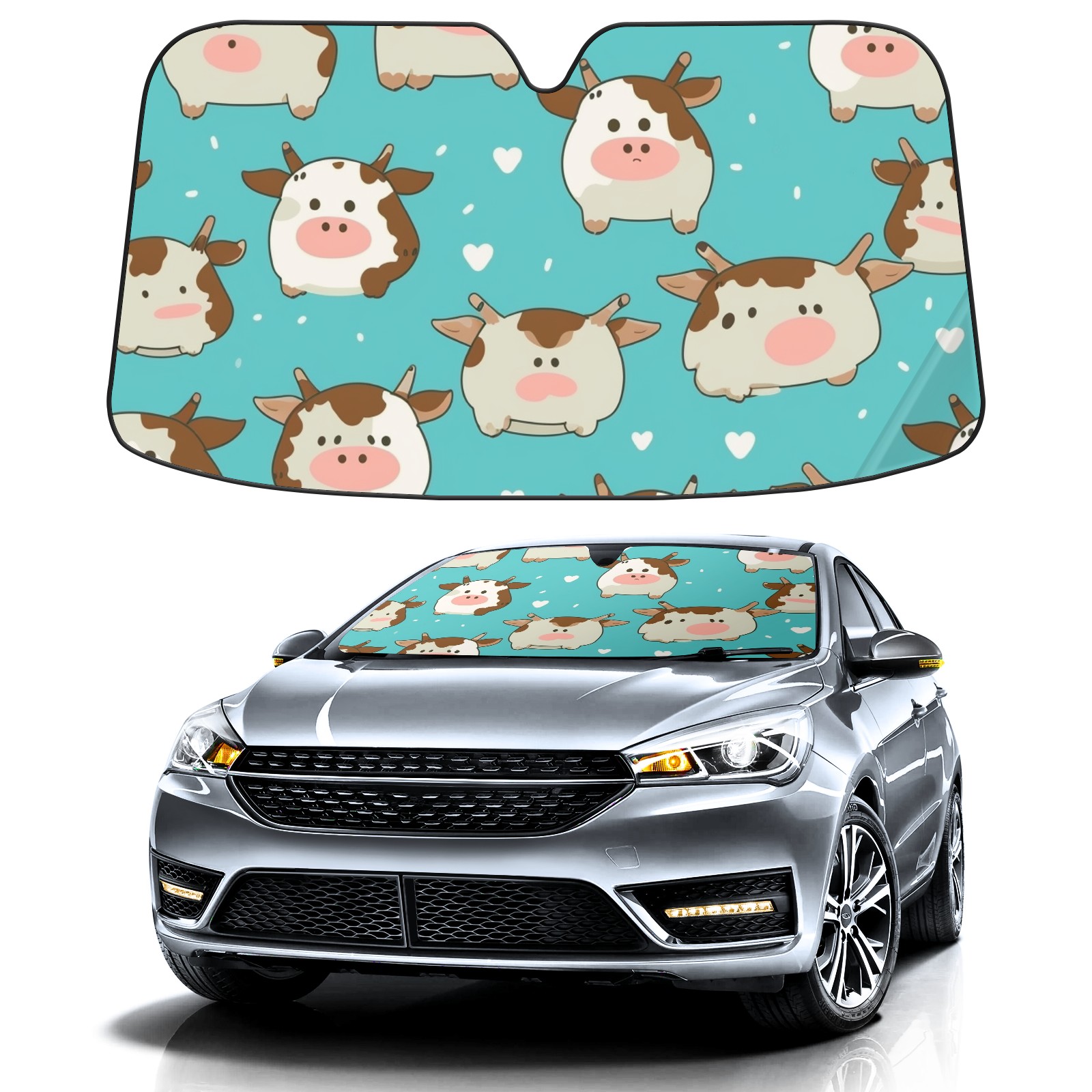 Car Windshield Sun Shade For Front Window Cow Foldable Vehicle Windshield Car Sun Visor Covers Automotive Window Protector Car Camping Privacy Sun Blocker