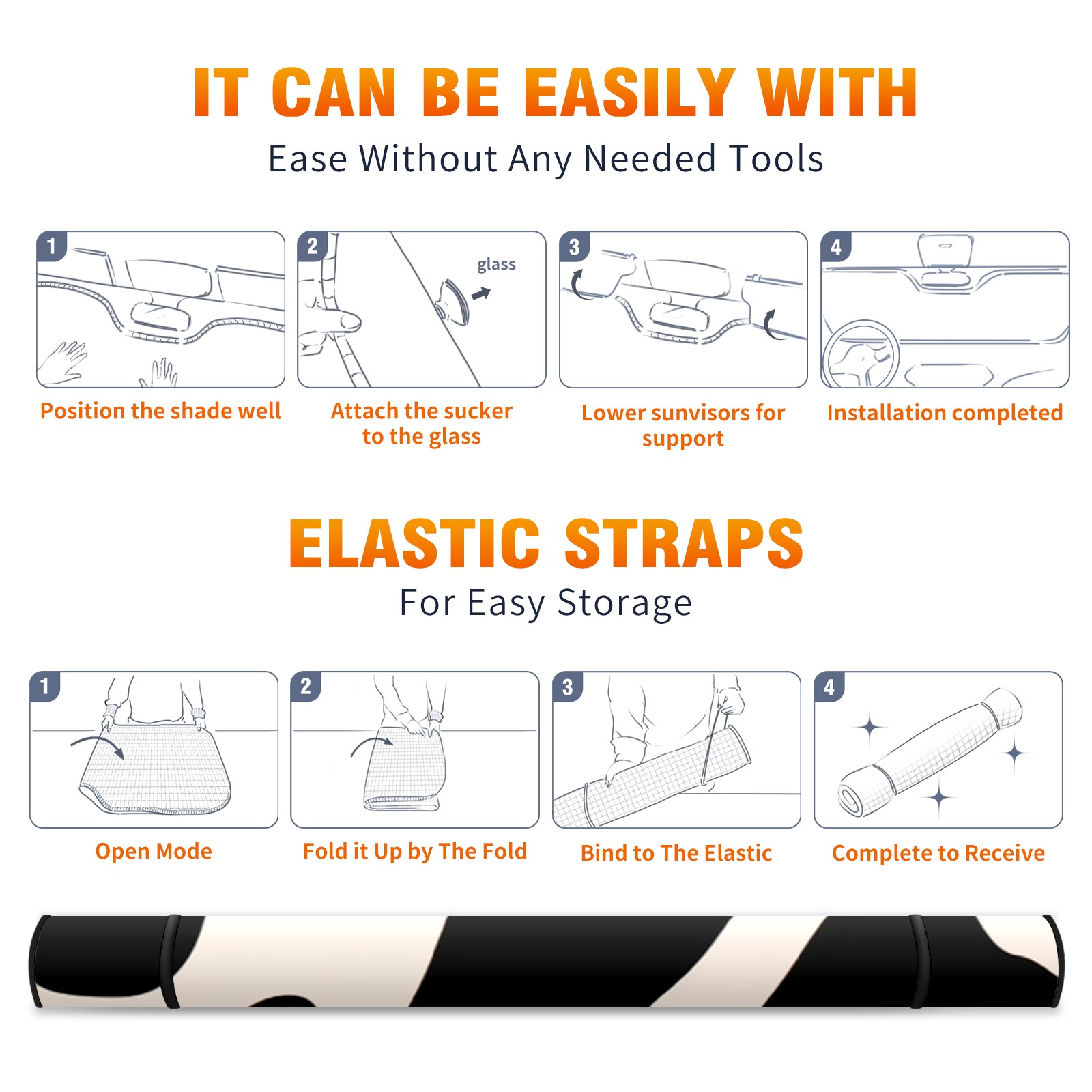 Car Windshield Sun Shade For Front Window Cow Pattern Foldable Vehicle Windshield Car Sun Visor Covers Automotive Window Protector Car Camping Privacy Sun Blocker