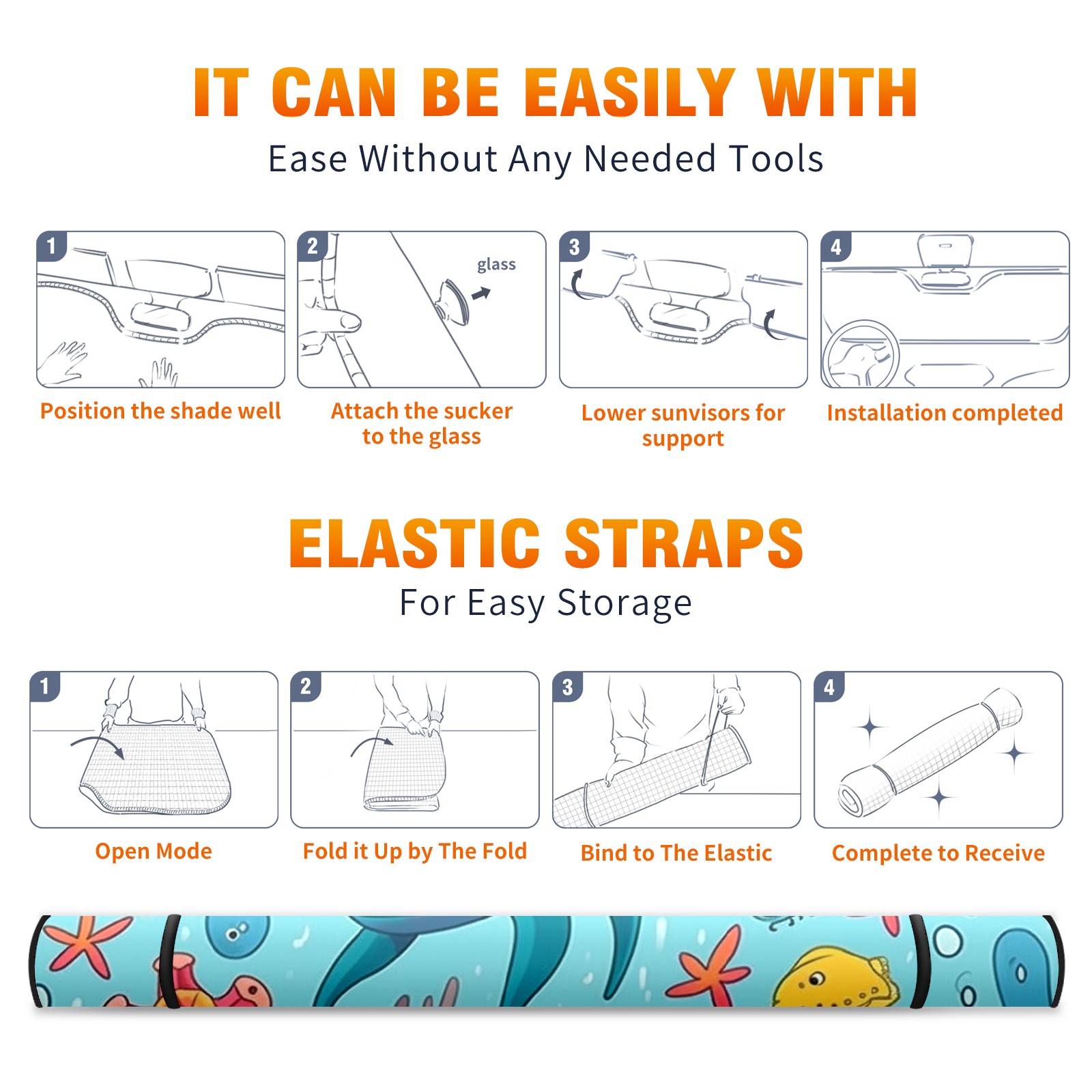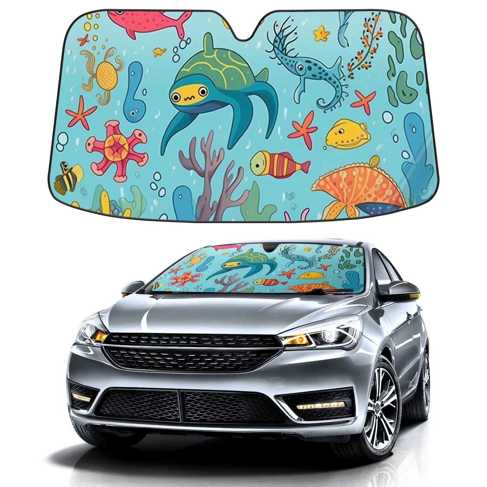 Car Windshield Sun Shade For Front Window Fish Foldable Vehicle Windshield Car Sun Visor Covers Automotive Window Protector Car Camping Privacy Sun Blocker