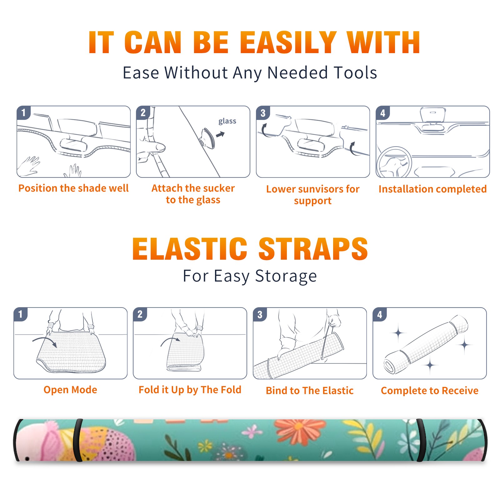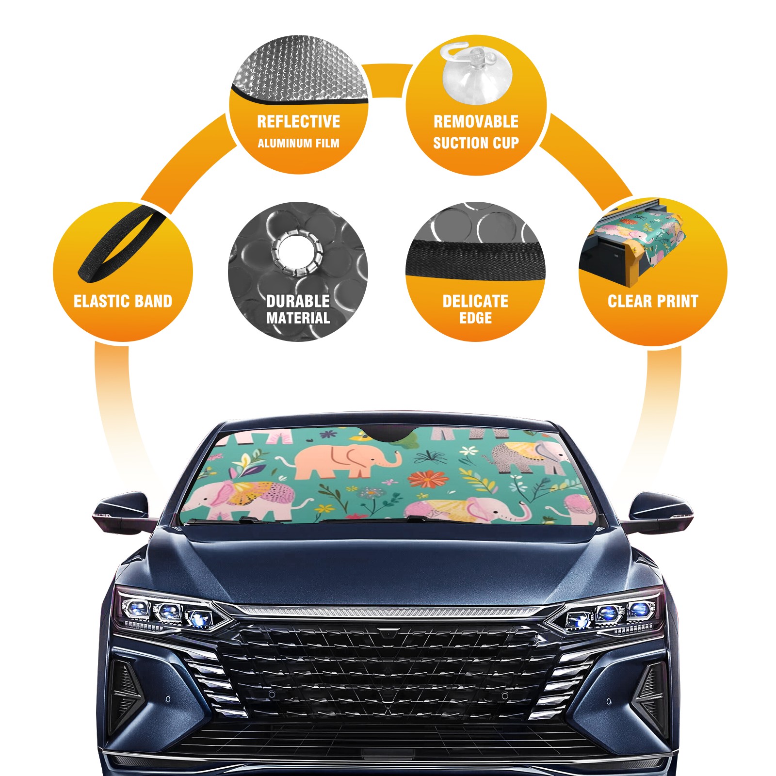 Car Windshield Sun Shade For Front Window Elephant Foldable Vehicle Windshield Car Sun Visor Covers Automotive Window Protector Car Camping Privacy Sun Blocker