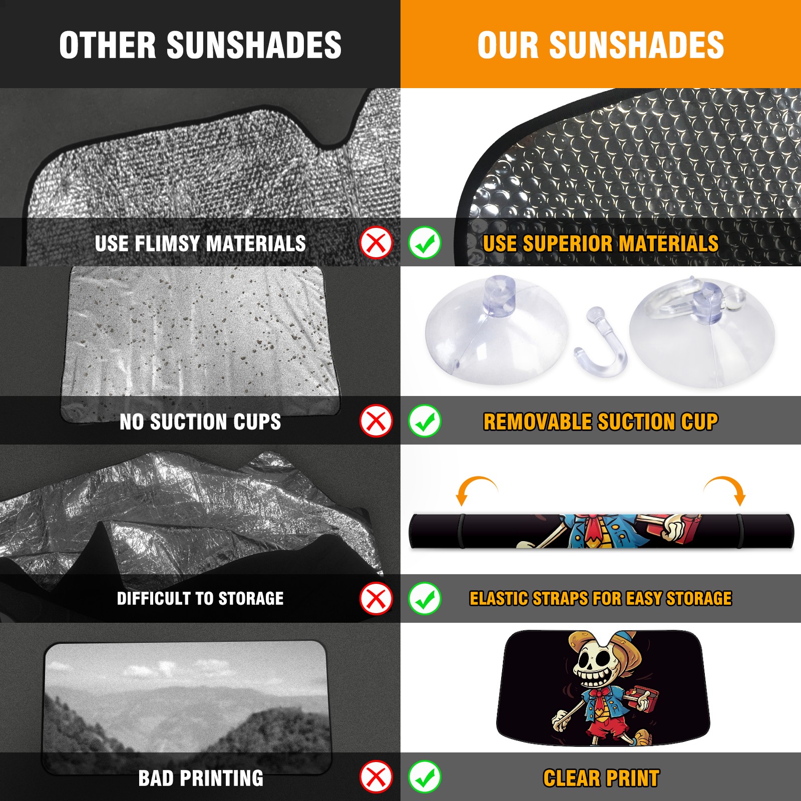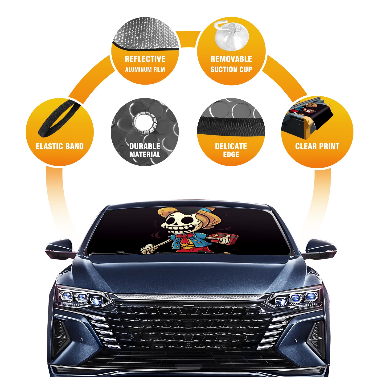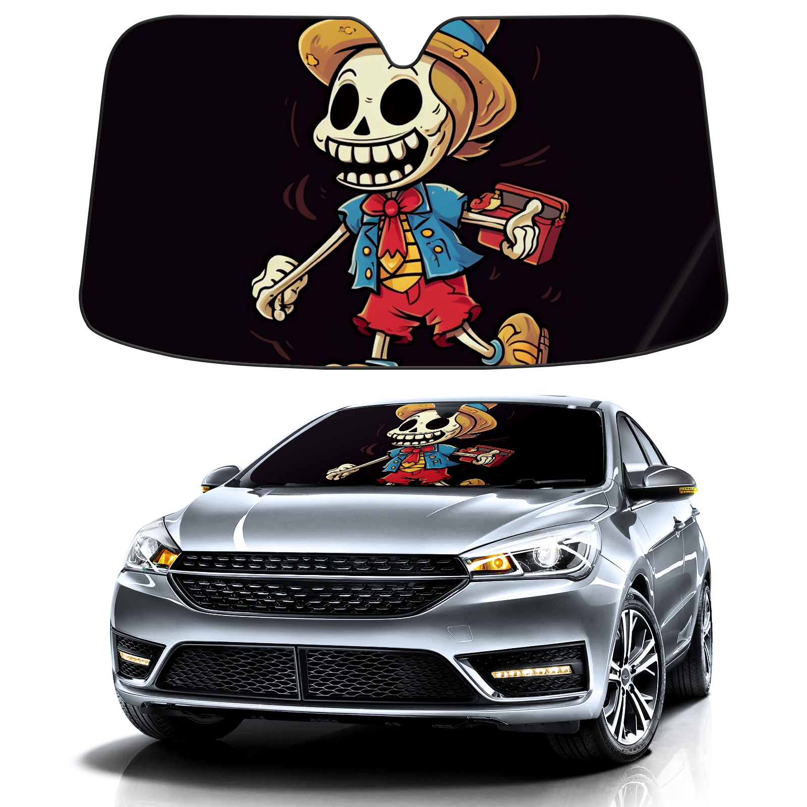 Car Windshield Sun Shade For Front Window Skull Head Foldable Vehicle Windshield Car Sun Visor Covers Automotive Window Protector Car Camping Privacy Sun Blocker
