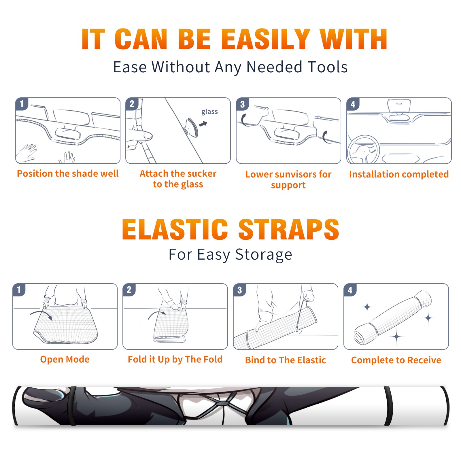 • Diameter /Size 63"L x 33.5"W Made from excellent materials which makes it sturdy and protects the car from the sun. Easy to use and pack. Makes the interior of the car cooler.You can easily stash the sunshade in the storage bag or store long term.It open and closes easy. Also the leather storage bag is durable and easy to put the umbrella back into.This windshield sunshade provides complete coverage and keeps your car interior cool under direct sun. It is easy to open and position under the windshield and around the rear-view mirror. Makes Your Car Easy To Identify, Perfect For Finding Your Car In Crowded Parking Lots And Garages.Great Choice: It Is A Great Gift For Dad, Boyfriend, Brother, Brother And Uncle, Friends, Classmates, Family And So On. Notice: Due To Difference Computer Monitors, The Color Maybe Slightly Different From Picture. As Different Measurement Methods, Measurement Data Will Float Within 2%.I Hope You Understand. If You Have Any Question About The Item Please Do Not Hesitate To Contact Us Immediately And We Will Give You A Satisfactory Reply Within 24 Hours.