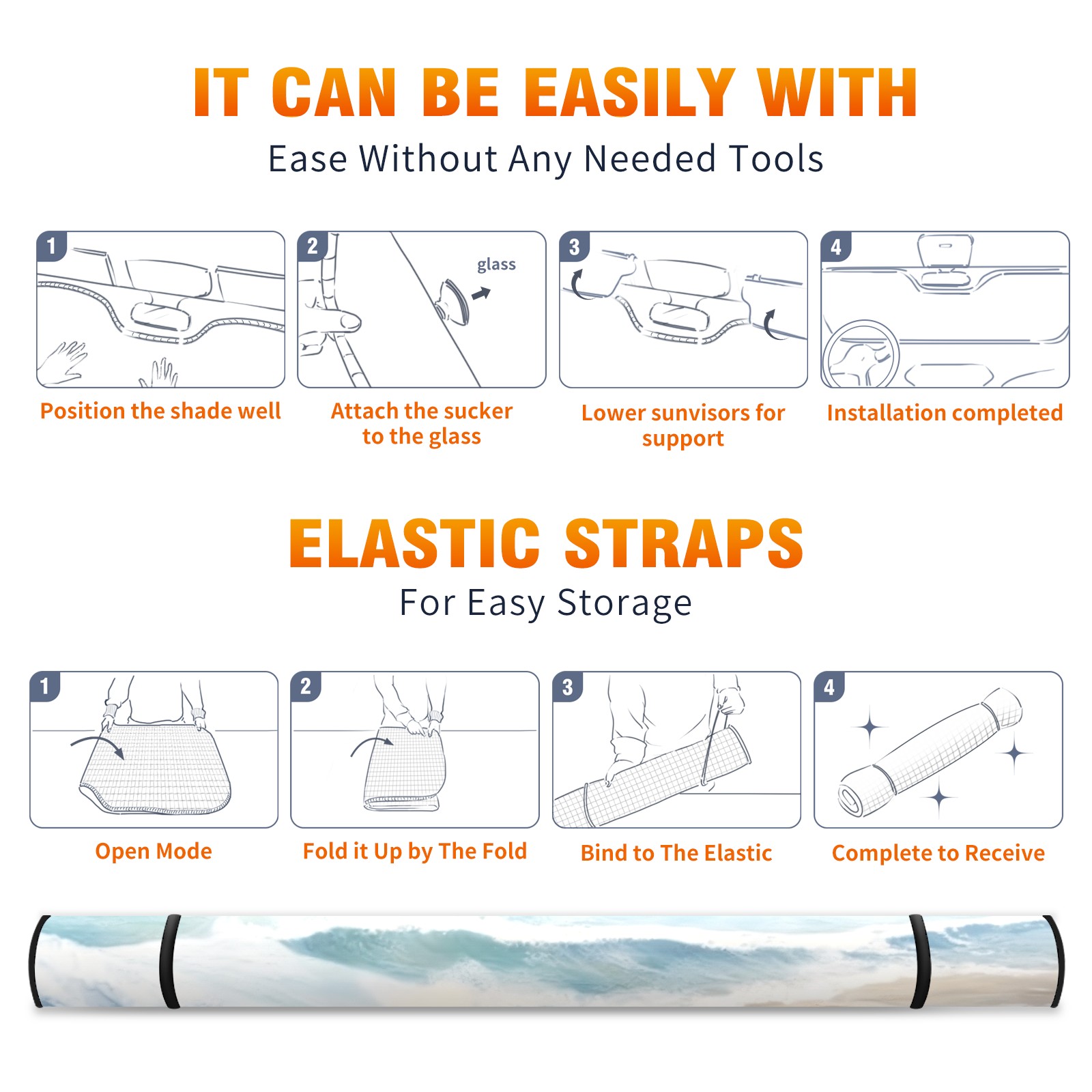 • Diameter /Size 63"L x 33.5"W Made from excellent materials which makes it sturdy and protects the car from the sun. Easy to use and pack. Makes the interior of the car cooler.You can easily stash the sunshade in the storage bag or store long term.It open and closes easy. Also the leather storage bag is durable and easy to put the umbrella back into.This windshield sunshade provides complete coverage and keeps your car interior cool under direct sun. It is easy to open and position under the windshield and around the rear-view mirror. Makes Your Car Easy To Identify, Perfect For Finding Your Car In Crowded Parking Lots And Garages.Great Choice: It Is A Great Gift For Dad, Boyfriend, Brother, Brother And Uncle, Friends, Classmates, Family And So On. Notice: Due To Difference Computer Monitors, The Color Maybe Slightly Different From Picture. As Different Measurement Methods, Measurement Data Will Float Within 2%.I Hope You Understand. If You Have Any Question About The Item Please Do Not Hesitate To Contact Us Immediately And We Will Give You A Satisfactory Reply Within 24 Hours.