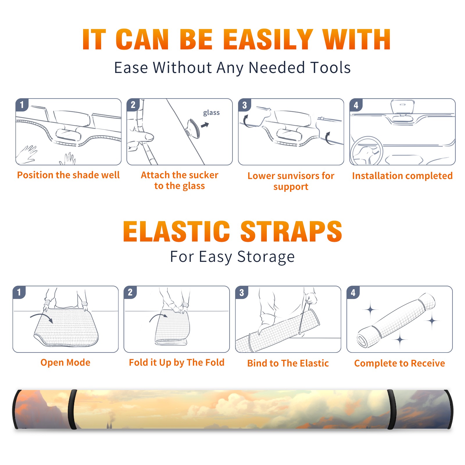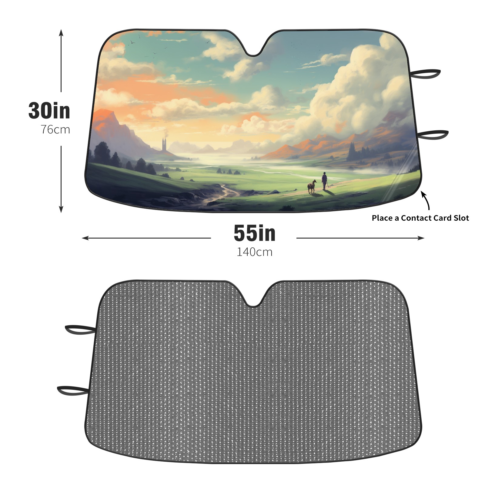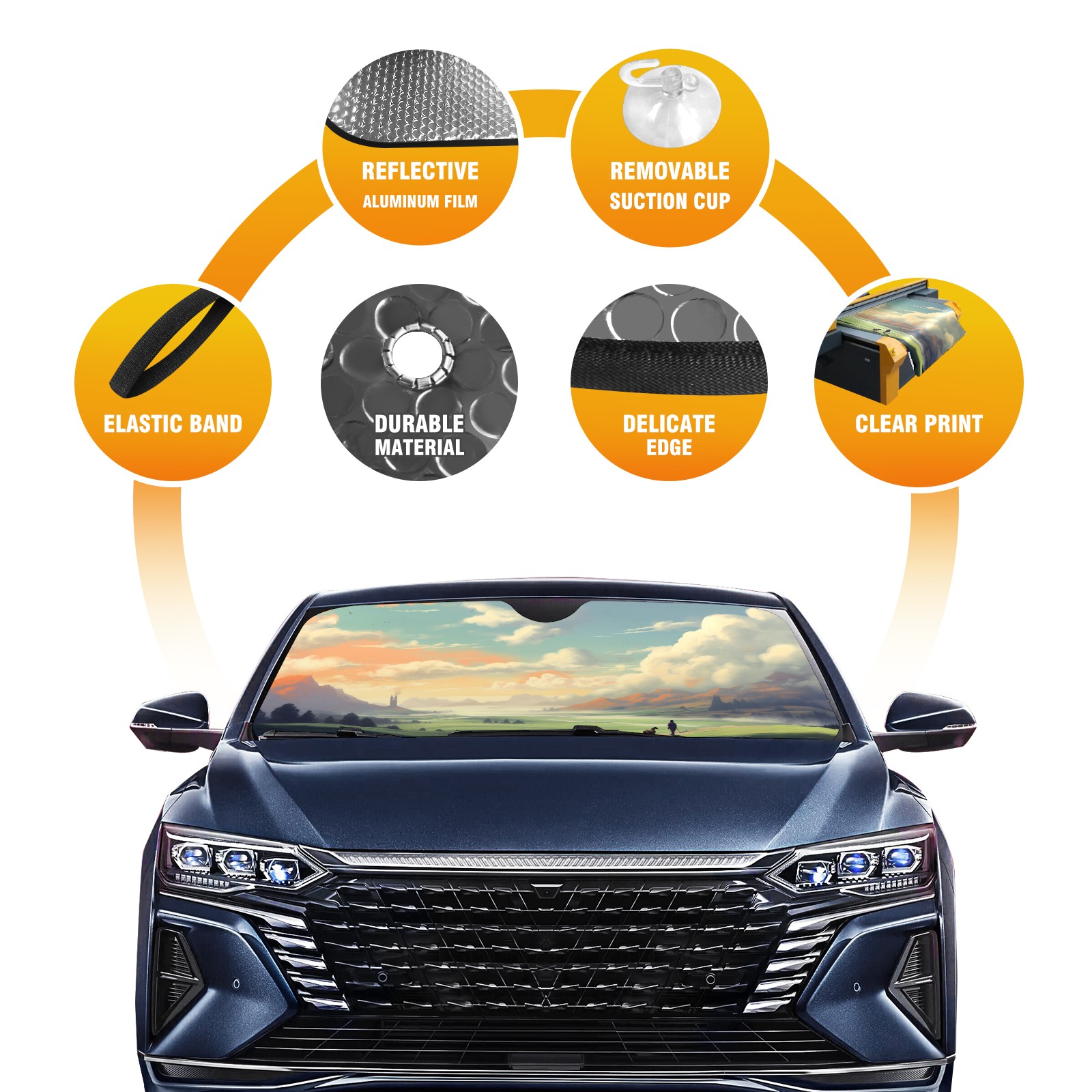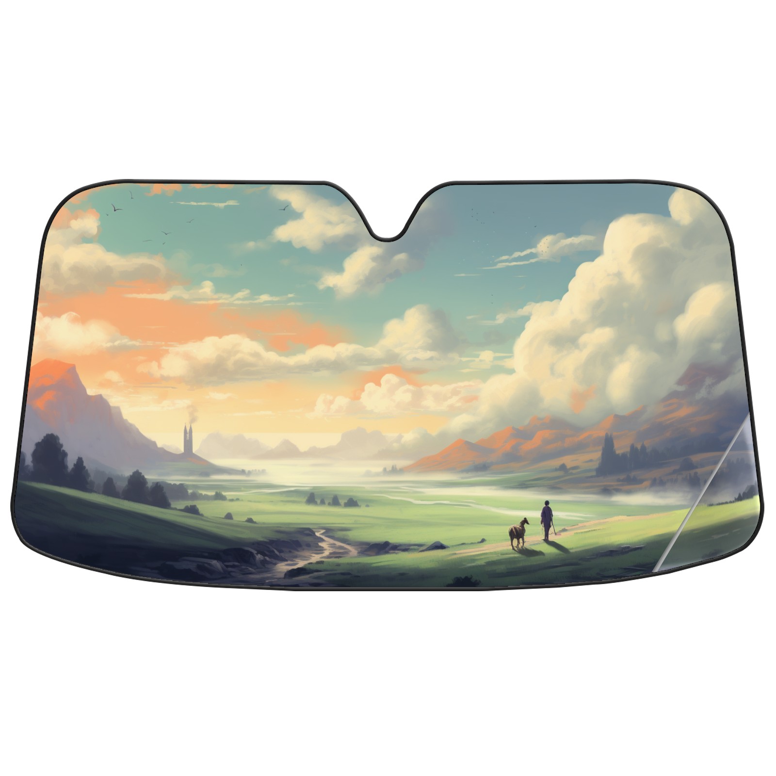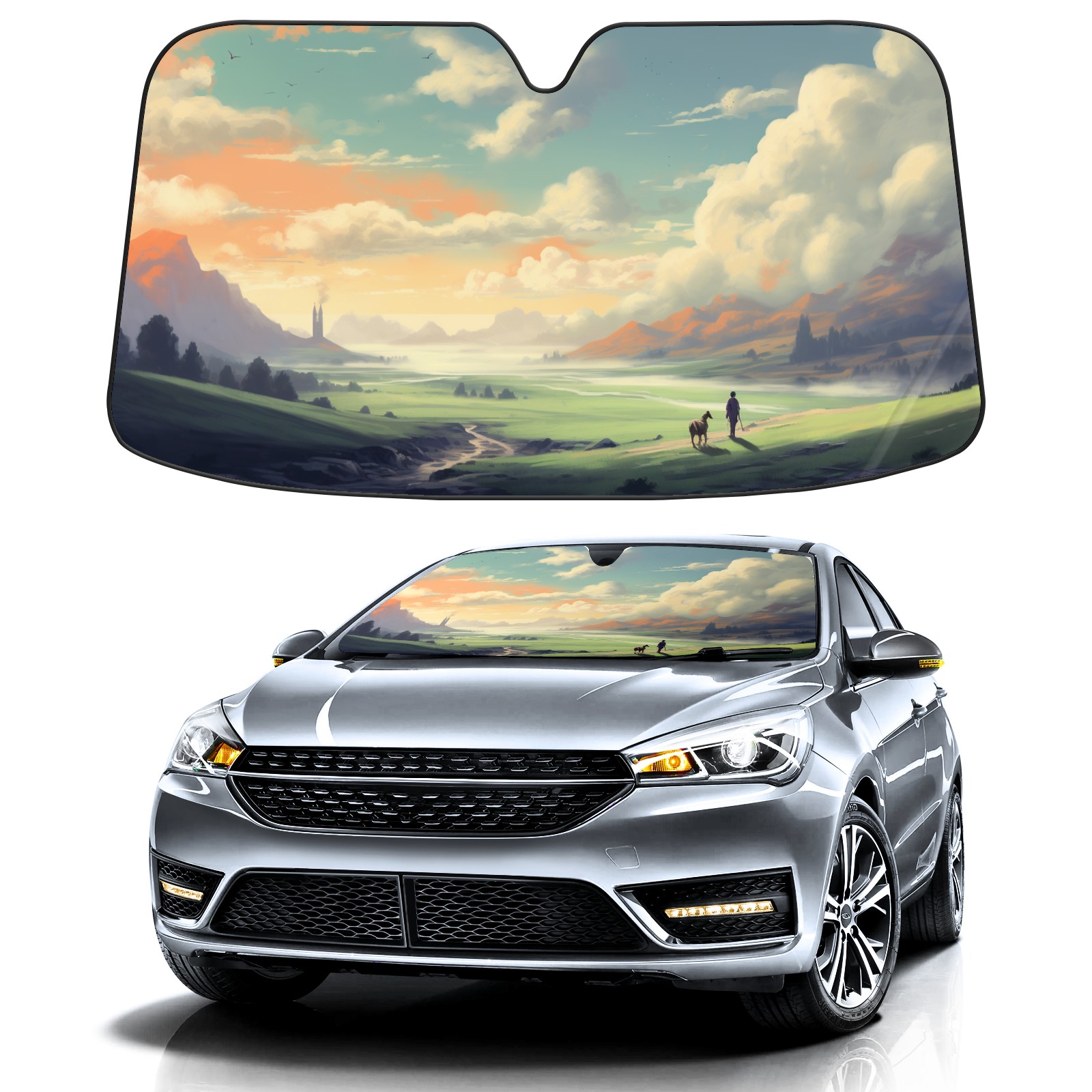Car Windshield Sun Shade For Front Window Painting Hills Foldable Vehicle Windshield Car Sun Visor Covers Automotive Window Protector Car Camping Privacy Sun Blocker