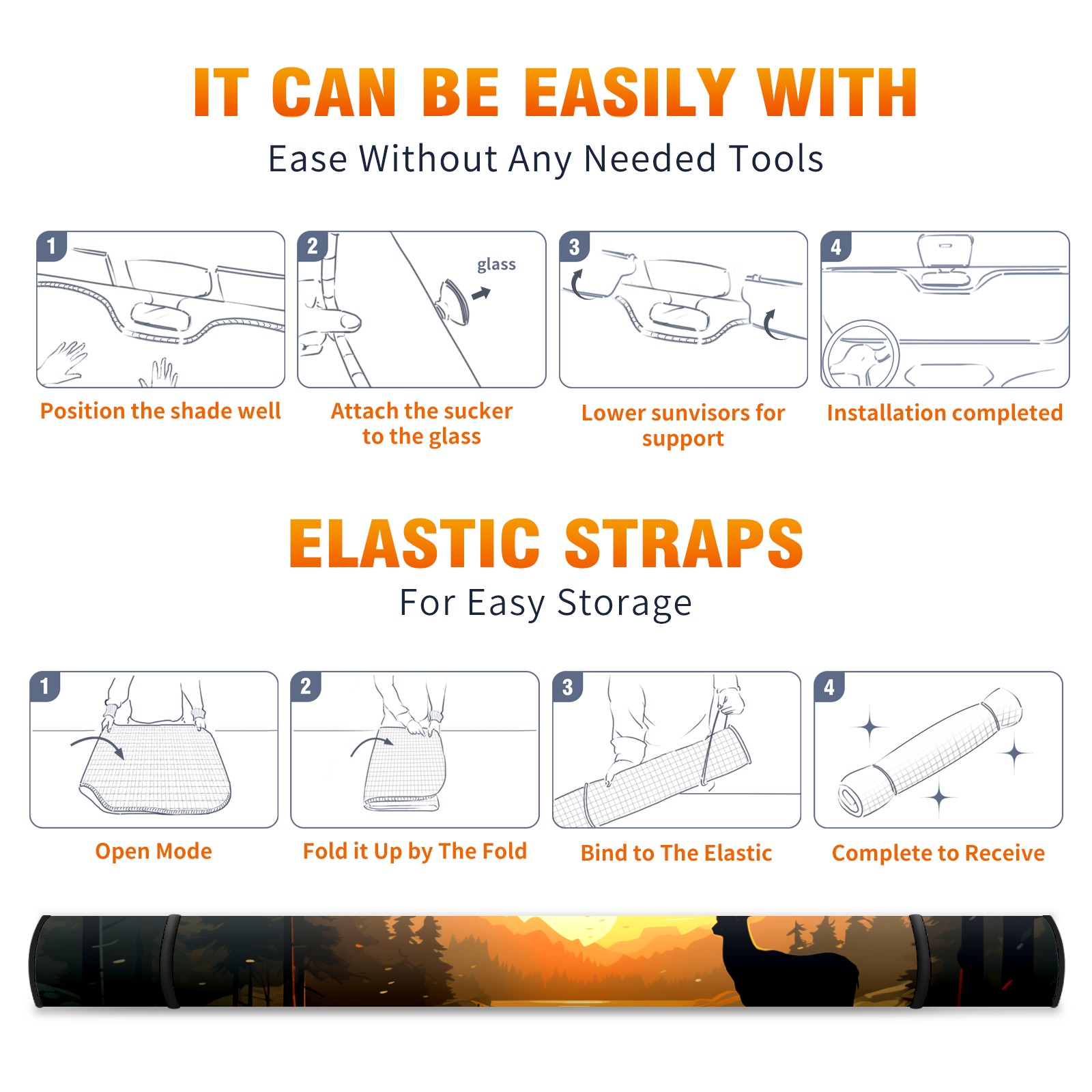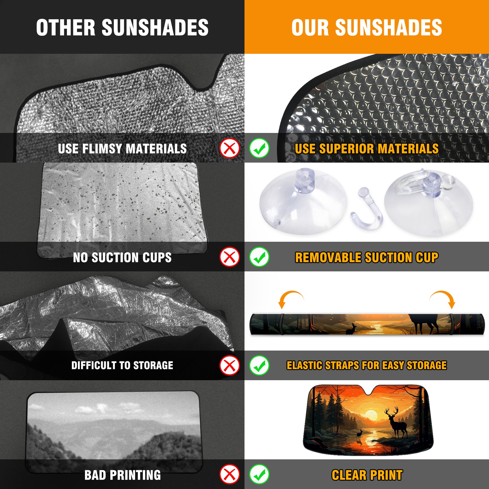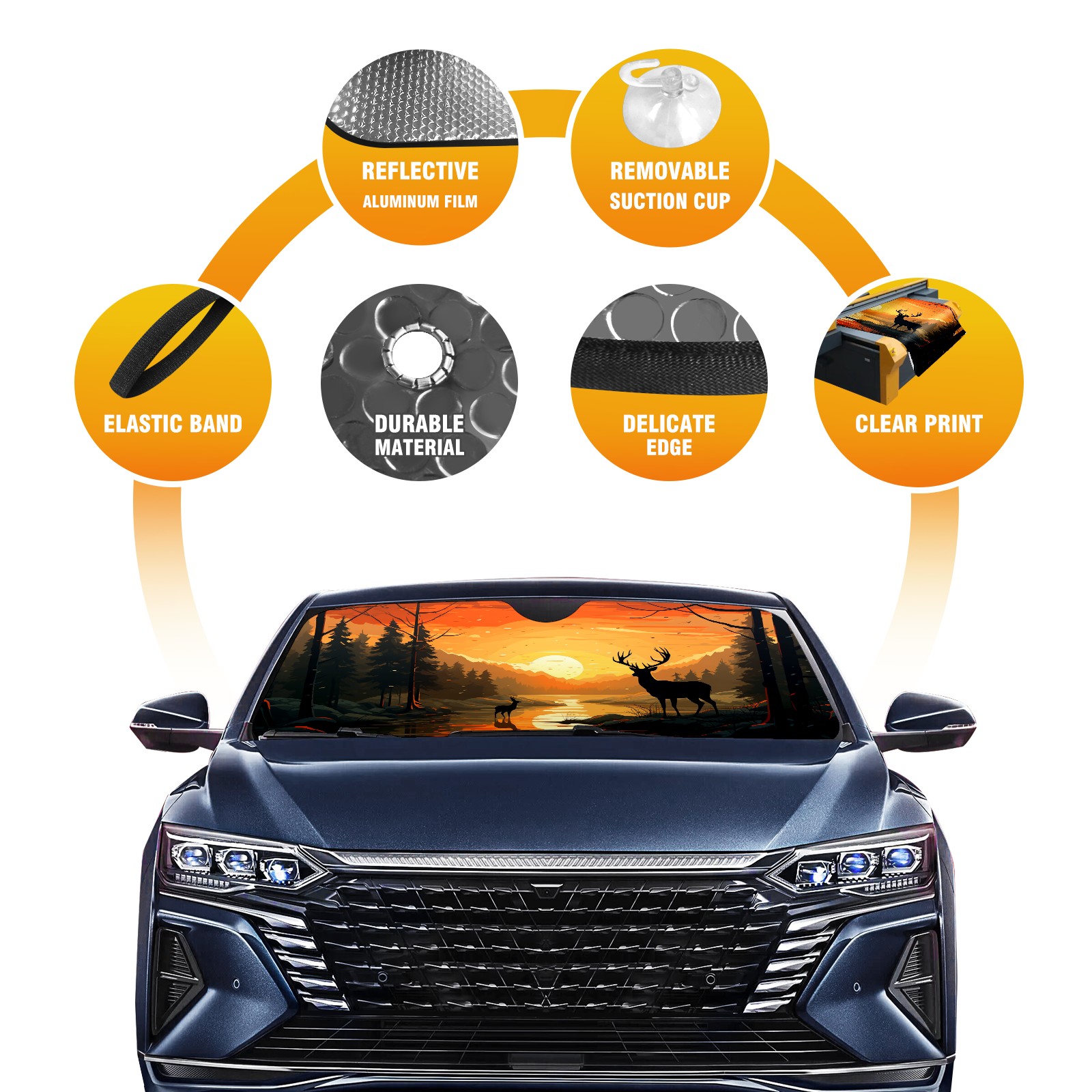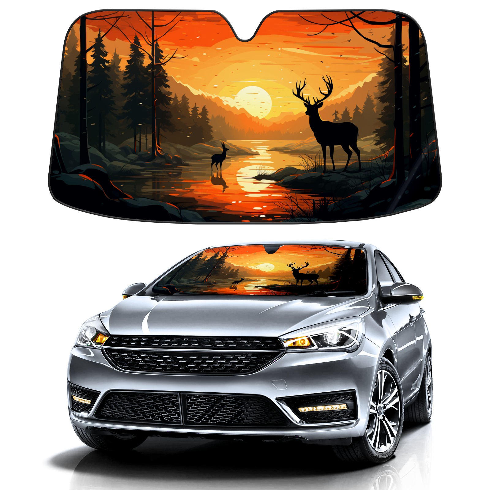 Car Windshield Sun Shade For Front Window Deers In Sunset Foldable Vehicle Windshield Car Sun Visor Covers Automotive Window Protector Car Camping Privacy Sun Blocker