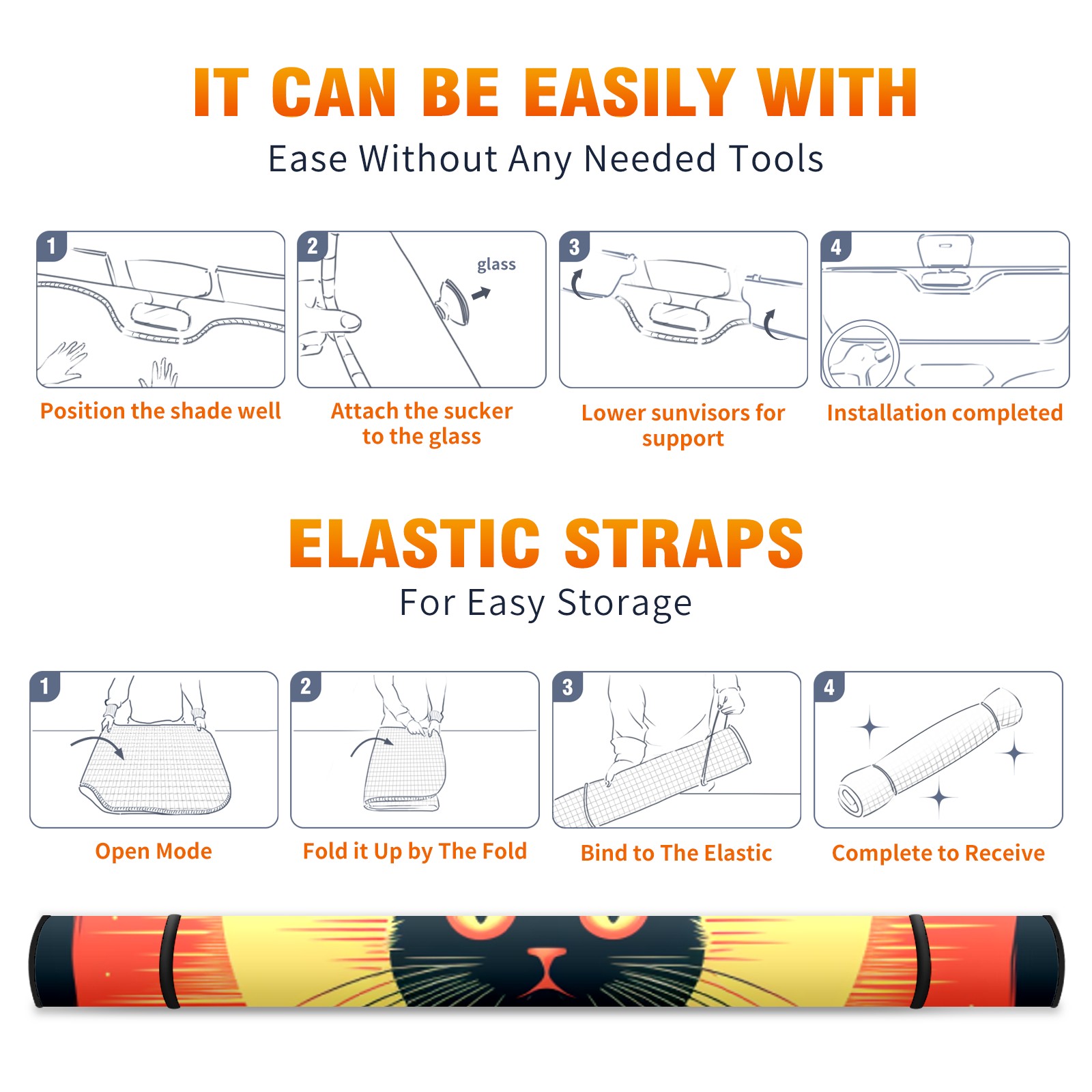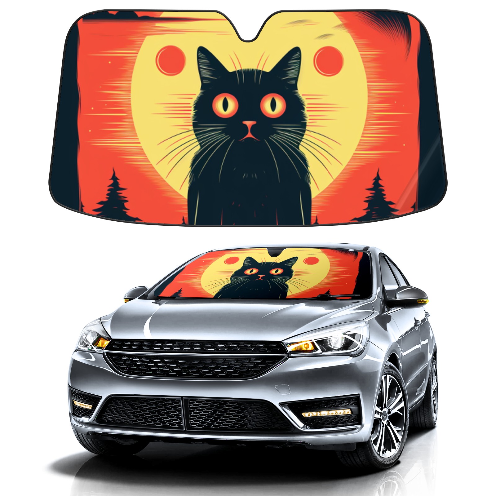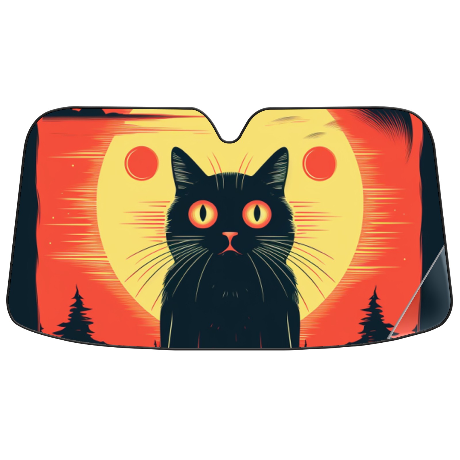Car Windshield Sun Shade For Front Window Retro Black Cat Foldable Vehicle Windshield Car Sun Visor Covers Automotive Window Protector Car Camping Privacy Sun Blocker