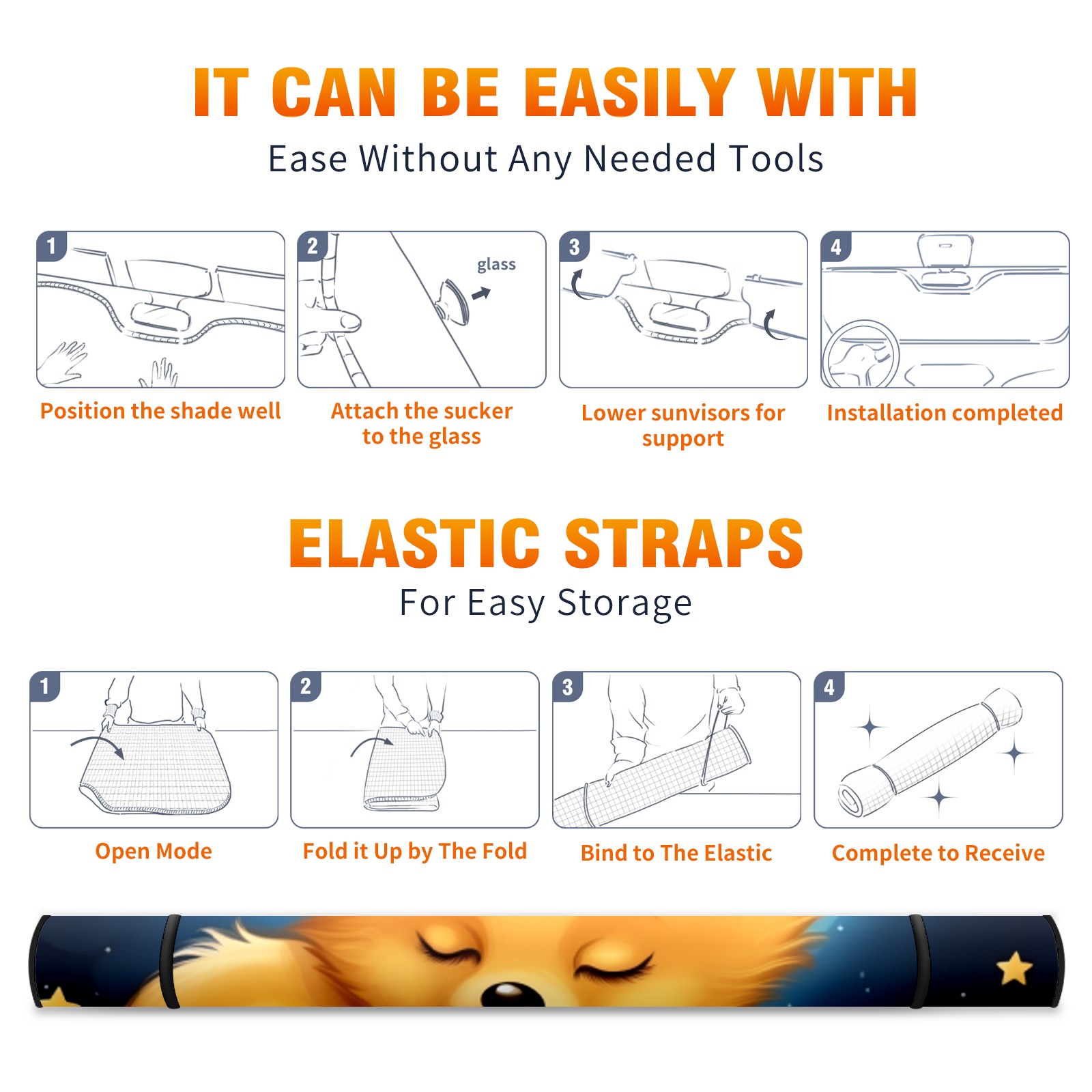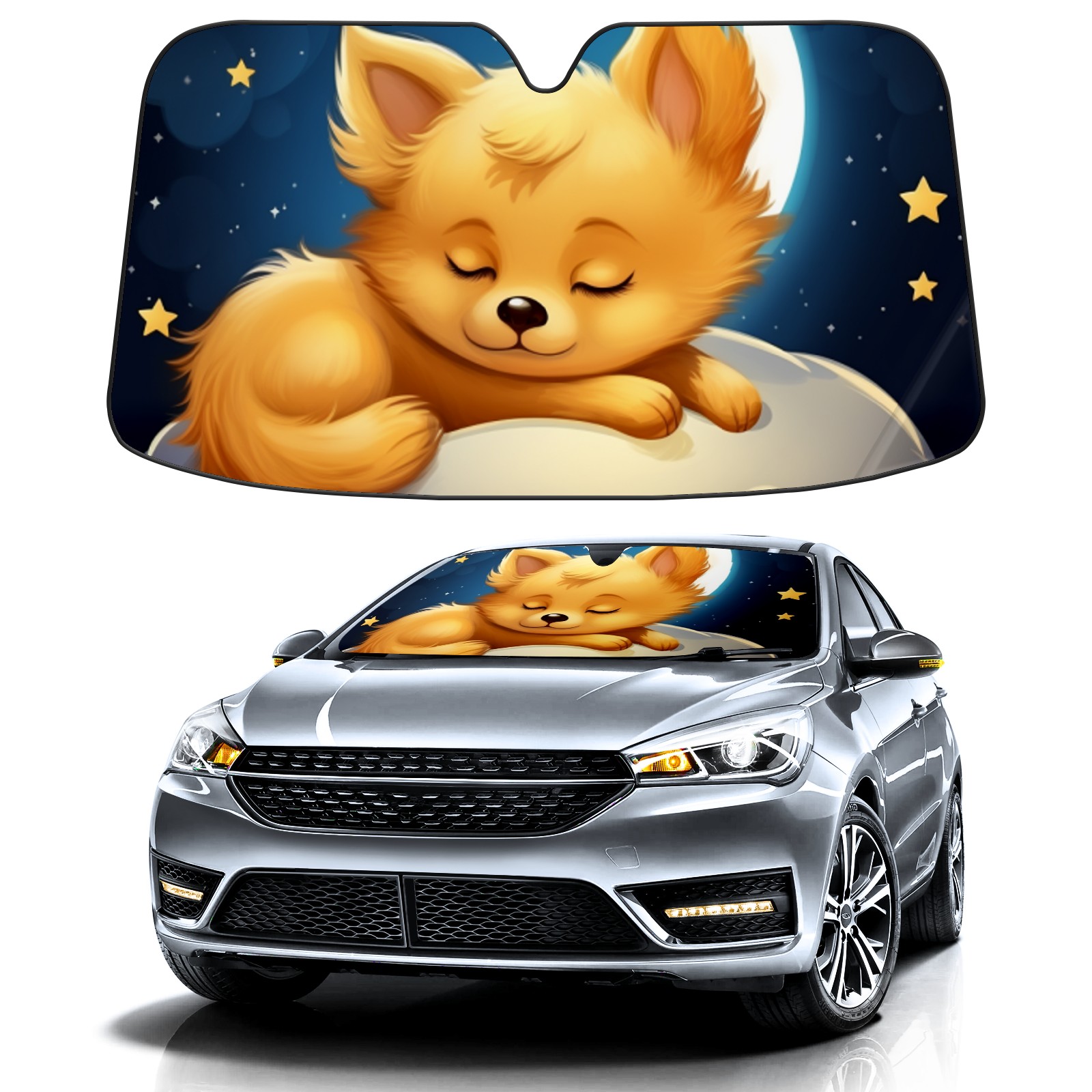 Car Windshield Sun Shade For Front Window Cute Puppy Foldable Vehicle Windshield Car Sun Visor Covers Automotive Window Protector Car Camping Privacy Sun Blocker