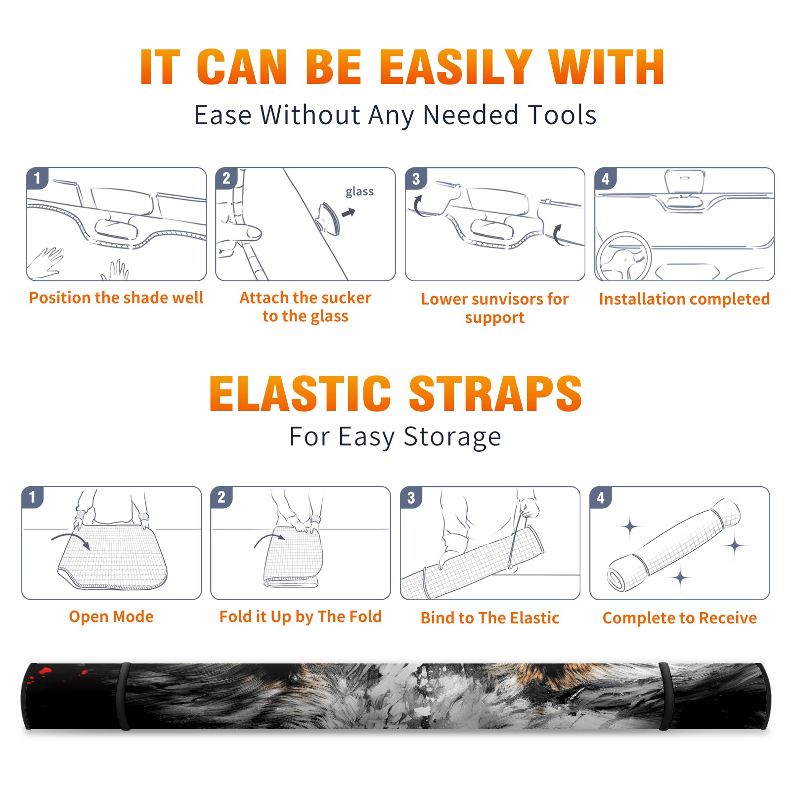 Car Windshield Sun Shade For Front Window Tiger Foldable Vehicle Windshield Car Sun Visor Covers Automotive Window Protector Car Camping Privacy Sun Blocker