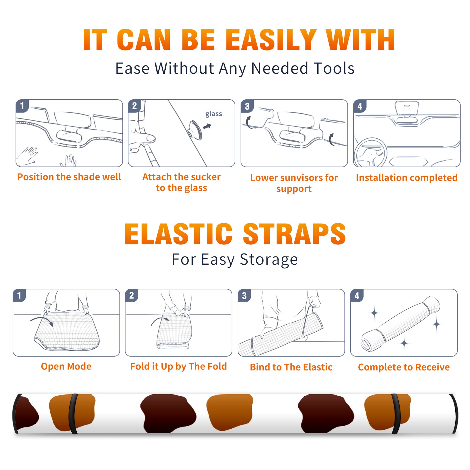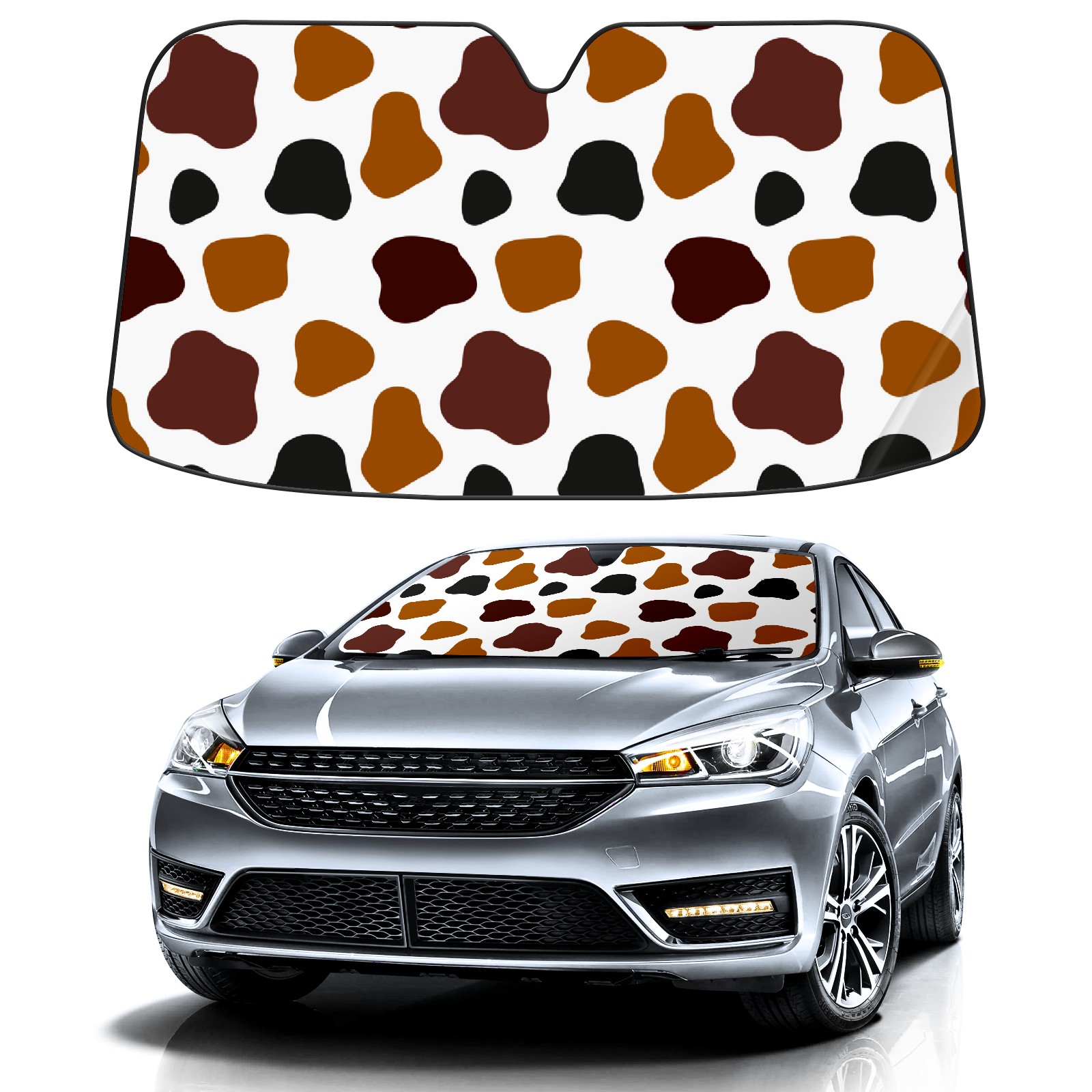 Car Windshield Sun Shade For Front Window Brown Black Cow Print Foldable Vehicle Windshield Car Sun Visor Covers Automotive Window Protector Car Camping Privacy Sun Blocker