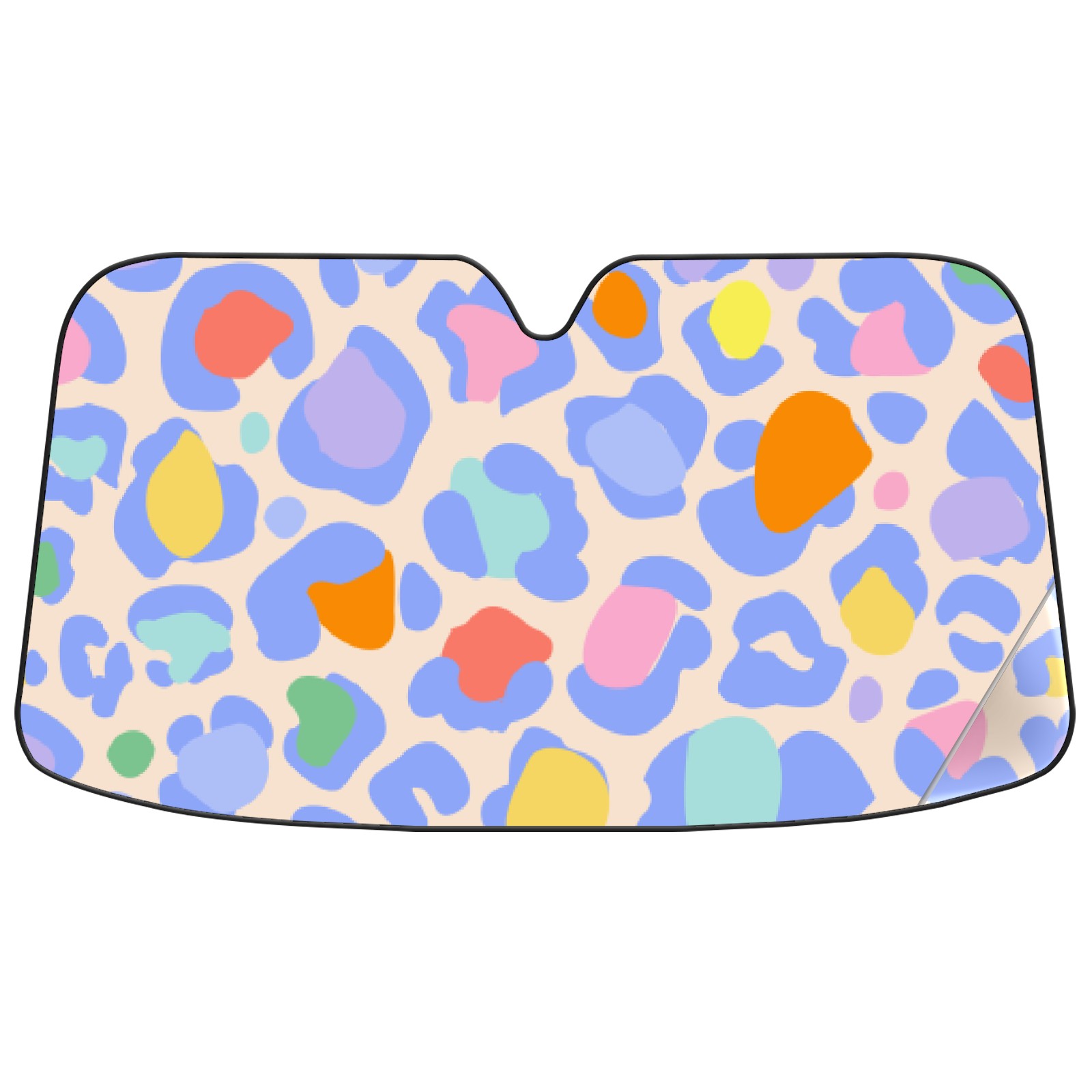 Car Windshield Sun Shade For Front Window Rainbow Lepoard Print Foldable Vehicle Windshield Car Sun Visor Covers Automotive Window Protector Car Camping Privacy Sun Blocker