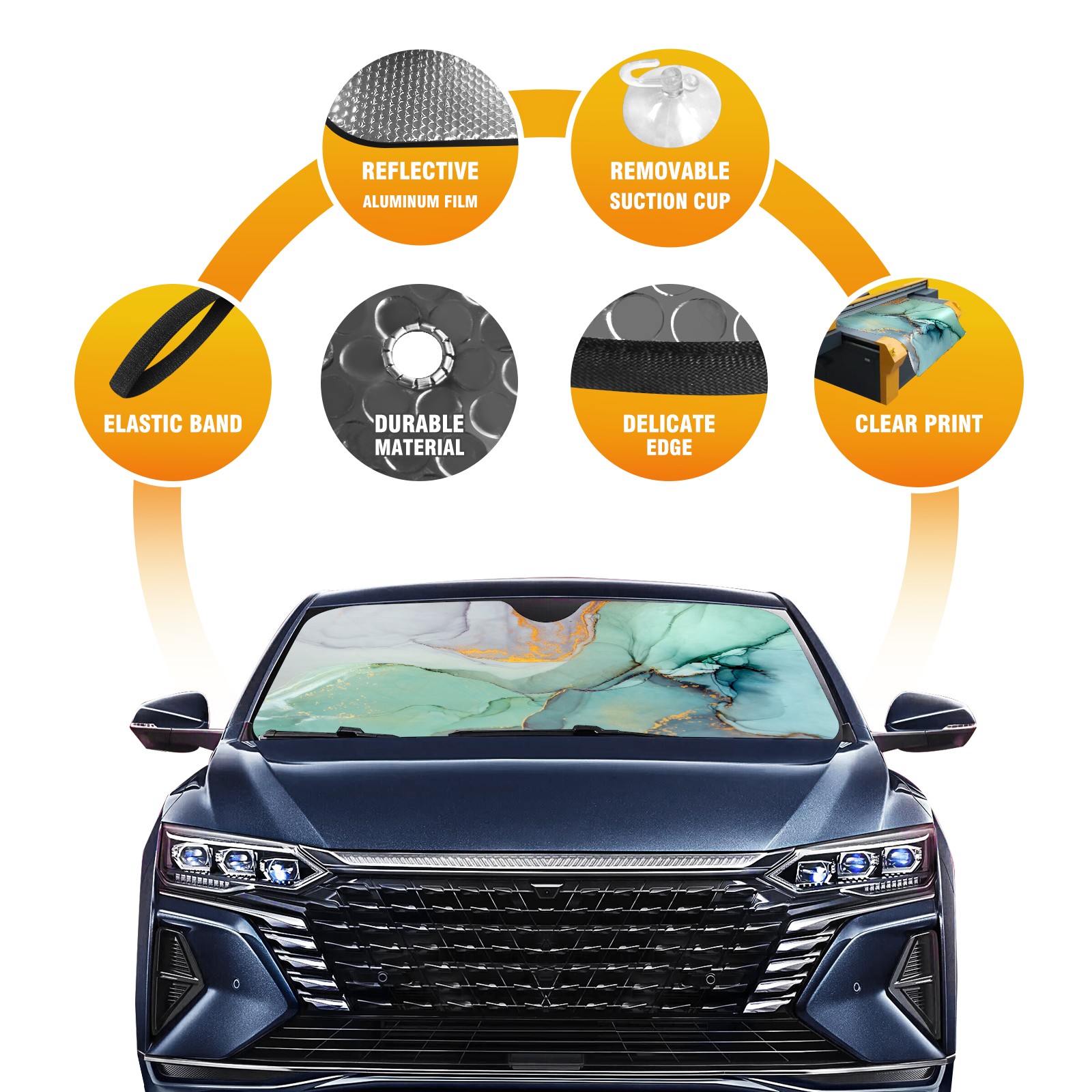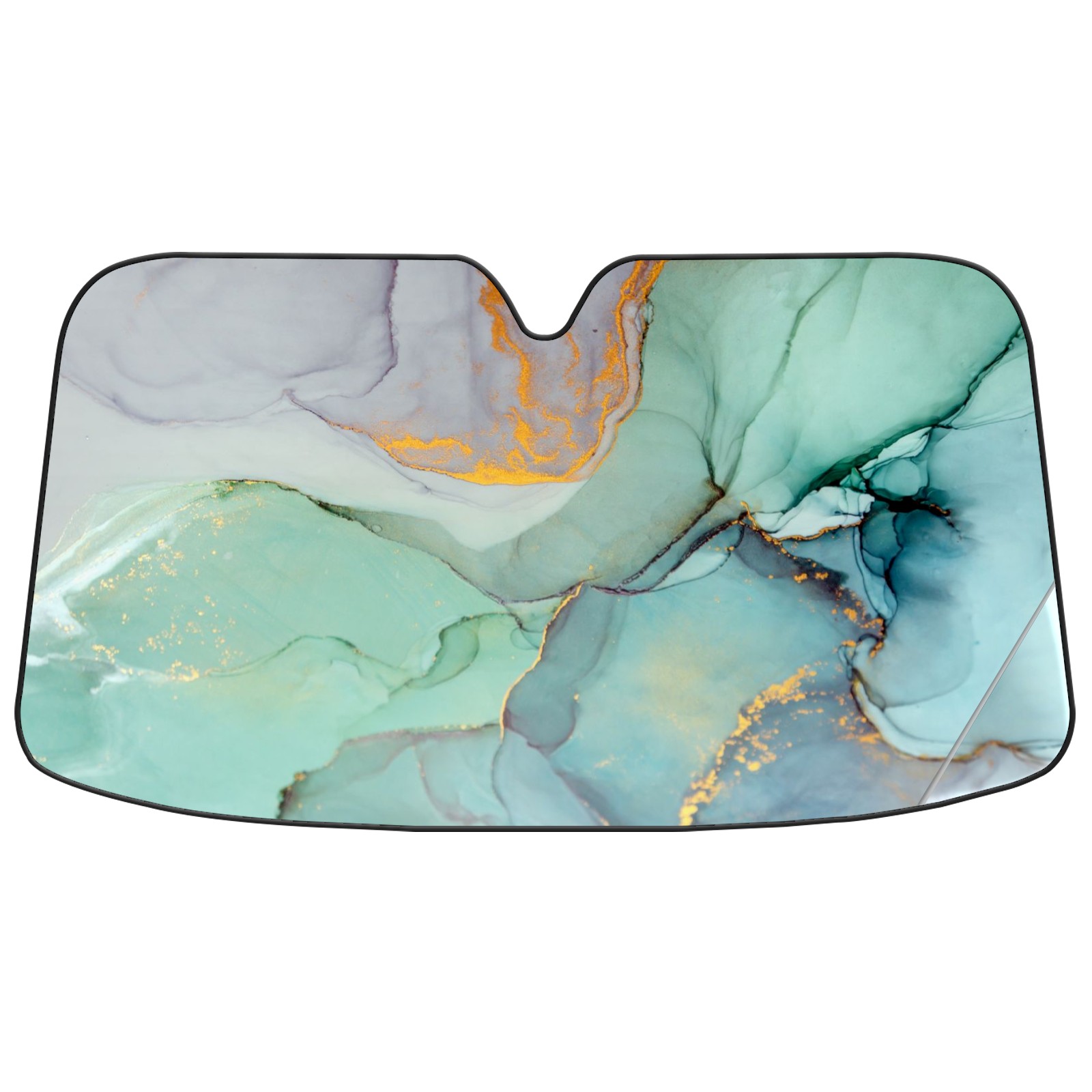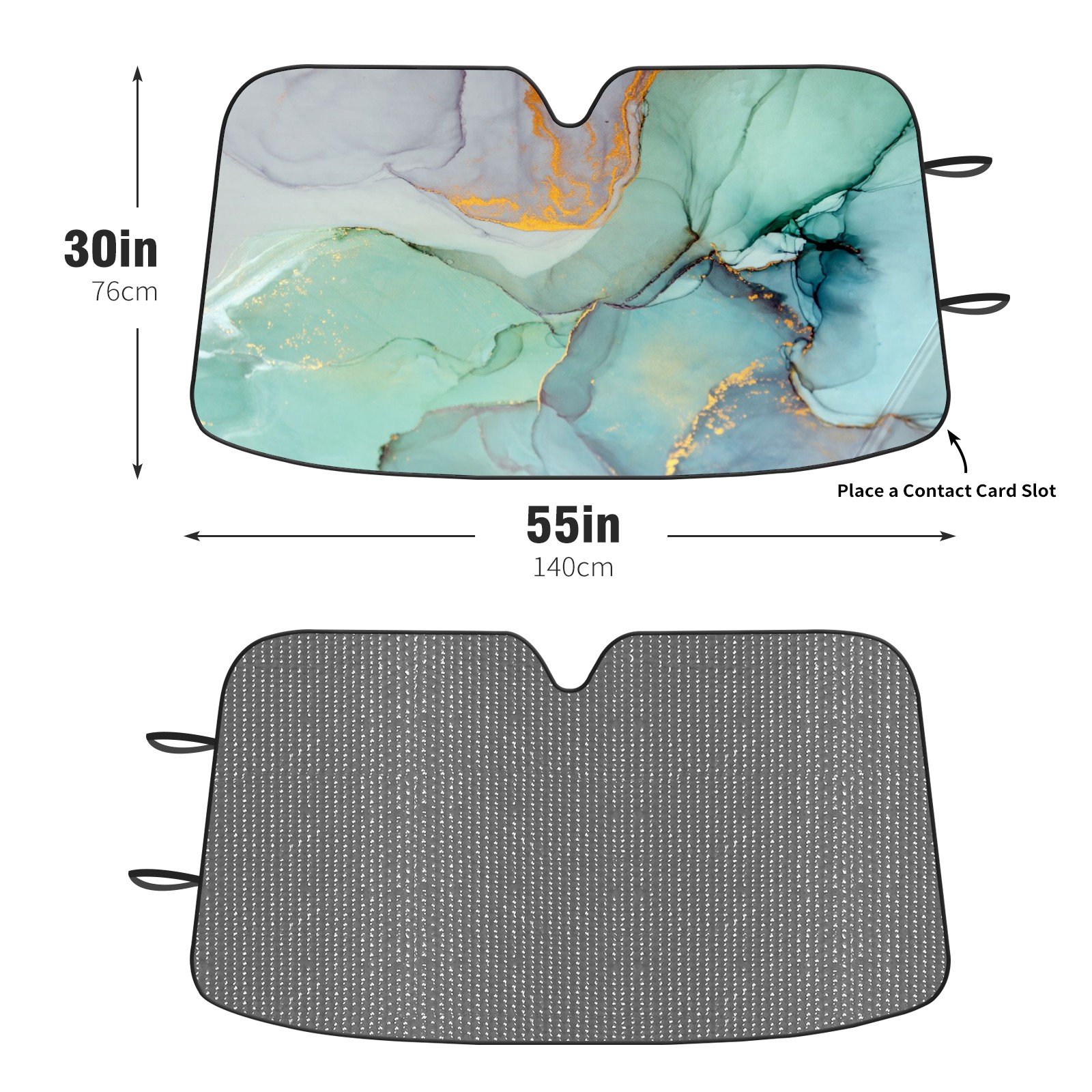 Car Windshield Sun Shade For Front Window Abstract Green Marble Foldable Vehicle Windshield Car Sun Visor Covers Automotive Window Protector Car Camping Privacy Sun Blocker