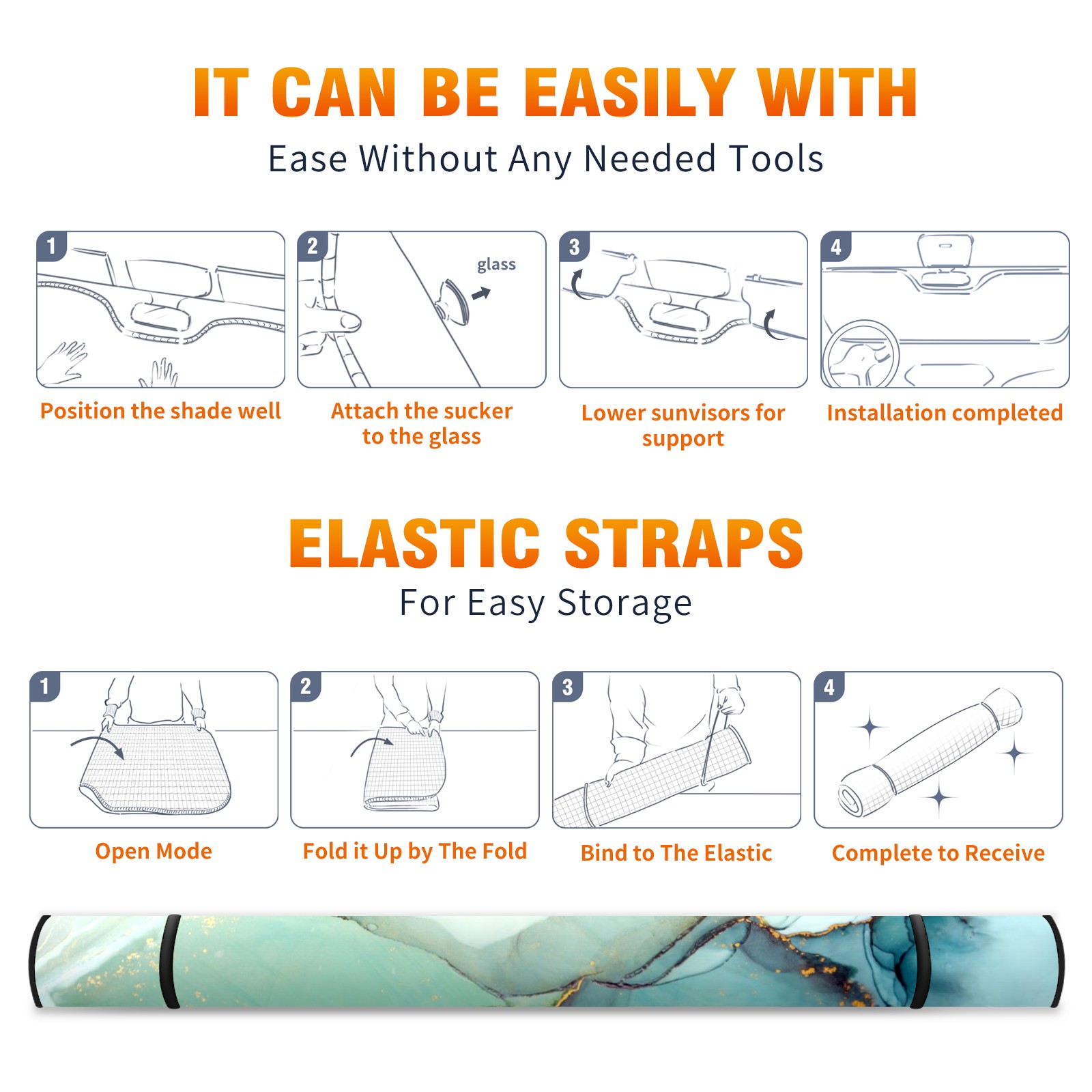 • Diameter /Size 63"L x 33.5"W Made from excellent materials which makes it sturdy and protects the car from the sun. Easy to use and pack. Makes the interior of the car cooler.You can easily stash the sunshade in the storage bag or store long term.It open and closes easy. Also the leather storage bag is durable and easy to put the umbrella back into.This windshield sunshade provides complete coverage and keeps your car interior cool under direct sun. It is easy to open and position under the windshield and around the rear-view mirror. Makes Your Car Easy To Identify, Perfect For Finding Your Car In Crowded Parking Lots And Garages.Great Choice: It Is A Great Gift For Dad, Boyfriend, Brother, Brother And Uncle, Friends, Classmates, Family And So On. Notice: Due To Difference Computer Monitors, The Color Maybe Slightly Different From Picture. As Different Measurement Methods, Measurement Data Will Float Within 2%.I Hope You Understand. If You Have Any Question About The Item Please Do Not Hesitate To Contact Us Immediately And We Will Give You A Satisfactory Reply Within 24 Hours.