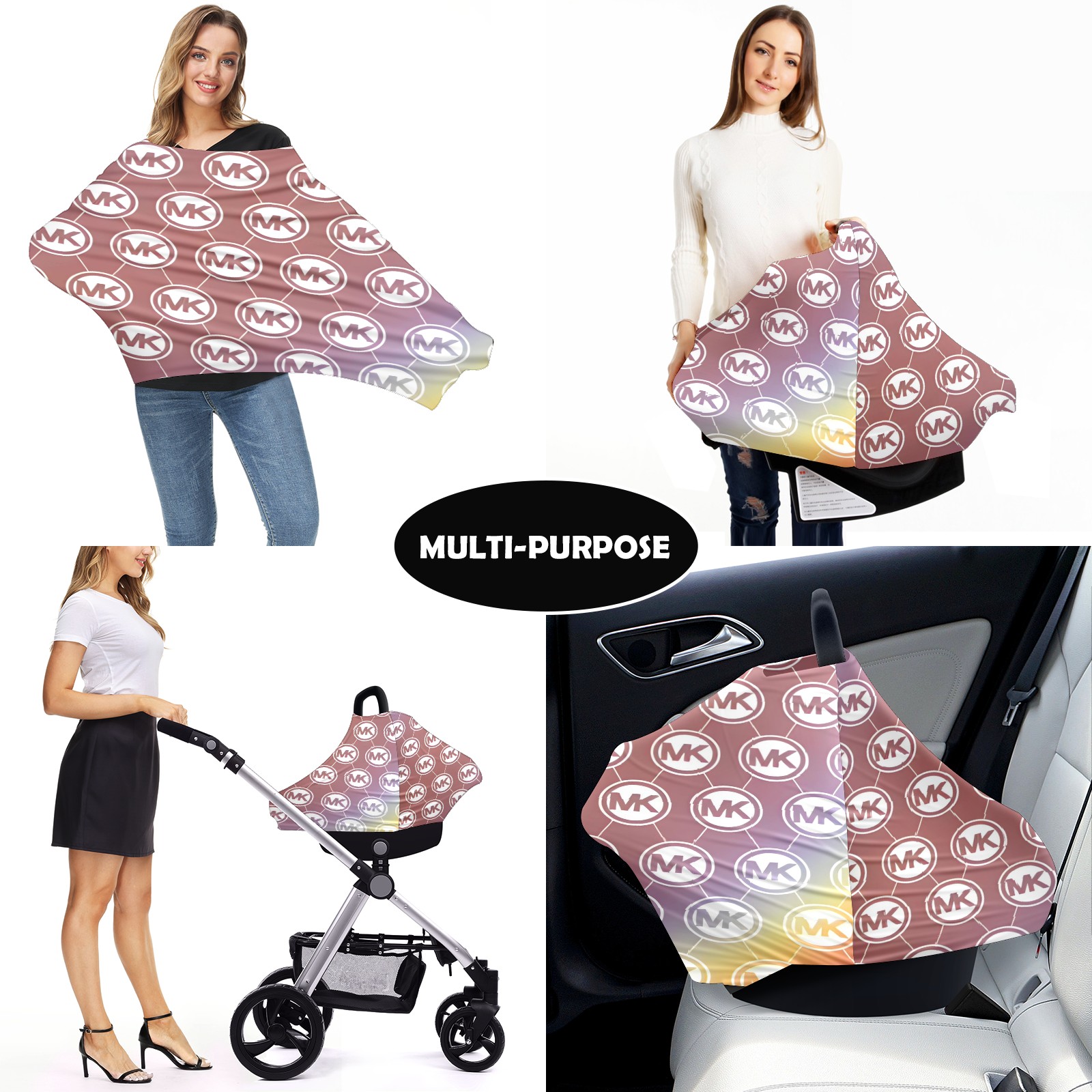 Baby Car Seat Stroller Covers Custom Name Exported Nursing Cover Breastfeeding Scarf Soft Breathable Stretchy Coverage Carseat Canopy Cover for Boys and Girls Multi Use