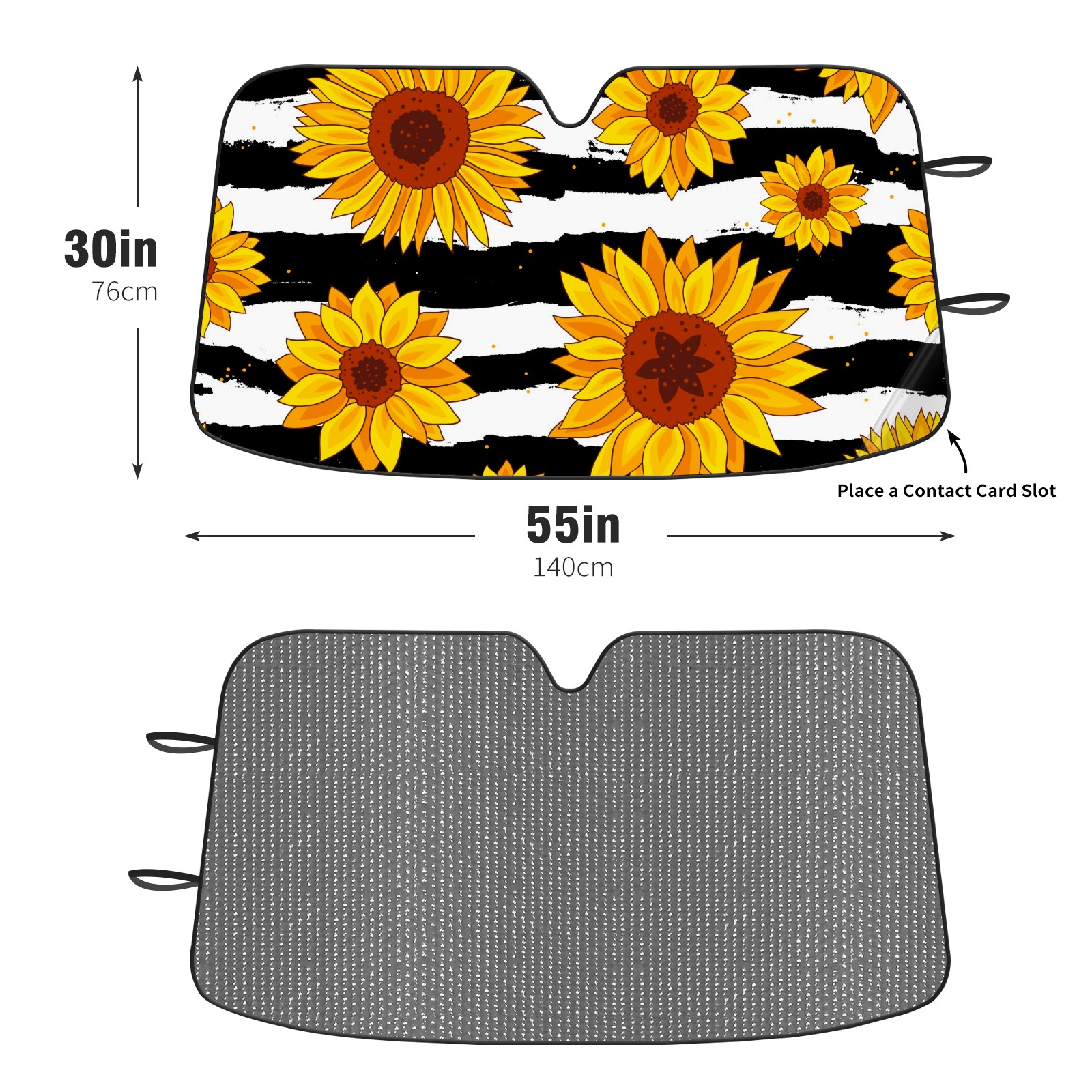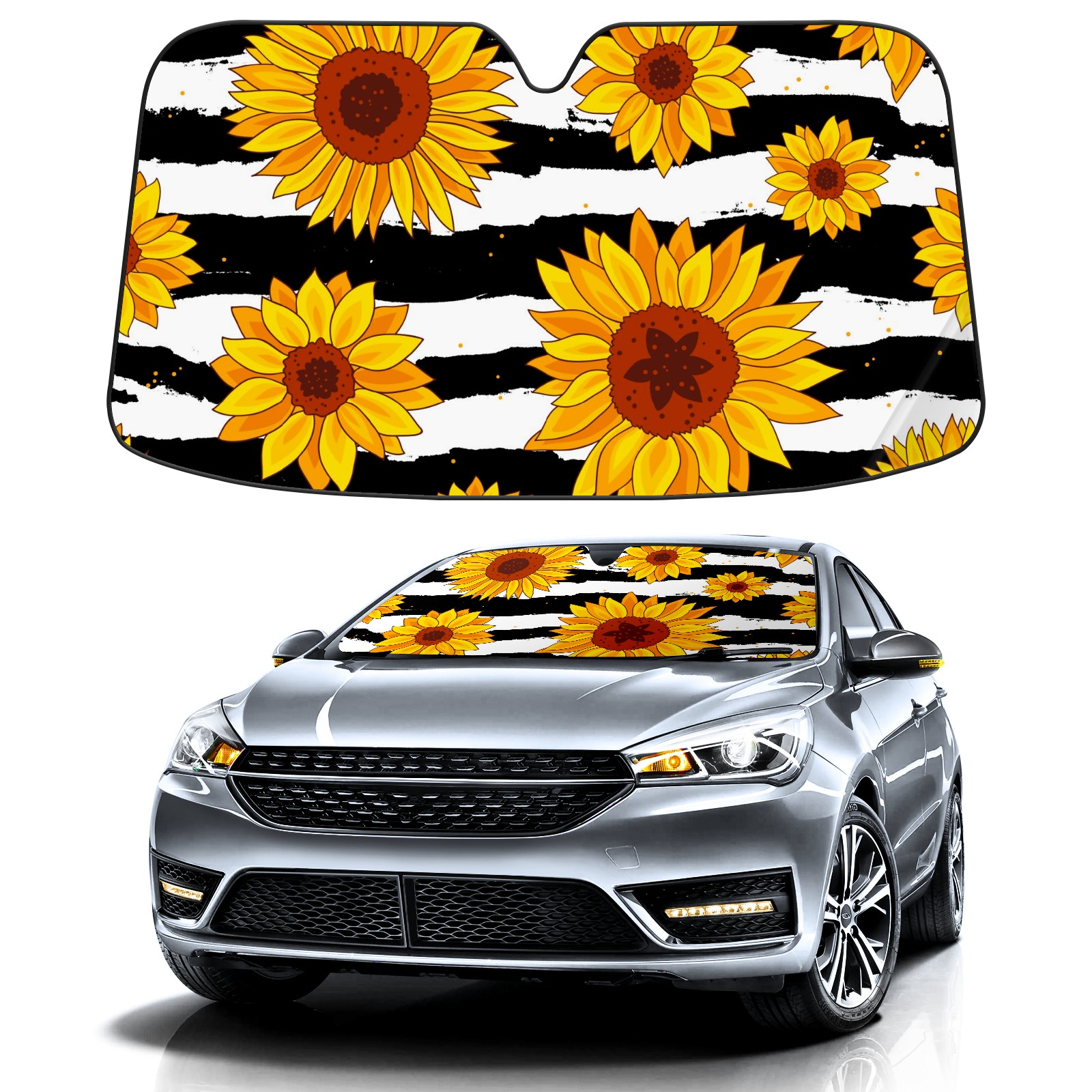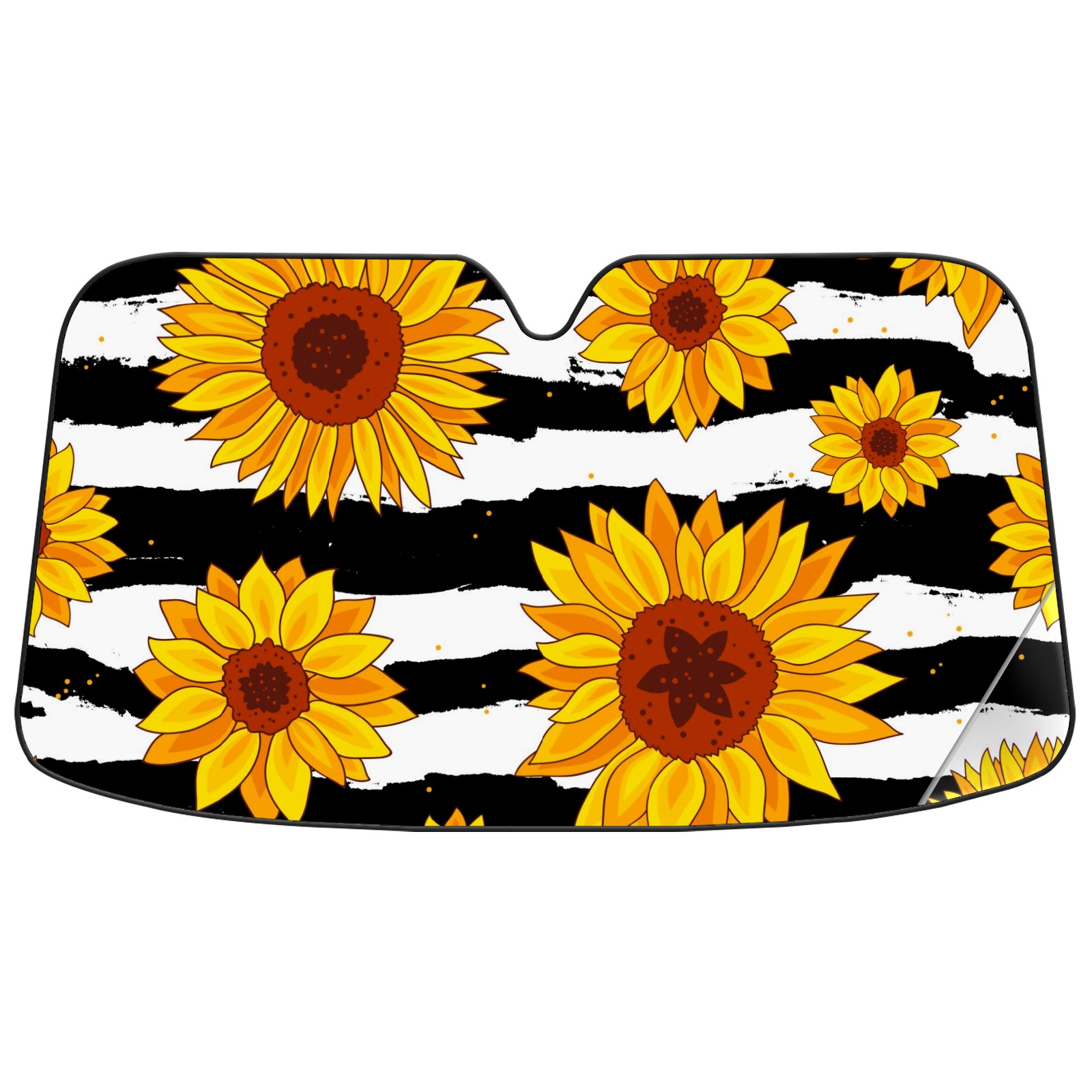 Car Windshield Sun Shade For Front Window Sunflowers On Striped Black And White Foldable Vehicle Windshield Car Sun Visor Covers Automotive Window Protector Car Camping Privacy Sun Blocker