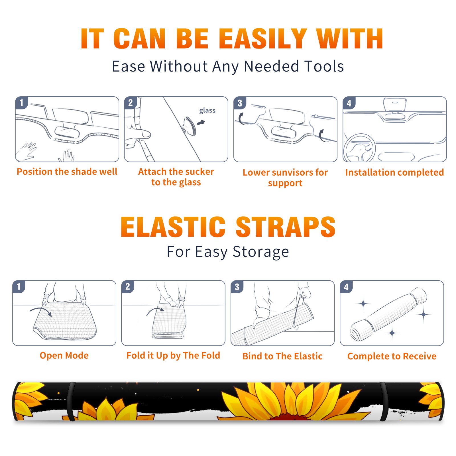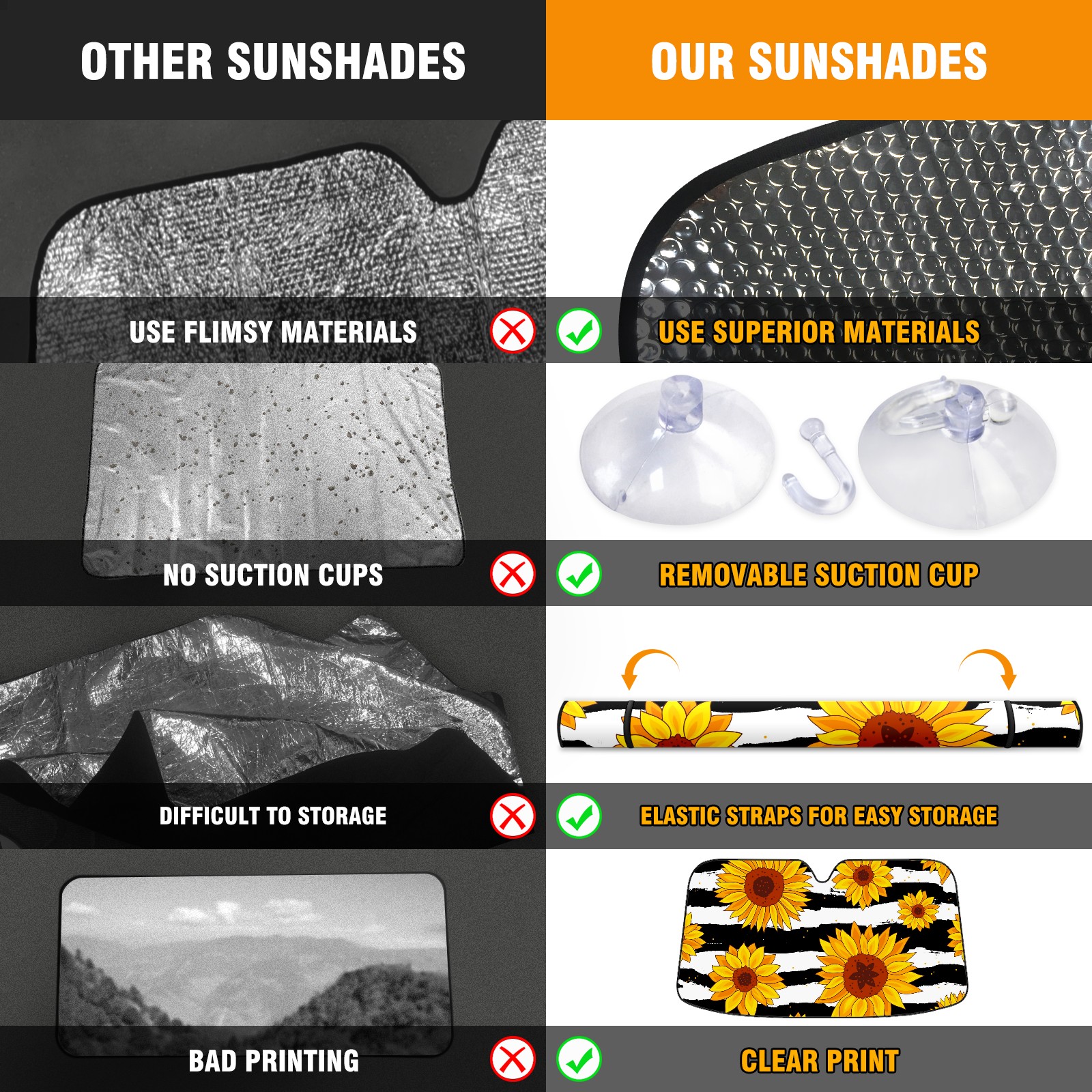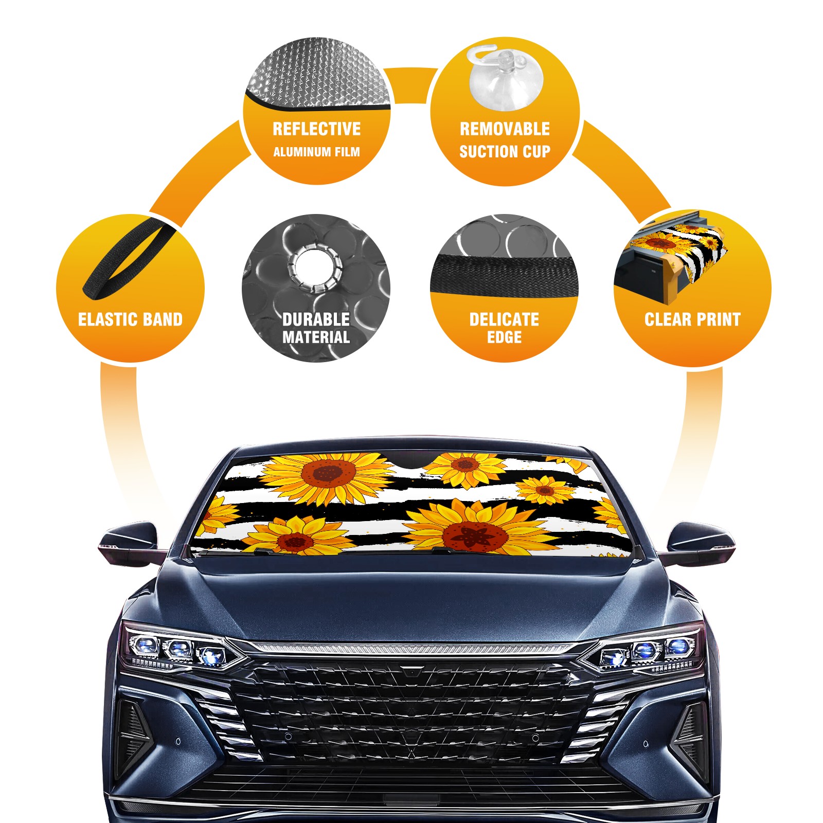 Car Windshield Sun Shade For Front Window Sunflowers On Striped Black And White Foldable Vehicle Windshield Car Sun Visor Covers Automotive Window Protector Car Camping Privacy Sun Blocker