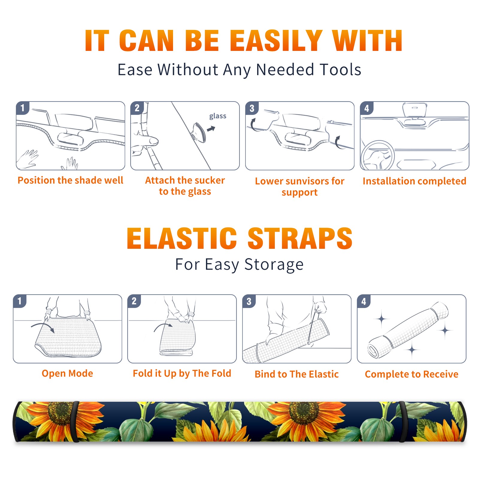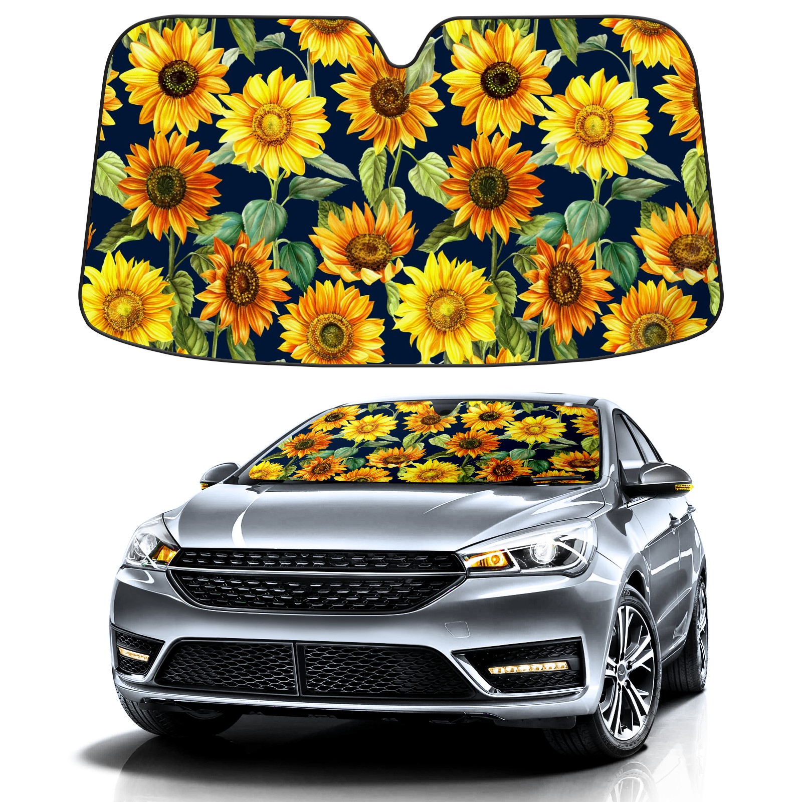 Car Windshield Sun Shade For Front Window Sunflowers Bouquet Watercolor Foldable Vehicle Windshield Car Sun Visor Covers Automotive Window Protector Car Camping Privacy Sun Blocker