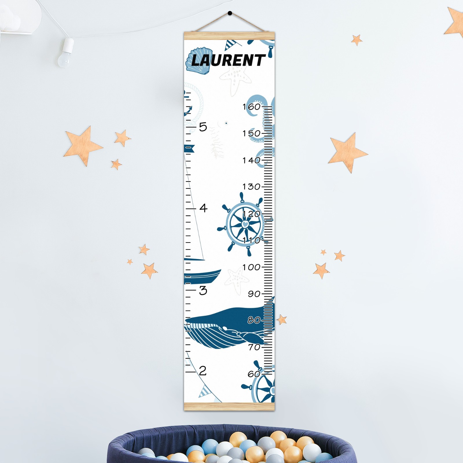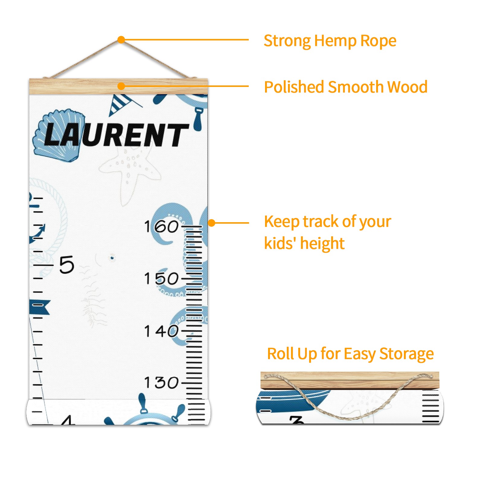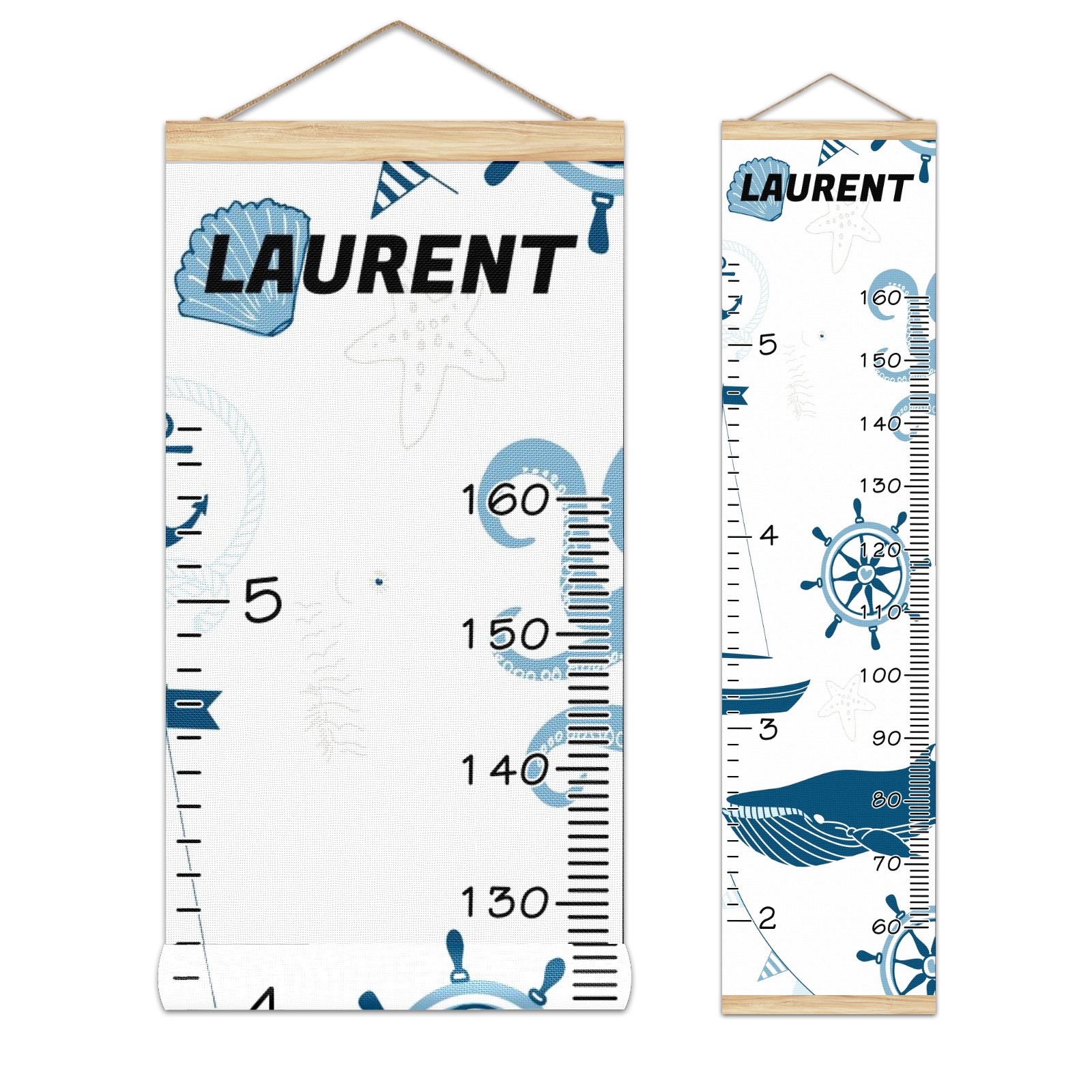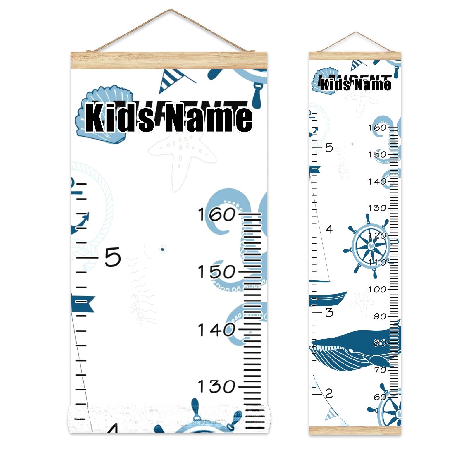 Personalized Kids Name Growth Chart Ruler for Wall Wood Frame Height Measure Chart 13.4x56 in Linen Hanging Height Growth Chart Nautical Lighthouse Sailboat3.15 Kids Room Decor