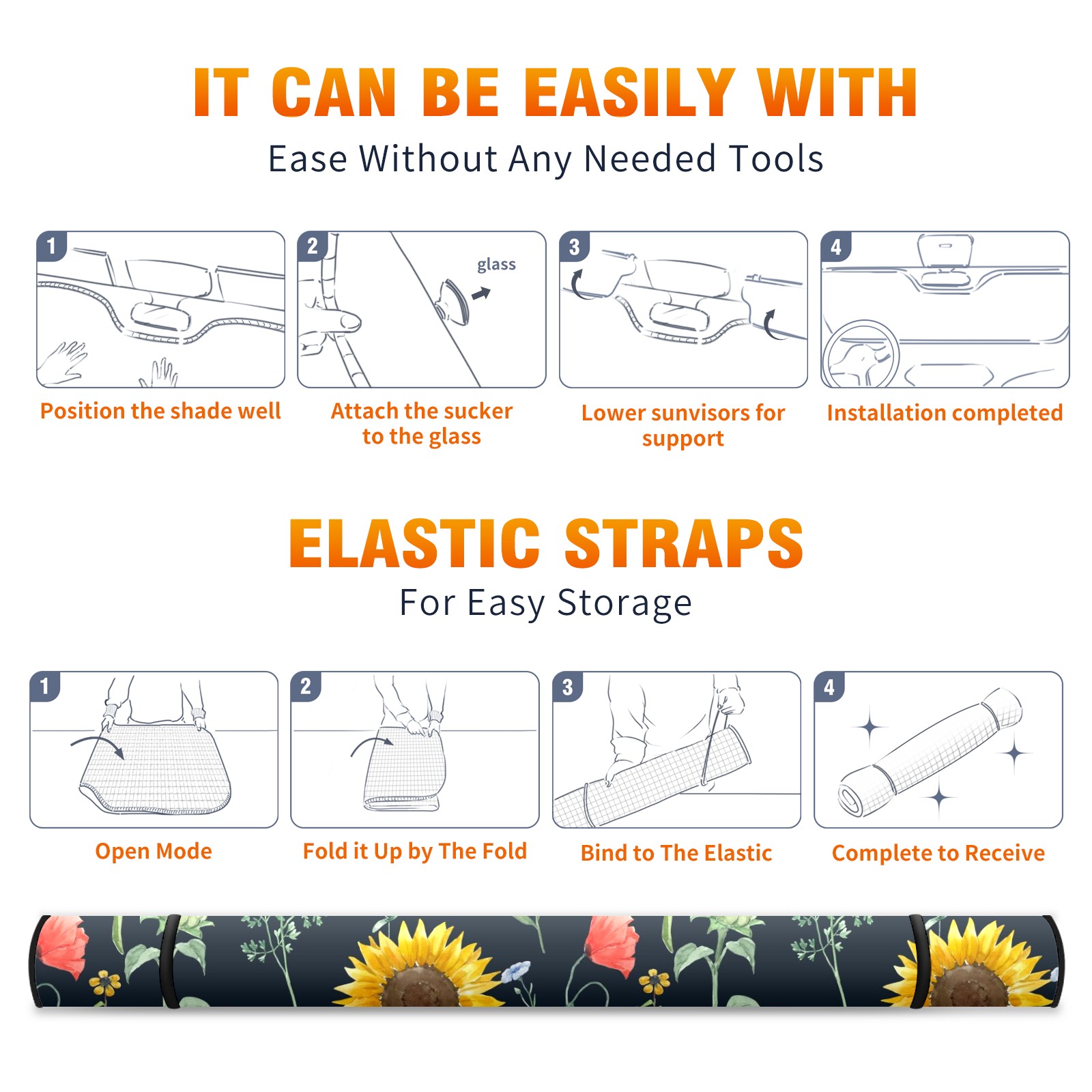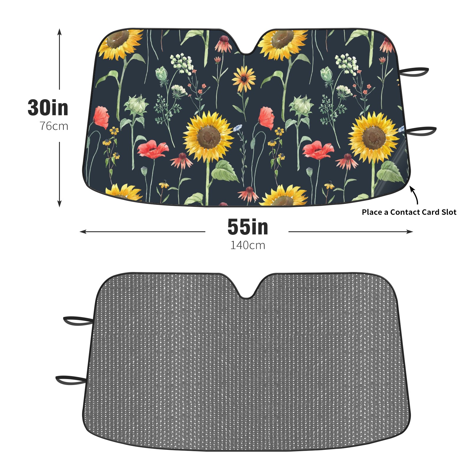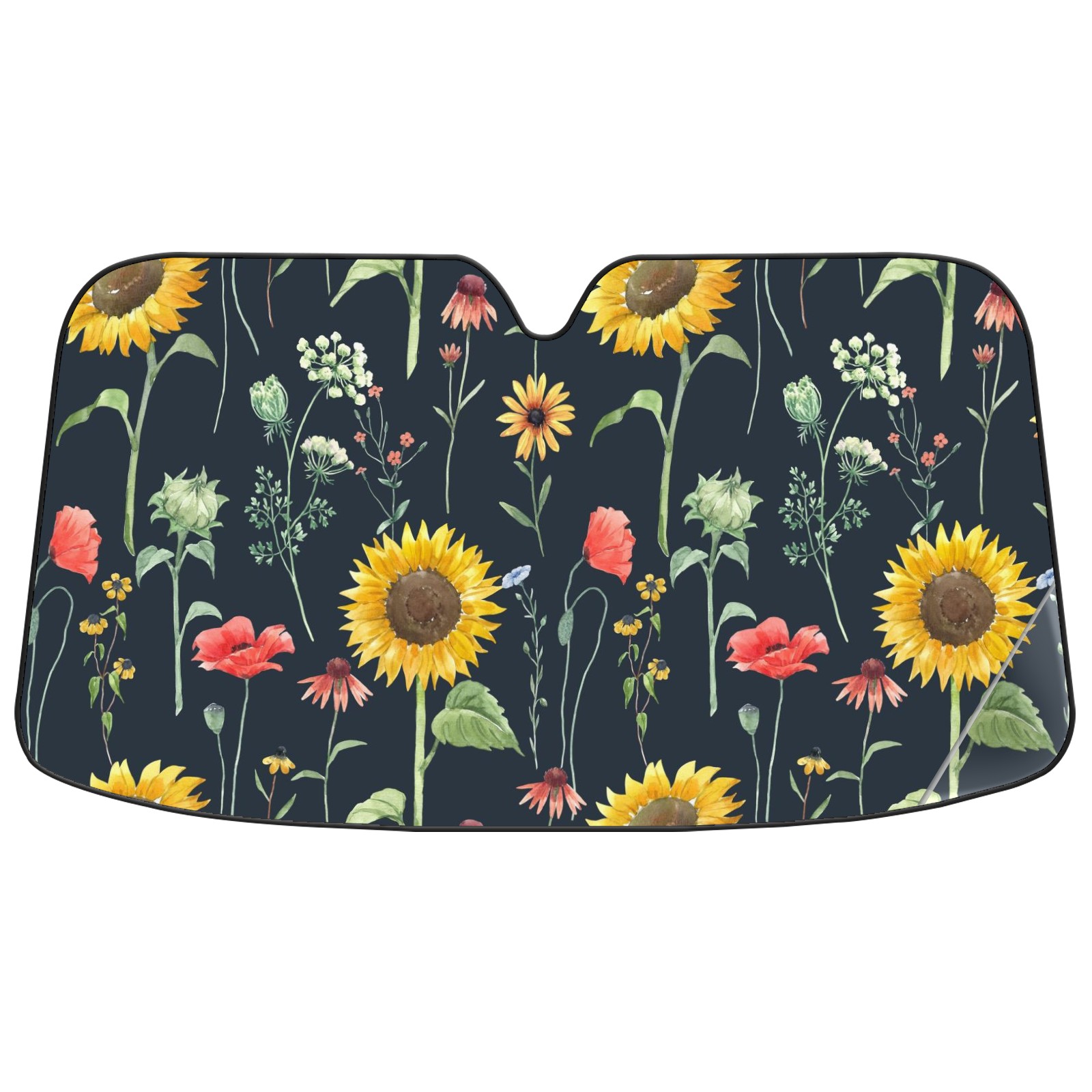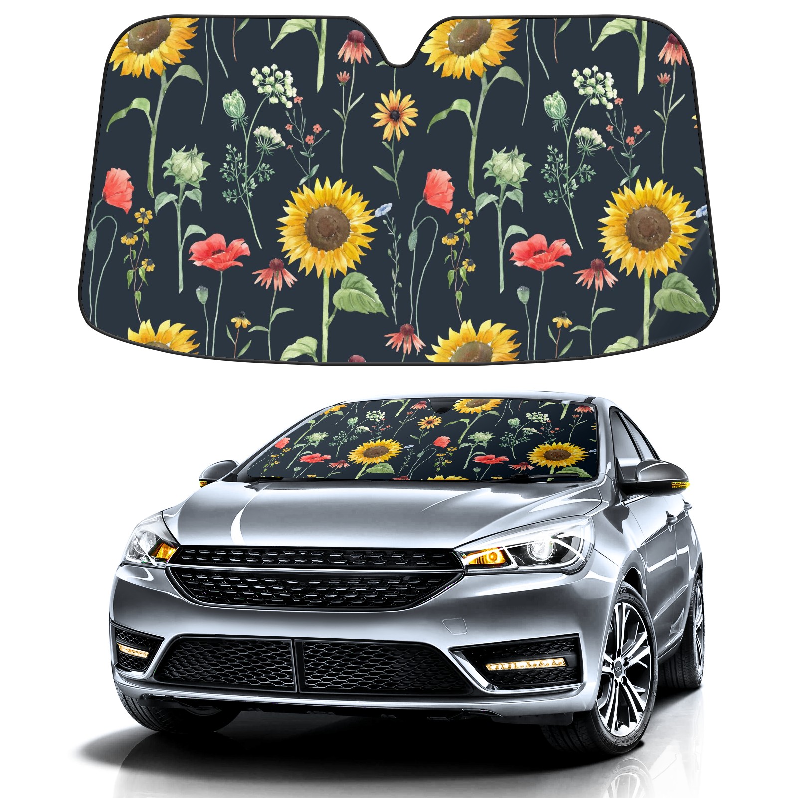 Car Windshield Sun Shade For Front Window Sunflower Poppy Flowers Foldable Vehicle Windshield Car Sun Visor Covers Automotive Window Protector Car Camping Privacy Sun Blocker