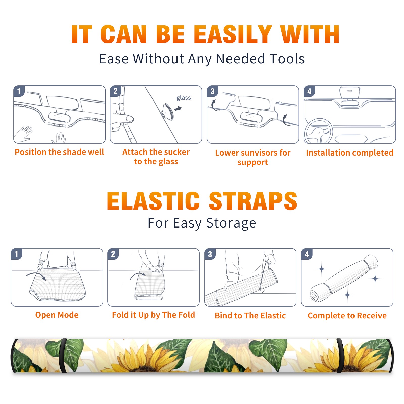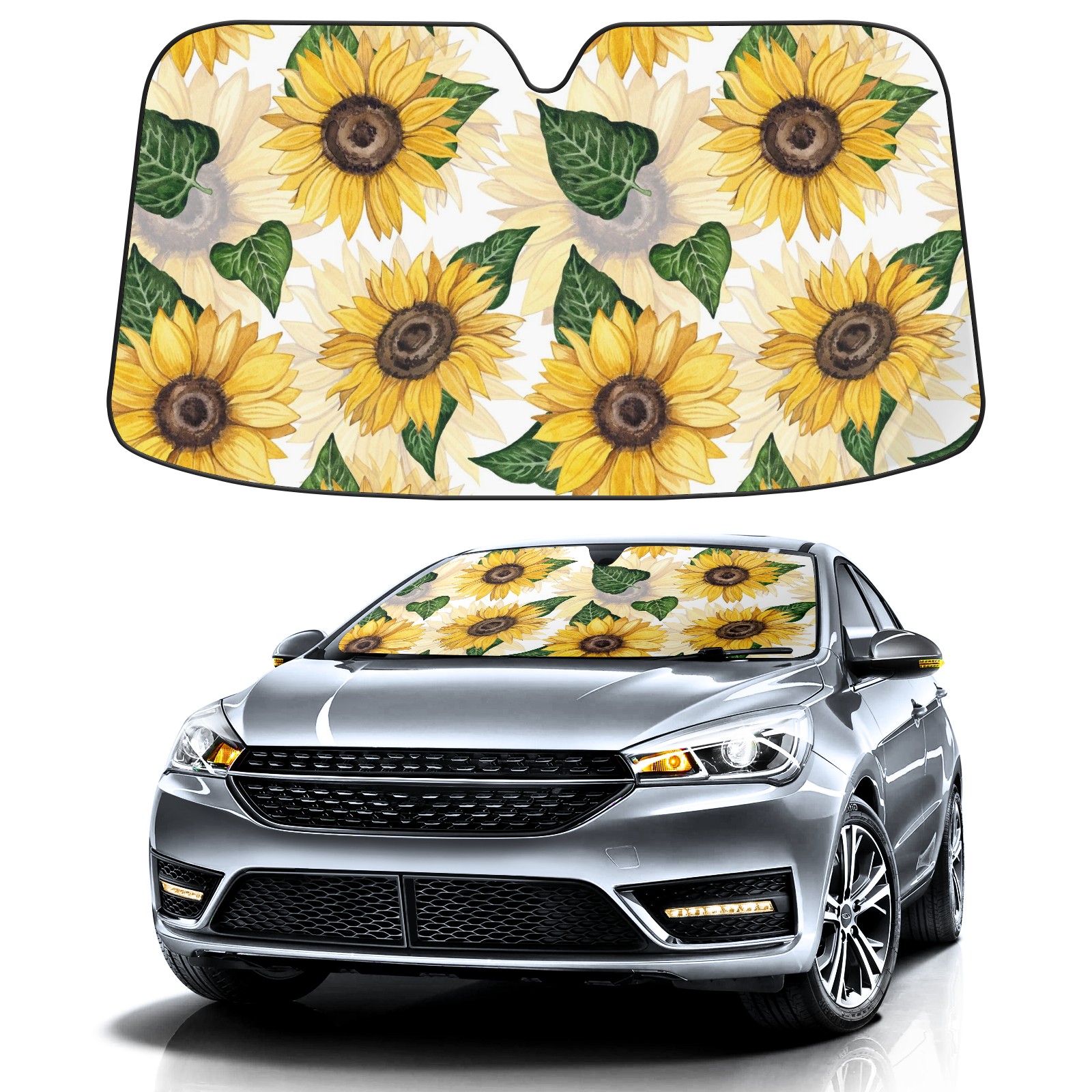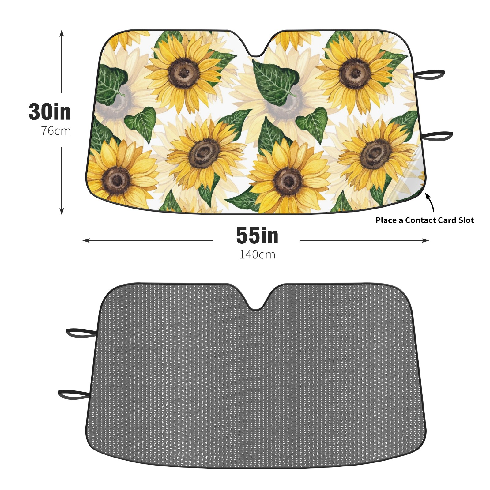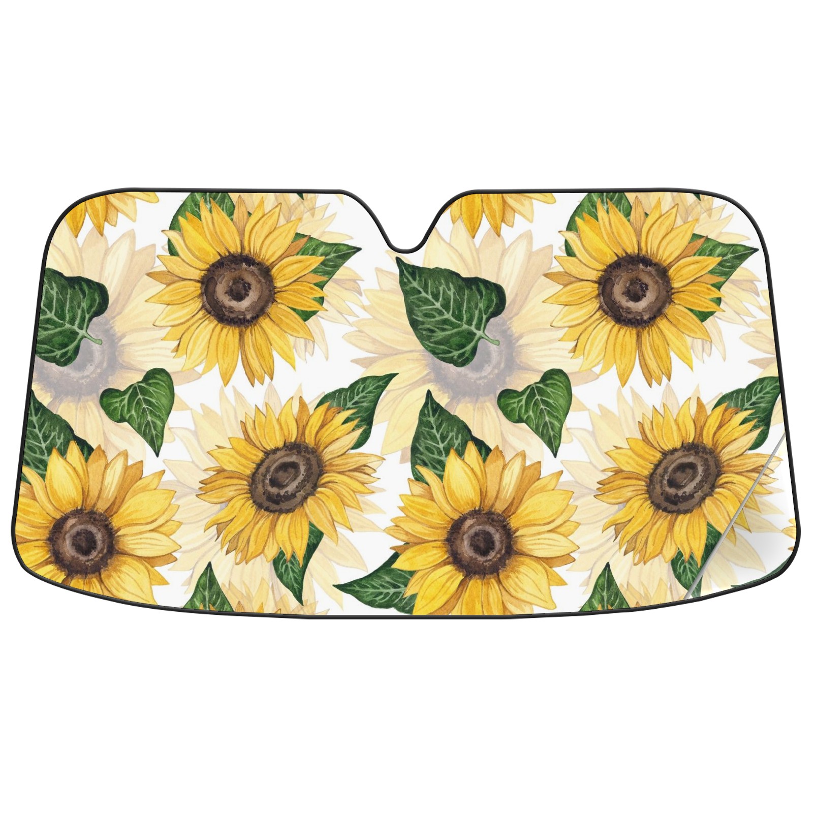 Car Windshield Sun Shade For Front Window Summer Sunflowers And Leaves Foldable Vehicle Windshield Car Sun Visor Covers Automotive Window Protector Car Camping Privacy Sun Blocker