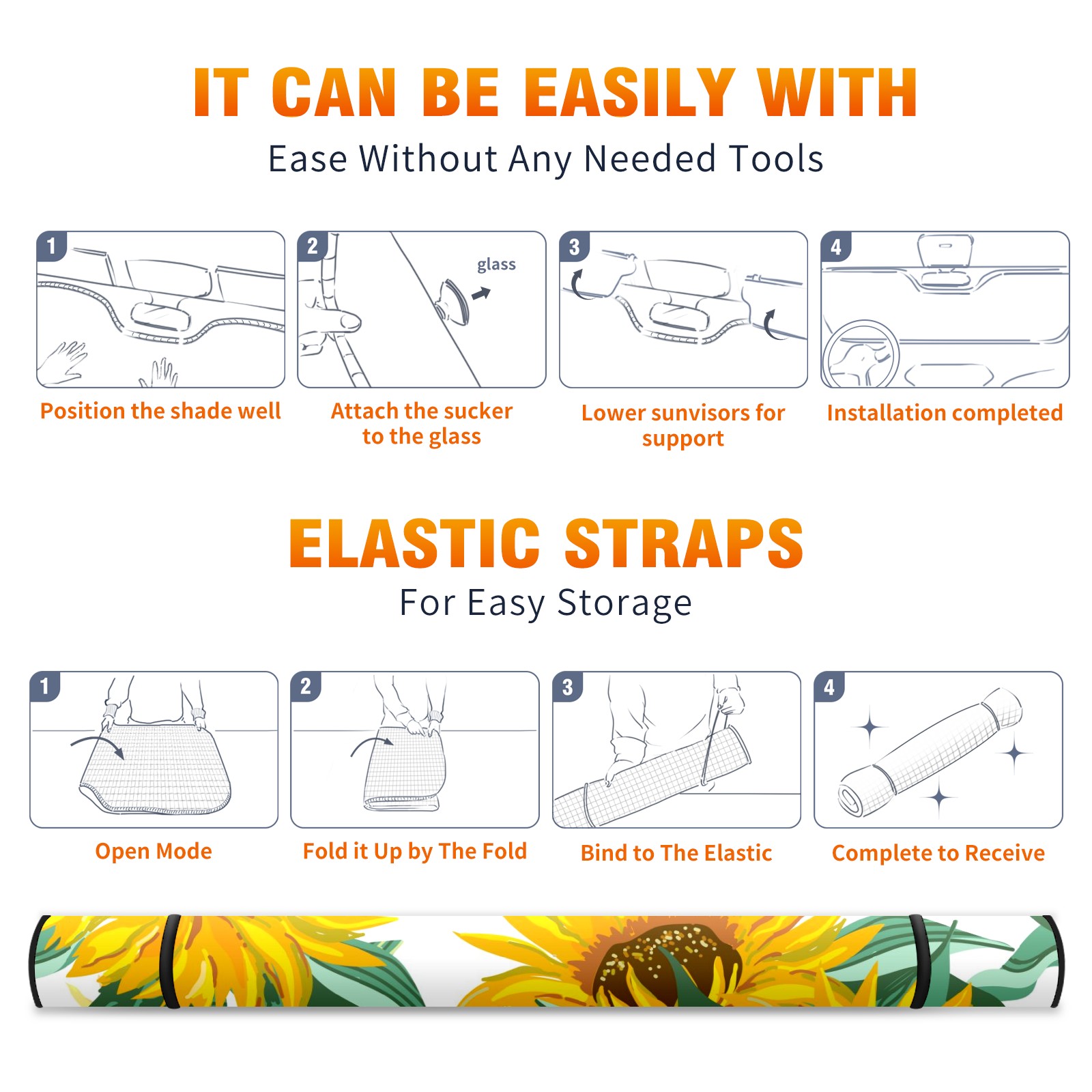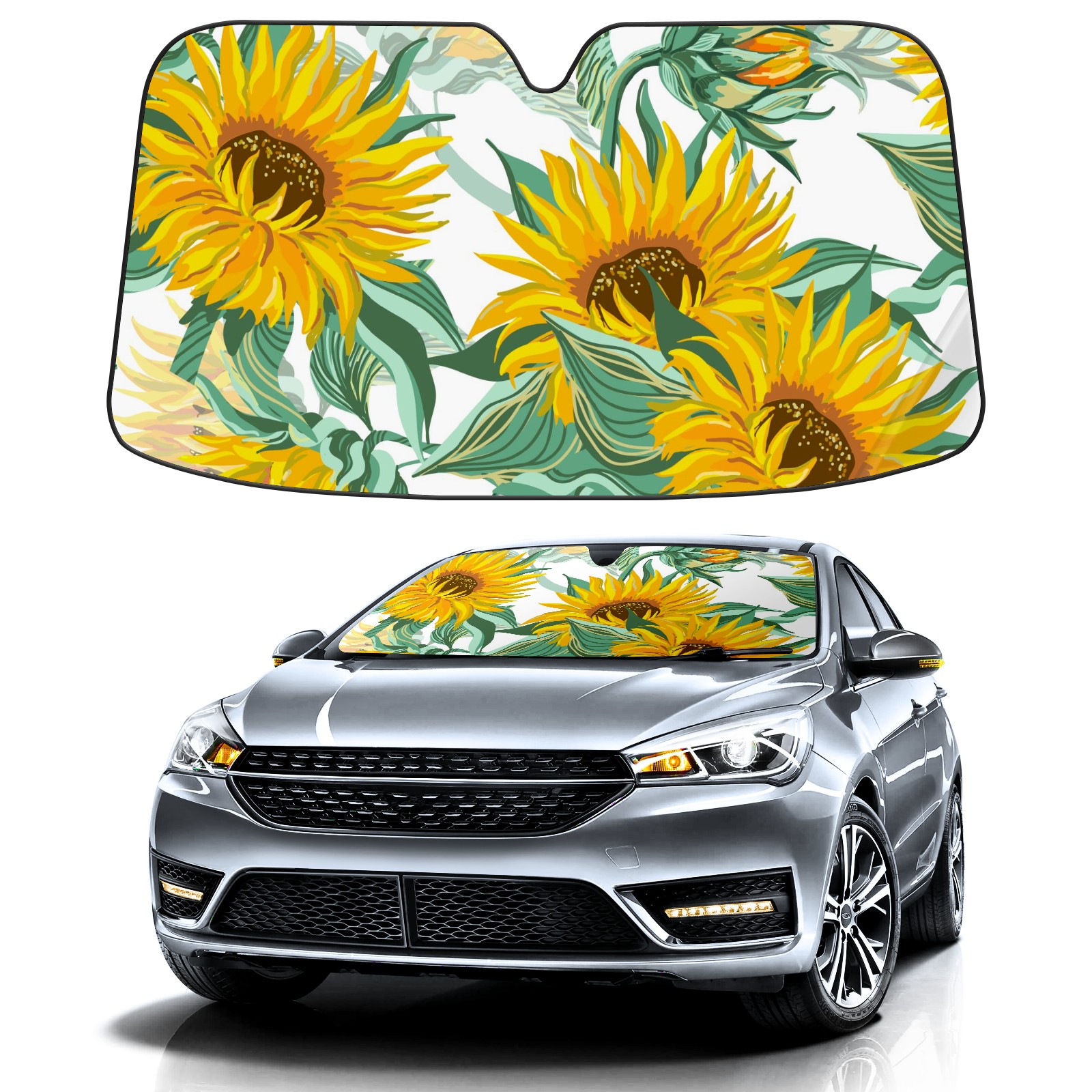 Car Windshield Sun Shade For Front Window Retro Sunflowers On White Background Foldable Vehicle Windshield Car Sun Visor Covers Automotive Window Protector Car Camping Privacy Sun Blocker