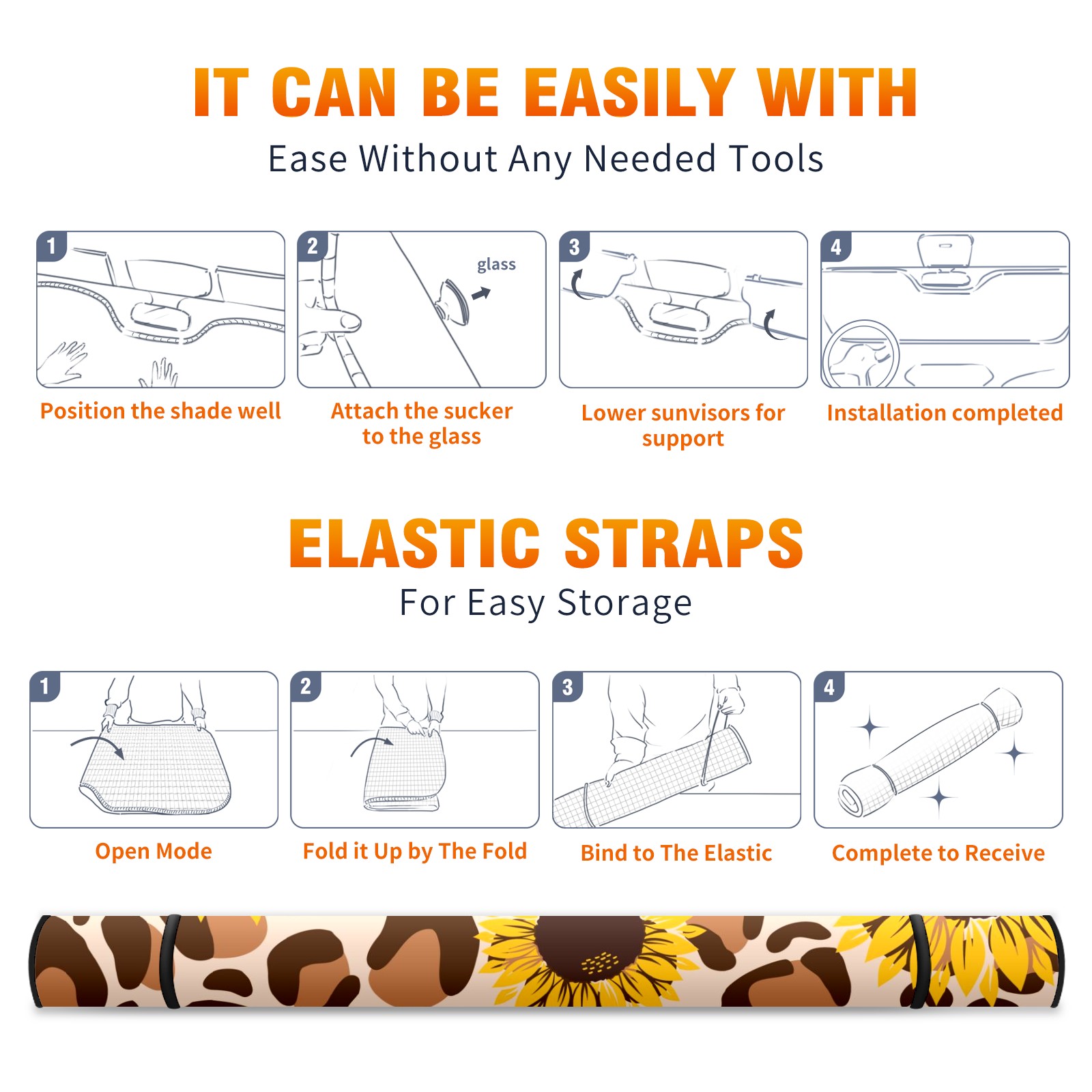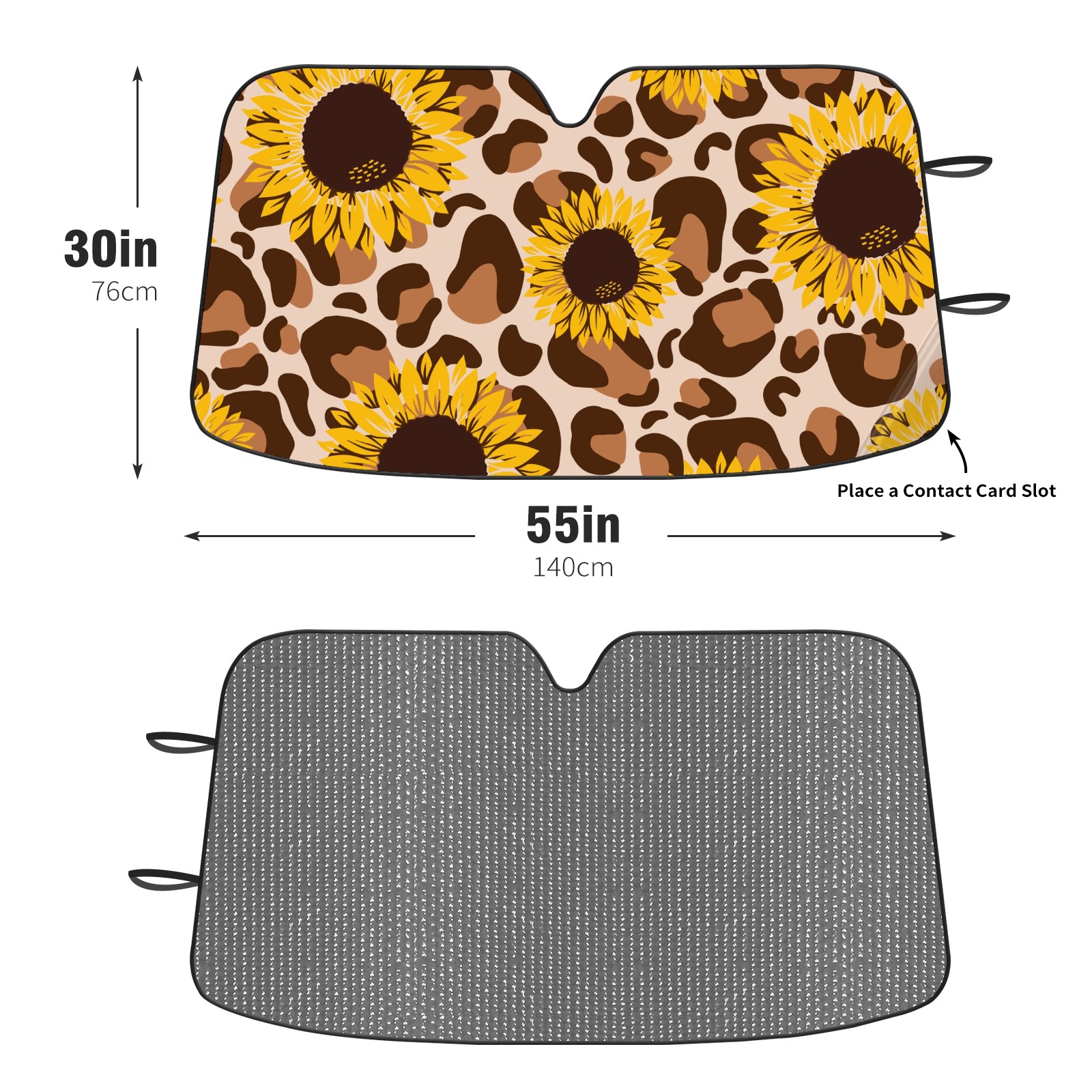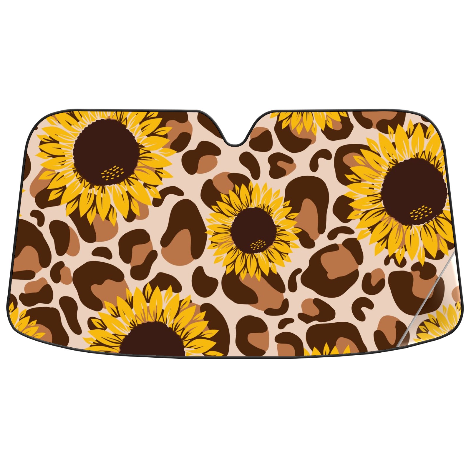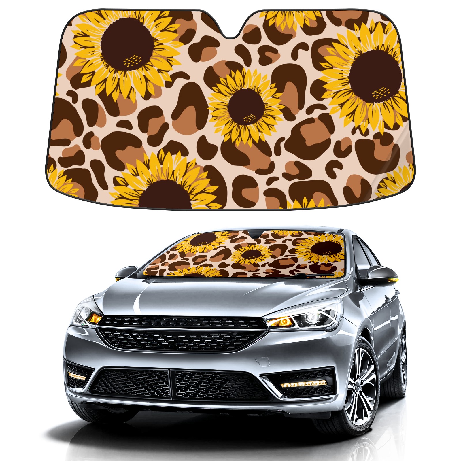 Car Windshield Sun Shade For Front Window Retro Leopard Sunflower Foldable Vehicle Windshield Car Sun Visor Covers Automotive Window Protector Car Camping Privacy Sun Blocker