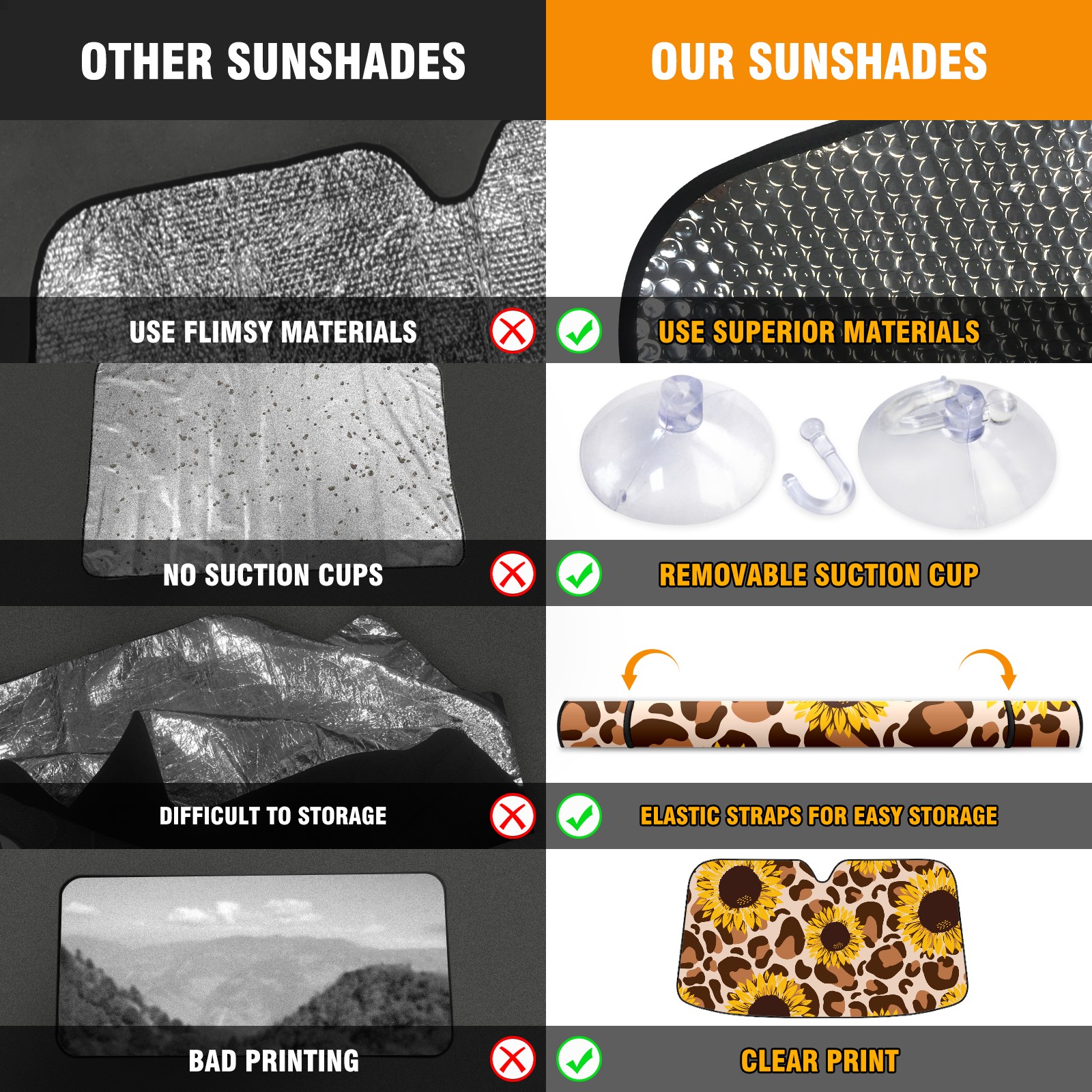 • Diameter /Size 63"L x 33.5"W Made from excellent materials which makes it sturdy and protects the car from the sun. Easy to use and pack. Makes the interior of the car cooler.You can easily stash the sunshade in the storage bag or store long term.It open and closes easy. Also the leather storage bag is durable and easy to put the umbrella back into.This windshield sunshade provides complete coverage and keeps your car interior cool under direct sun. It is easy to open and position under the windshield and around the rear-view mirror. Makes Your Car Easy To Identify, Perfect For Finding Your Car In Crowded Parking Lots And Garages.Great Choice: It Is A Great Gift For Dad, Boyfriend, Brother, Brother And Uncle, Friends, Classmates, Family And So On. Notice: Due To Difference Computer Monitors, The Color Maybe Slightly Different From Picture. As Different Measurement Methods, Measurement Data Will Float Within 2%.I Hope You Understand. If You Have Any Question About The Item Please Do Not Hesitate To Contact Us Immediately And We Will Give You A Satisfactory Reply Within 24 Hours.